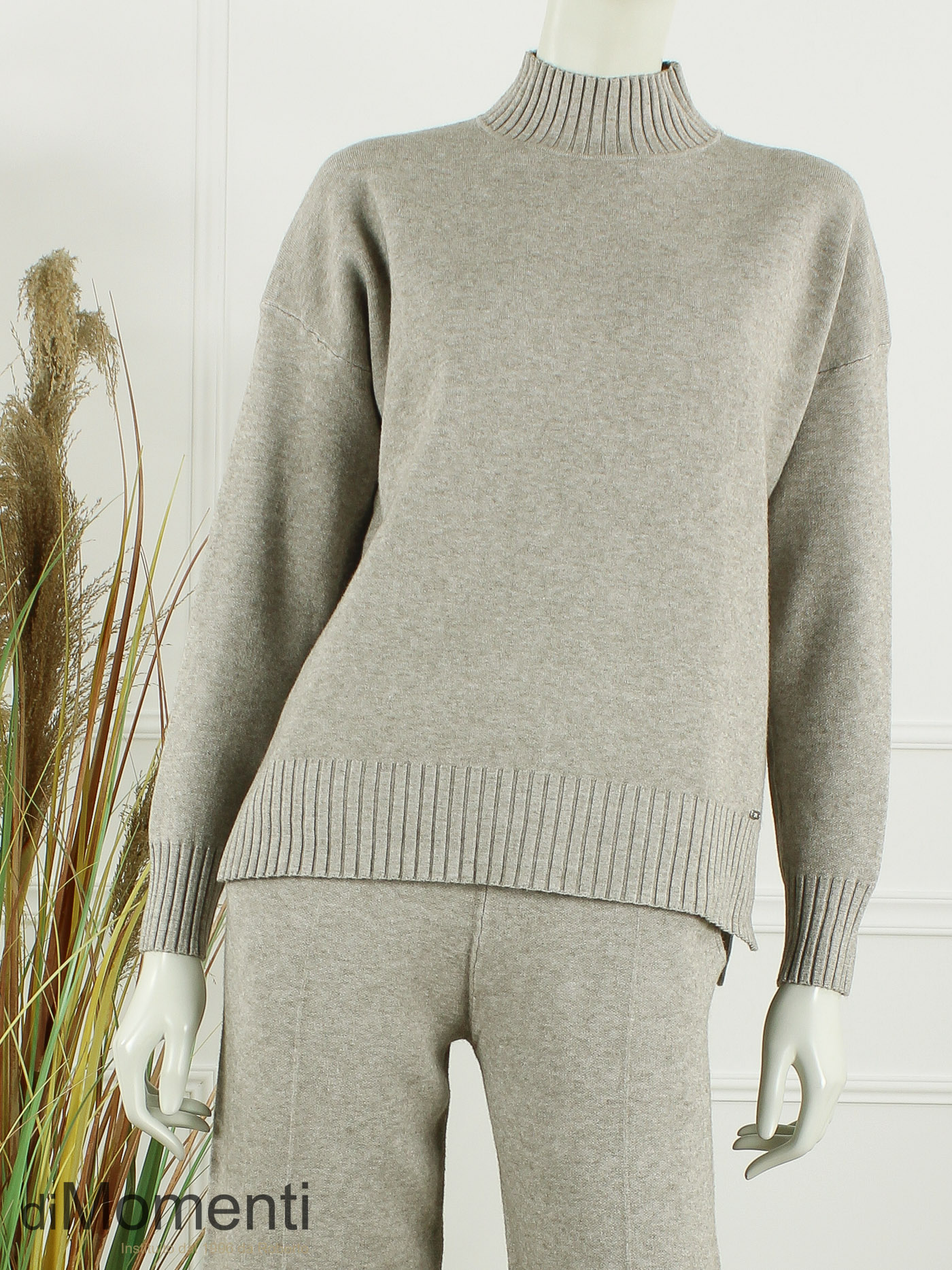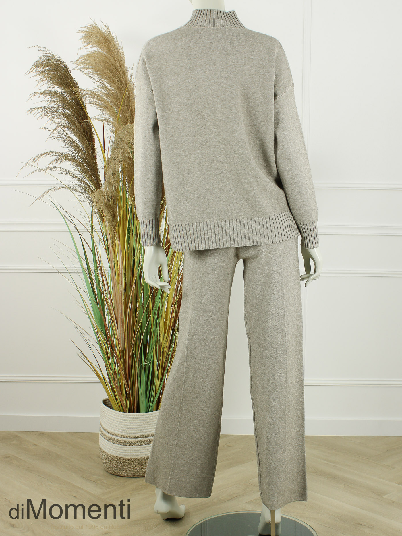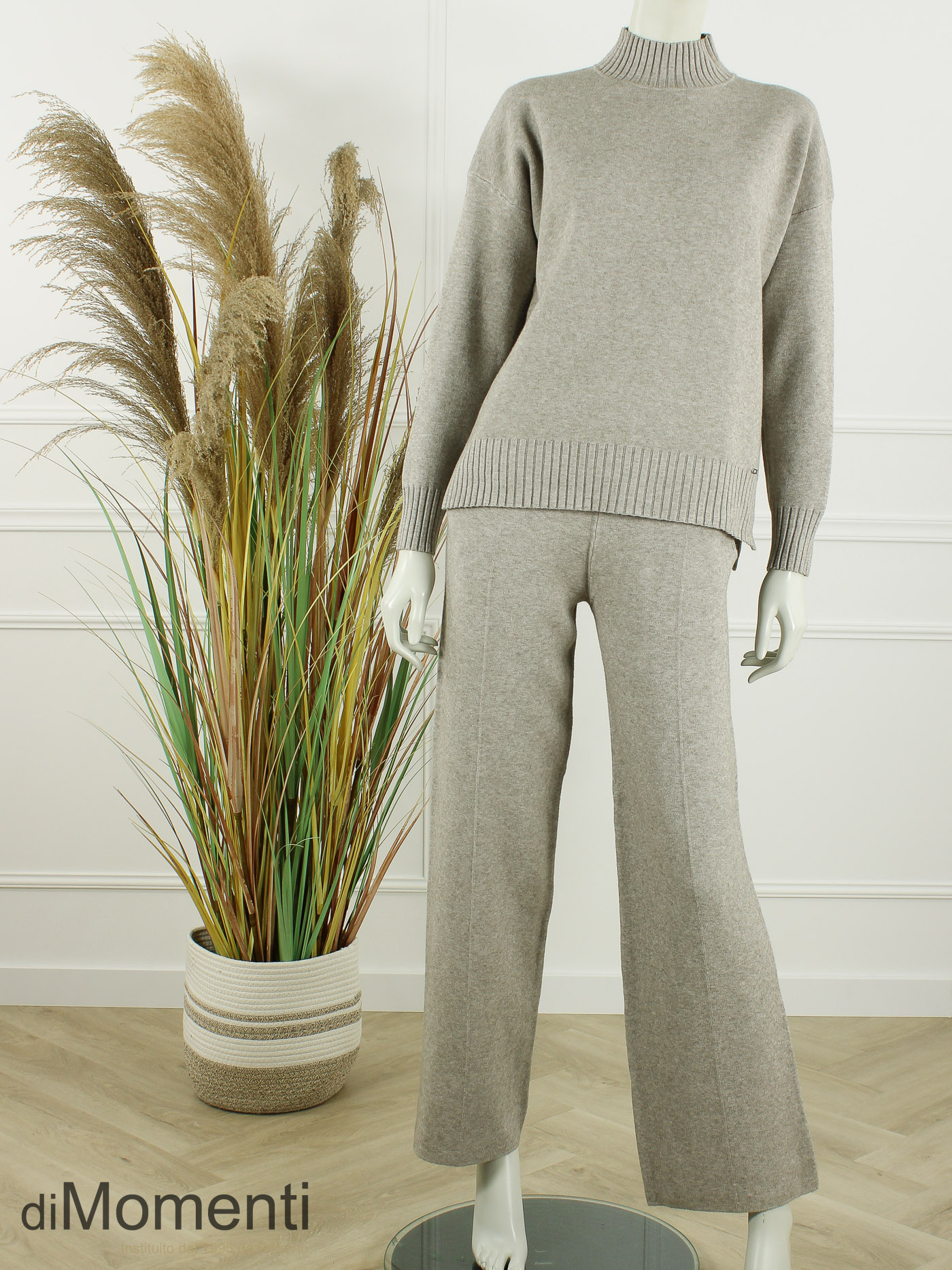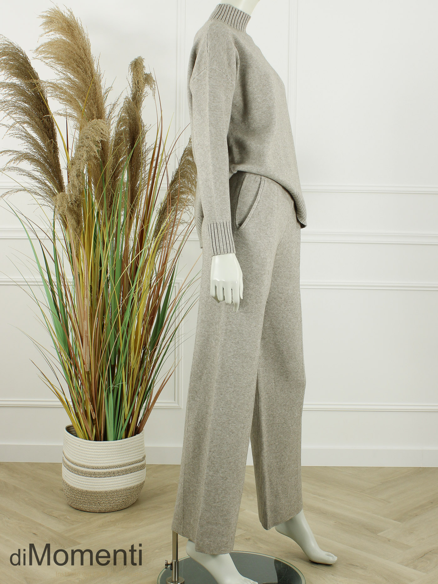 Deze 2-delige gebreide set is comfortabel én chique! De set bestaat uit een mooie trui met opstaande boord en een rechtvallende broek met steekzakken. Gemaakt van een fijne materialenmix met kasjmier en stretch voor luxe draagcomfort. Een onmisbare, stijlvolle set!