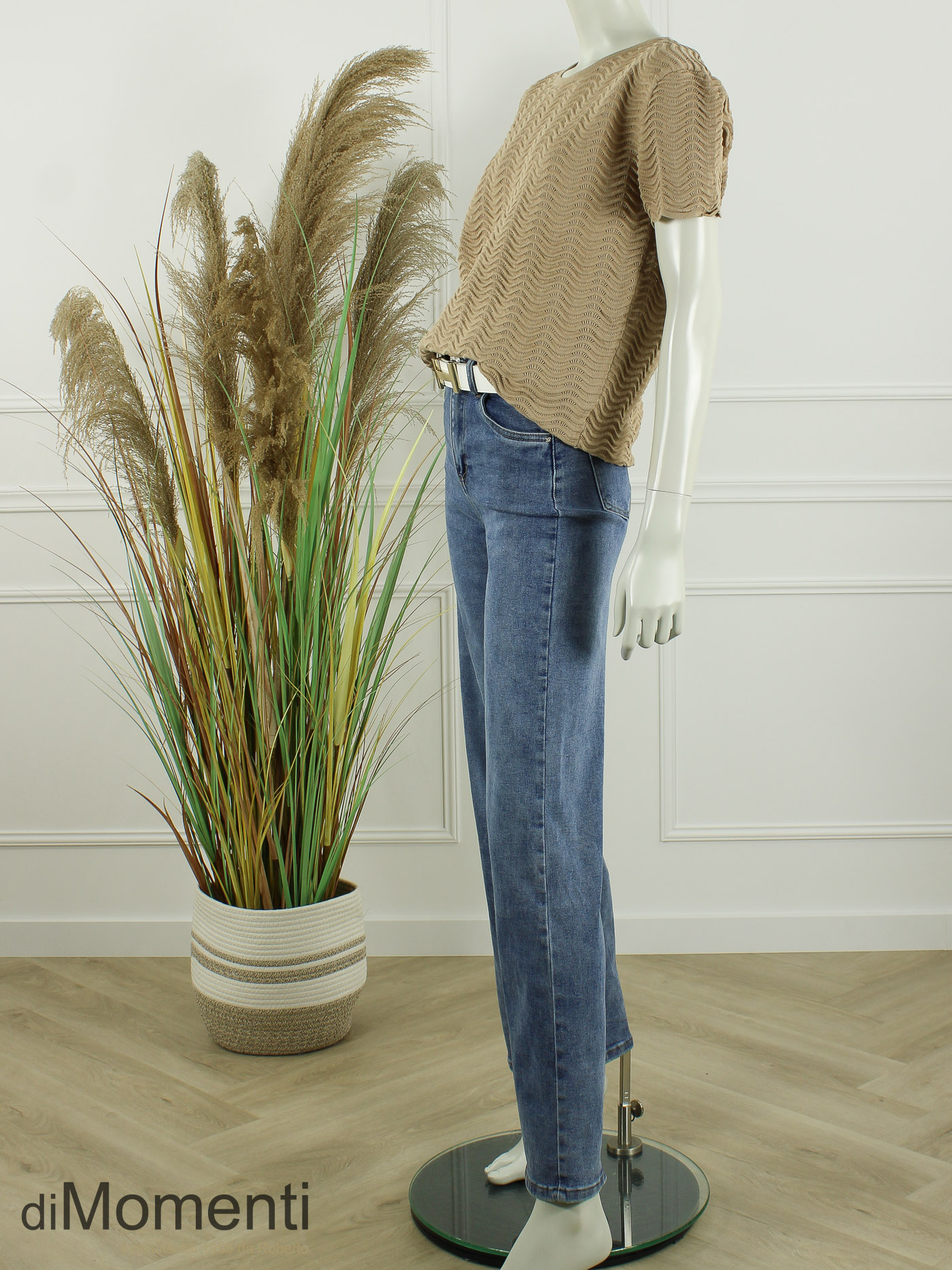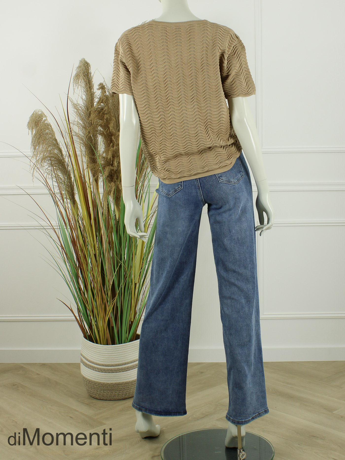 Stijlvolle top met ronde hals en korte mouw heeft een prachtig ingebreid “golfjes-patroon”. Dankzij de rekbare ajour-structuur en 25% elastan heeft de top een perfecte pasvorm voor meerdere maten. Verkrijgbaar in de nieuwste frisse voorjaarskleuren. Een onmisbare basic met een speelse touch!