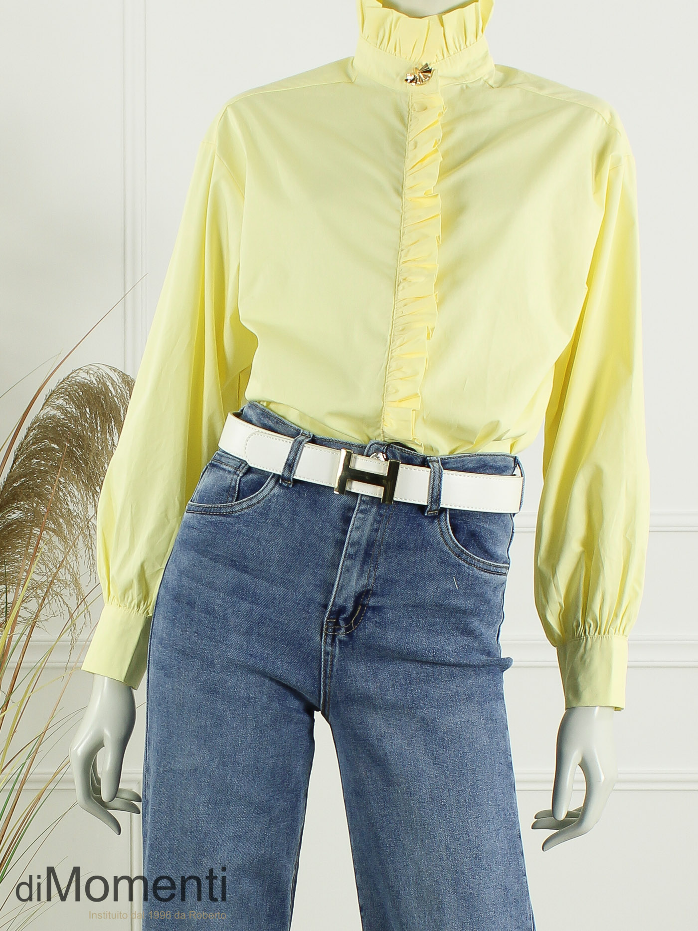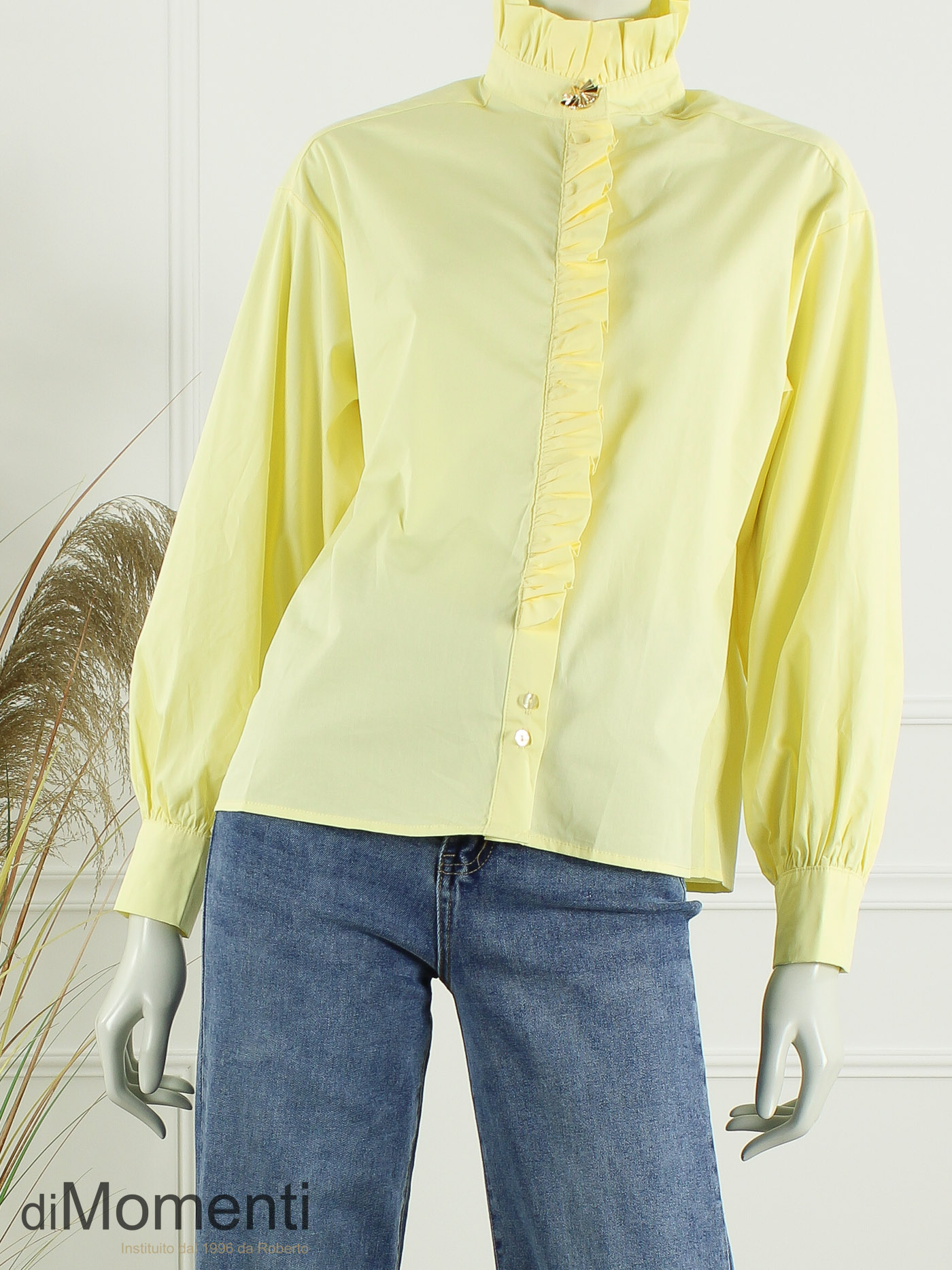 Stijlvol en romantisch: deze 100% katoenen blouse van Millennium is een echt pronkstuk. De hooggesloten boord, sierlijke ruches en de elegante gesp bij de hals zorgen voor een zeer vrouwelijke uitstraling. De blouse valt goed op maat en is perfect voor een verfijnde voorjaarslook.