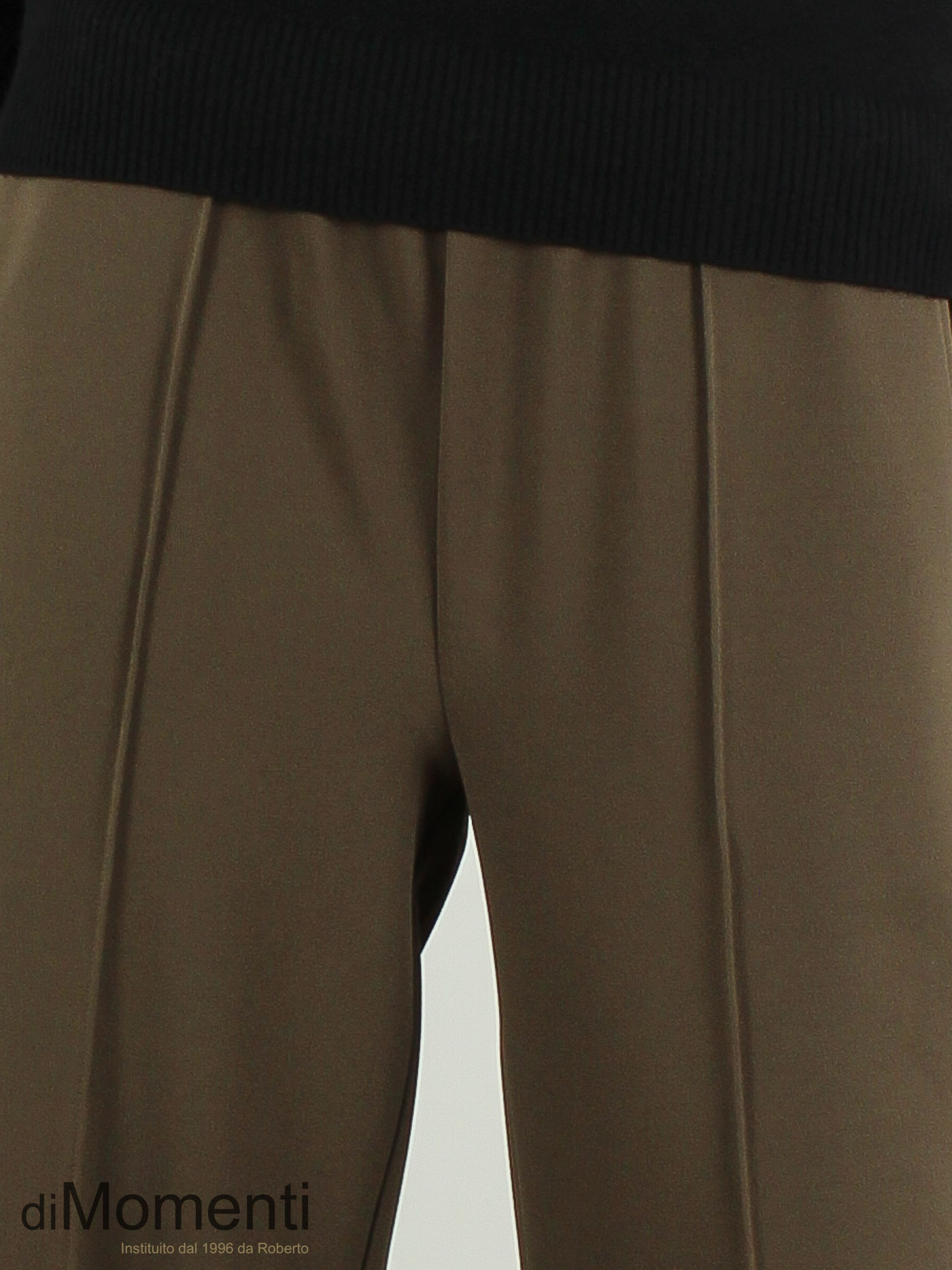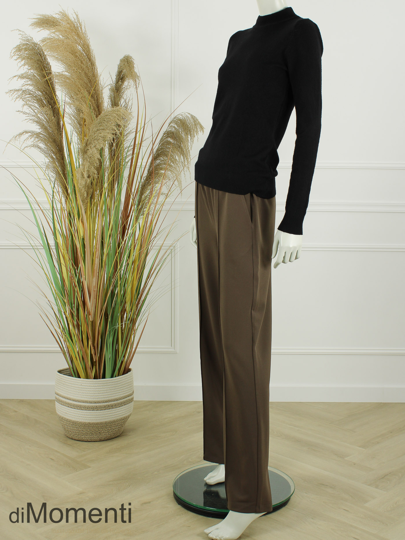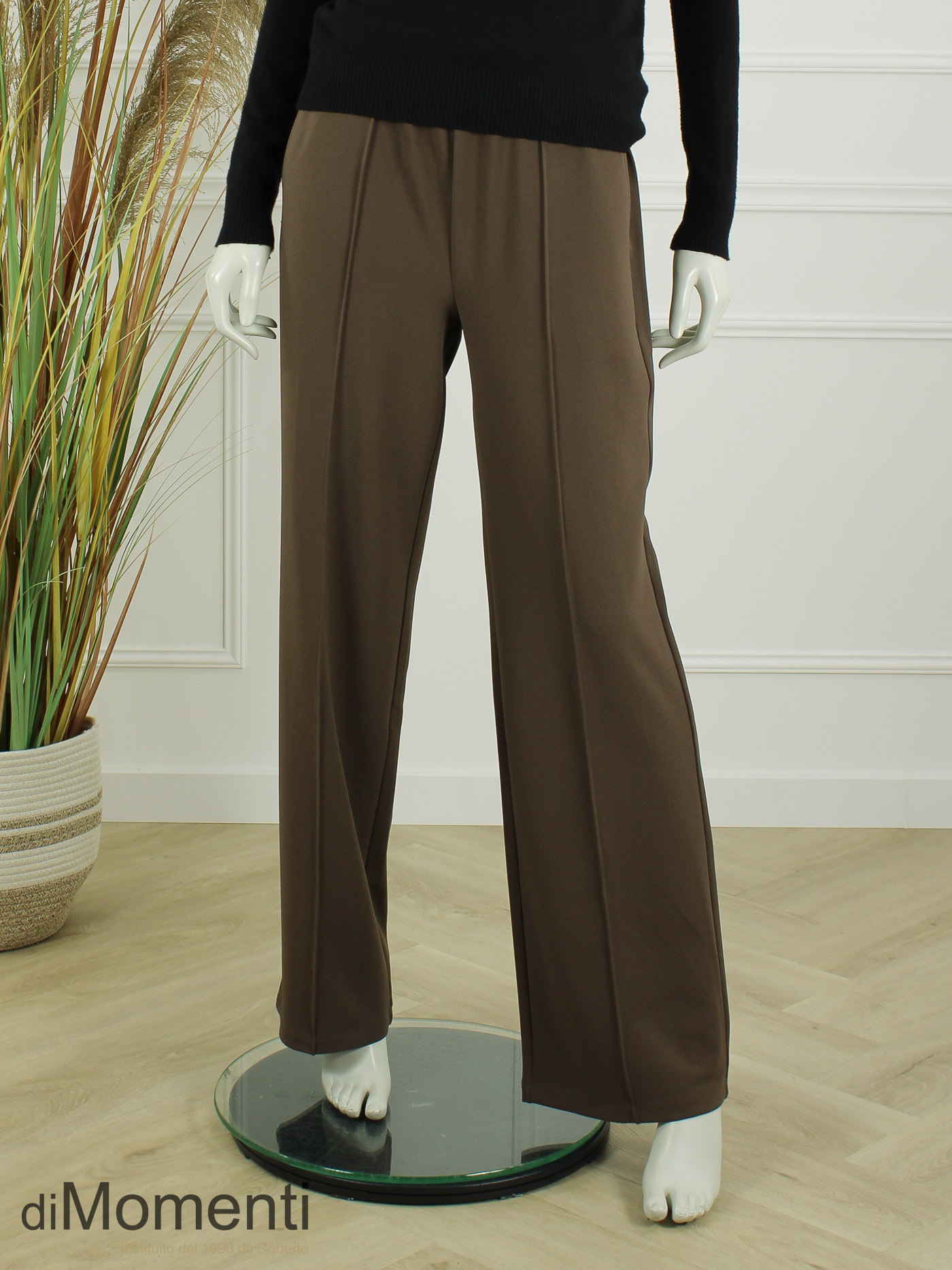 Deze elegante, rechte pantalon is gemaakt van stevige crêpe met goede stretch. De broek heeft een naad over het been, twee steekzakken en een elastische tailleband voor optimaal comfort. De pantalon valt goed op maat en is verkrijgbaar in de nieuwste najaarskleuren, perfect voor een stijlvolle en comfortabele look.