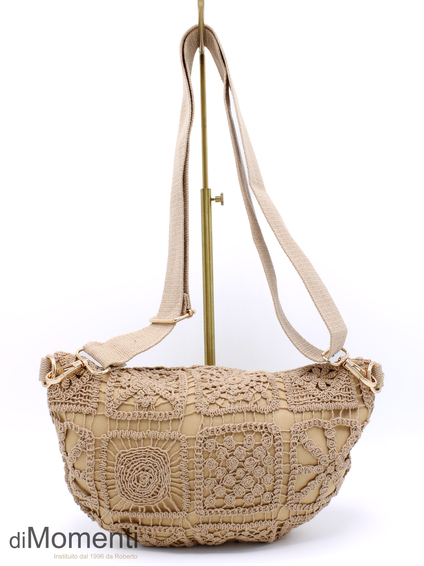 Stijlvol en ongedwongen! Dit romantische kanten buidelmodel in naturelkleuren zoals ecru, camel en coffee is dé musthave van dit voorjaar. Volledig gevoerd voor extra stevigheid en voorzien van een stoere canvas schouderriem voor een eigentijdse, nonchalante look.