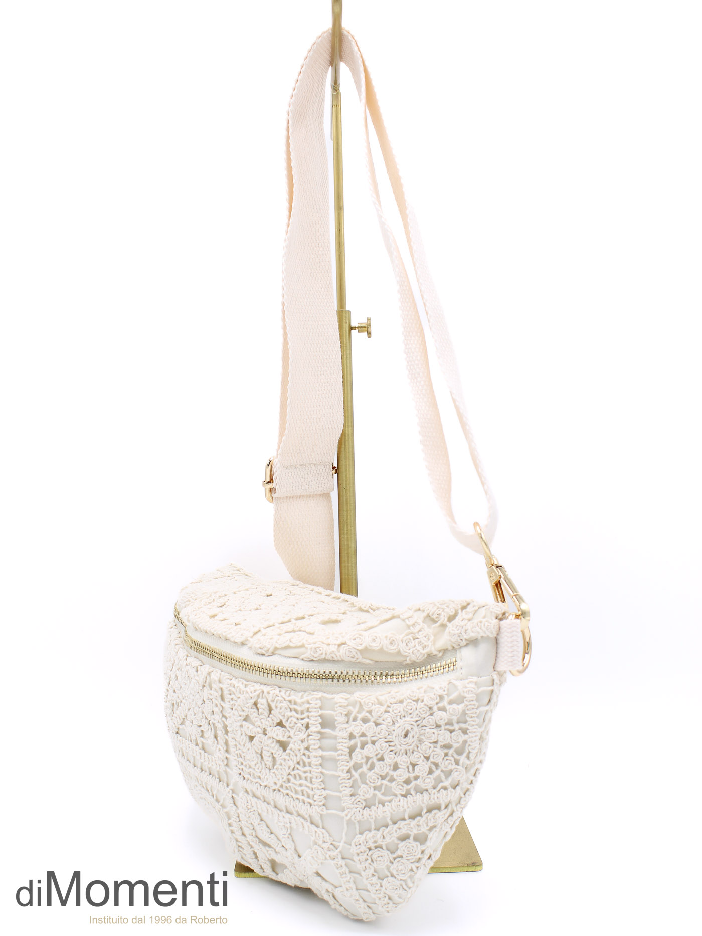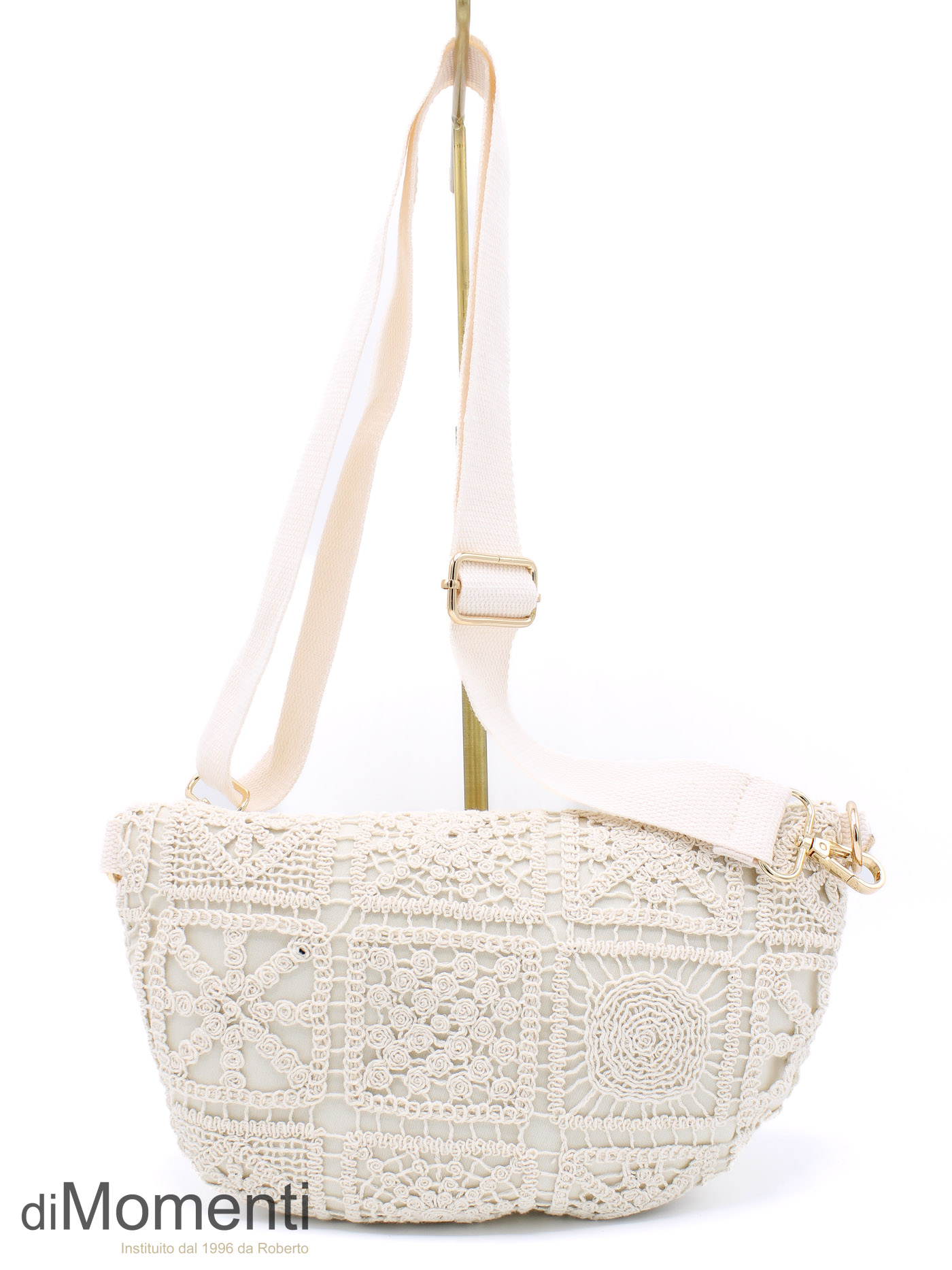 Stijlvol en ongedwongen! Dit romantische kanten buidelmodel in naturelkleuren zoals ecru, camel en coffee is dé musthave van dit voorjaar. Volledig gevoerd voor extra stevigheid en voorzien van een stoere canvas schouderriem voor een eigentijdse, nonchalante look.