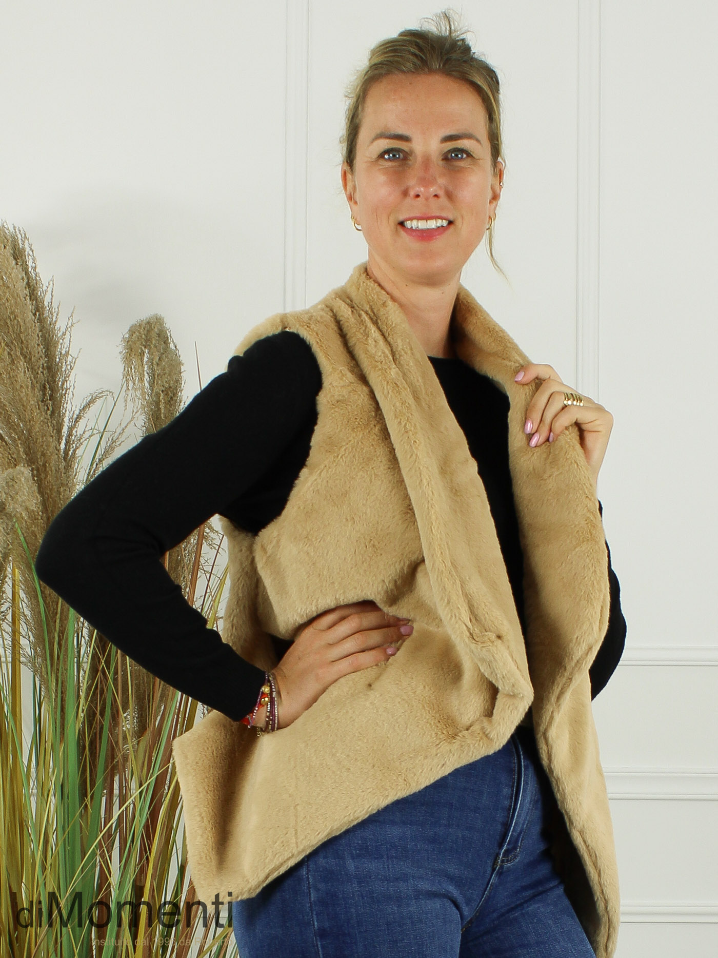 Ontdek dit gilet gemaakt in een zachte faux fur kwaliteit, een stijlvolle en comfortabele toevoeging aan elke collectie! Dit losvallende, royale model is geheel gevoerd en 2 zakken in de zijnaad. Zonder sluiting is hij eenvoudig over elke outfit te dragen. De perfecte laag voor een modieuze en chique look!