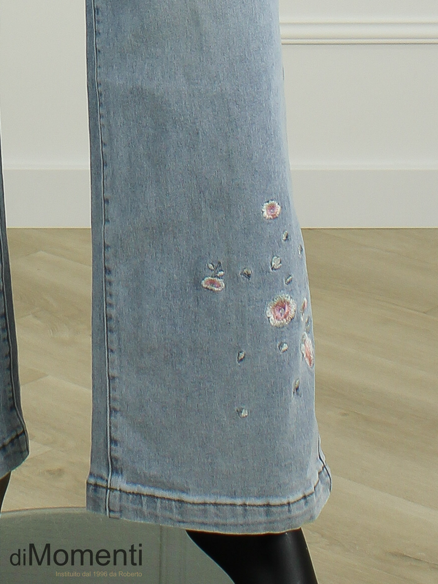 Stijlvol en comfortabel: deze Goodies wide leg jeans is de trend van nu! De prachtige blauwe wassing en geborduurde bloemapplicaties geven een unieke look. Dankzij de super stretch, die zelfs doorloopt in de tailleband, biedt deze broek een perfecte pasvorm. De ideale combinatie van fashion en optimaal draaggemak!