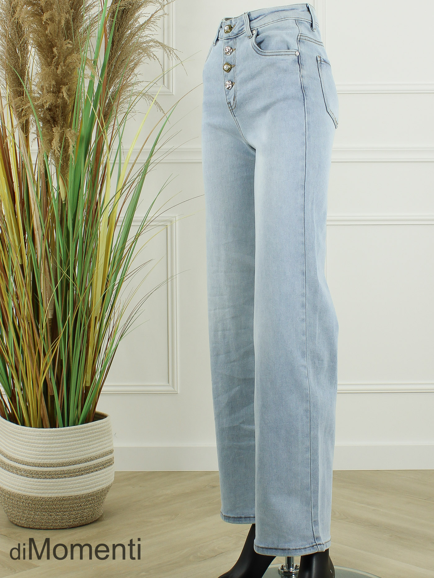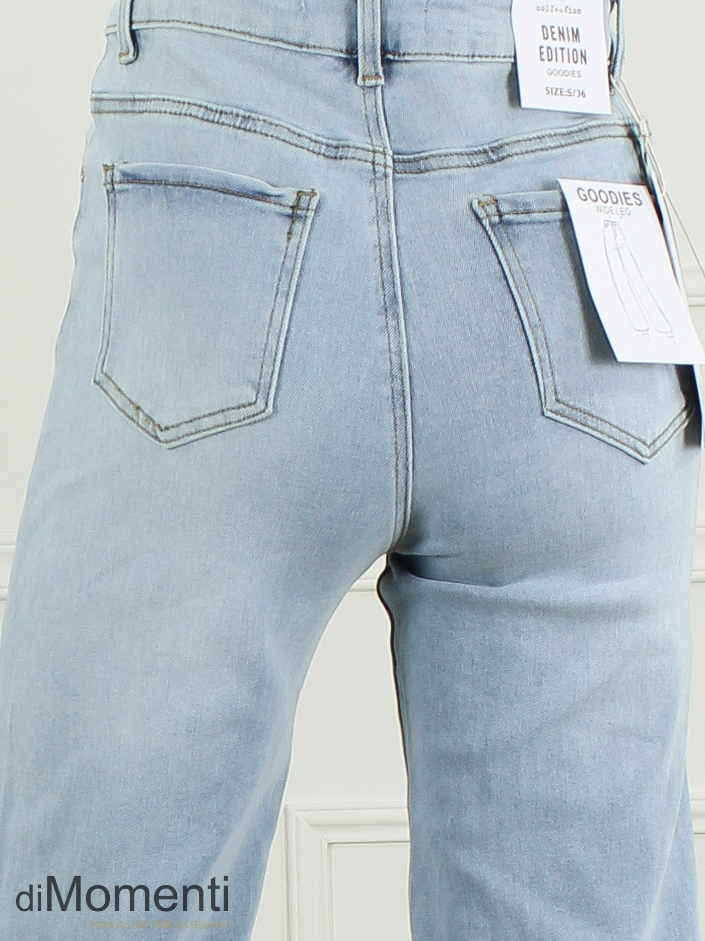 Deze Goodies wide leg jeans heeft mooie verschillende sierknopen voor een superleuke look. Deze in een nieuwe blauwe wassing gemaakte jeans heeft super stretch, ook in de tailleband, dat zorgt voor extra comfort. Hij valt perfect op maat en zorgt voor een flatterend silhouet.