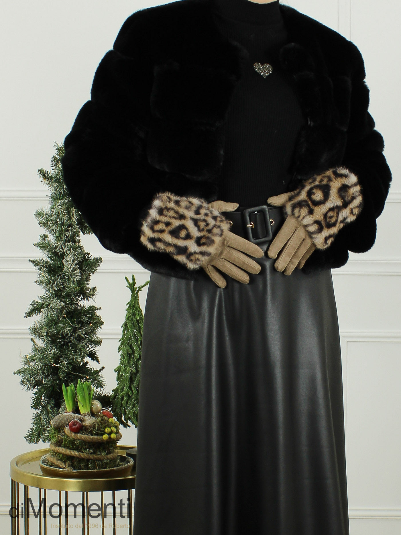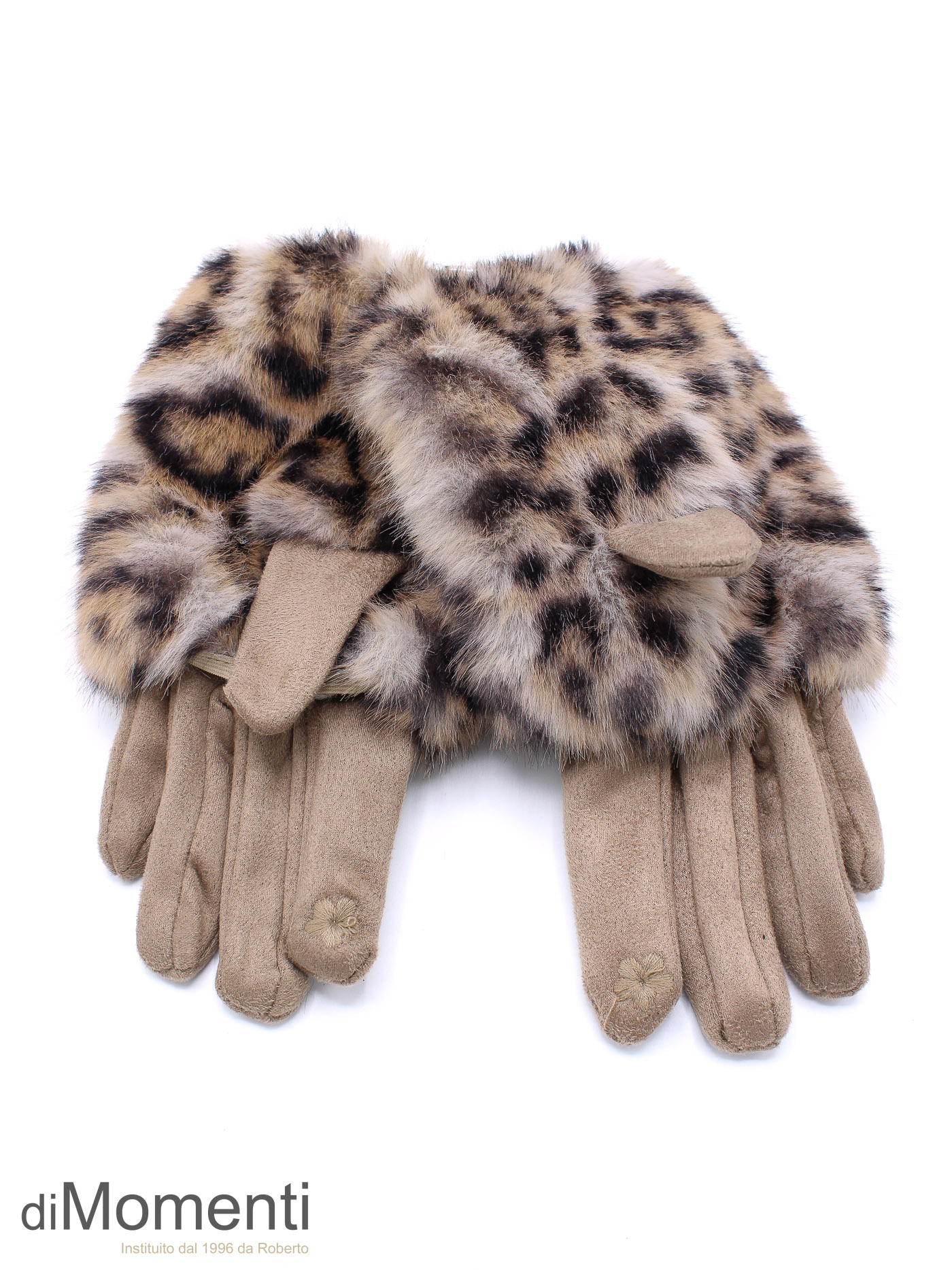 Deze look-a-like suèdine handschoen combineert warmte en stijl! De handschoen heeft een royale rand van zachte fake fur met trendy animal print. De telefoontip op de wijsvinger maakt bediening eenvoudig.Gemaakt van een mooie, rekbare kwaliteit met stretch voor optimaal comfort. Verkrijgbaar in de nieuwste trendy kleuren. Een luxe accessoire!