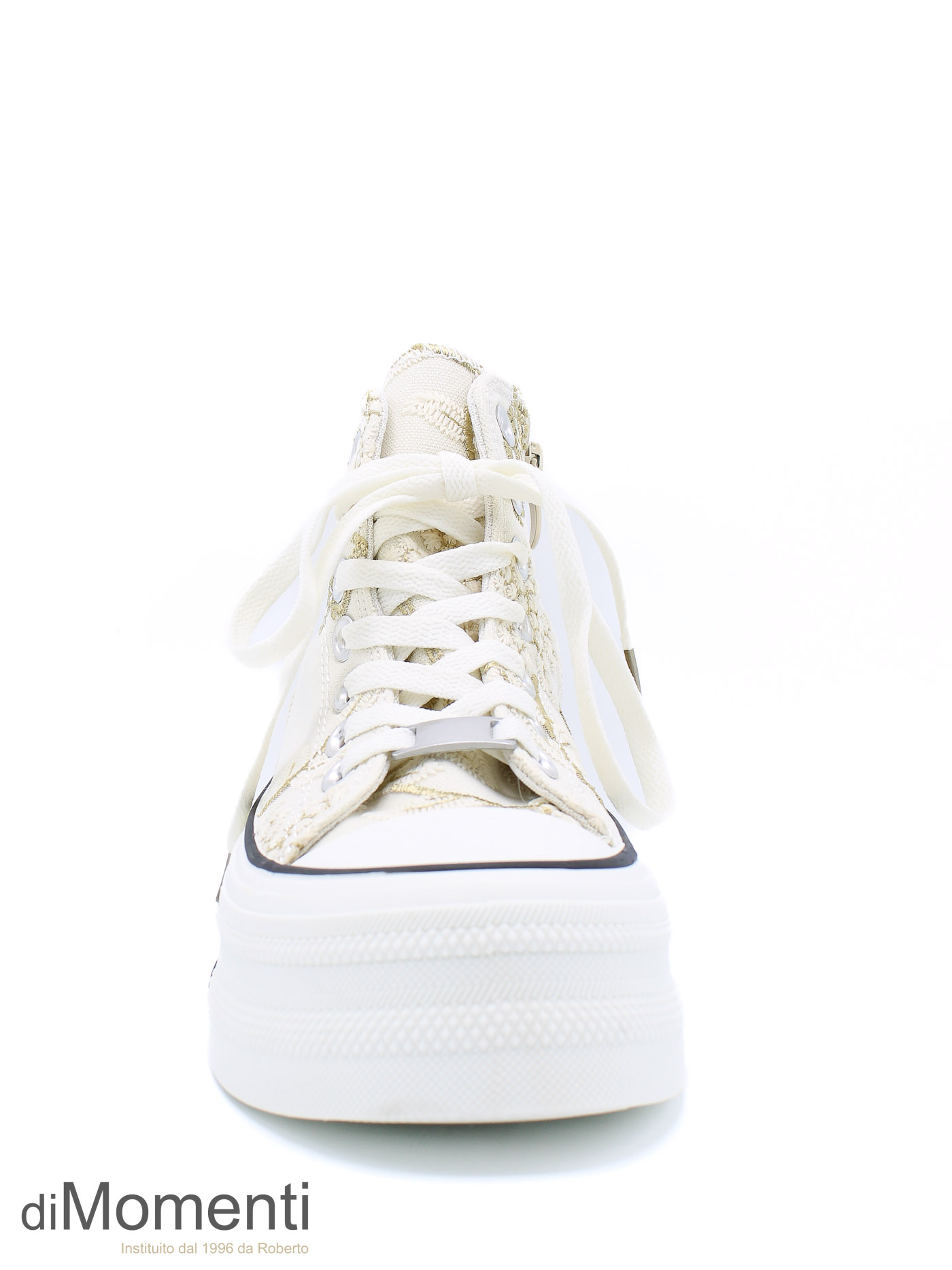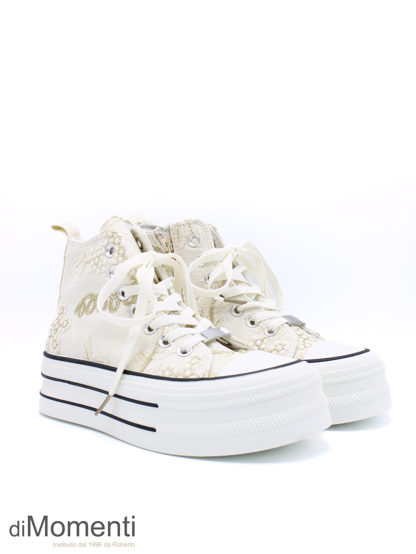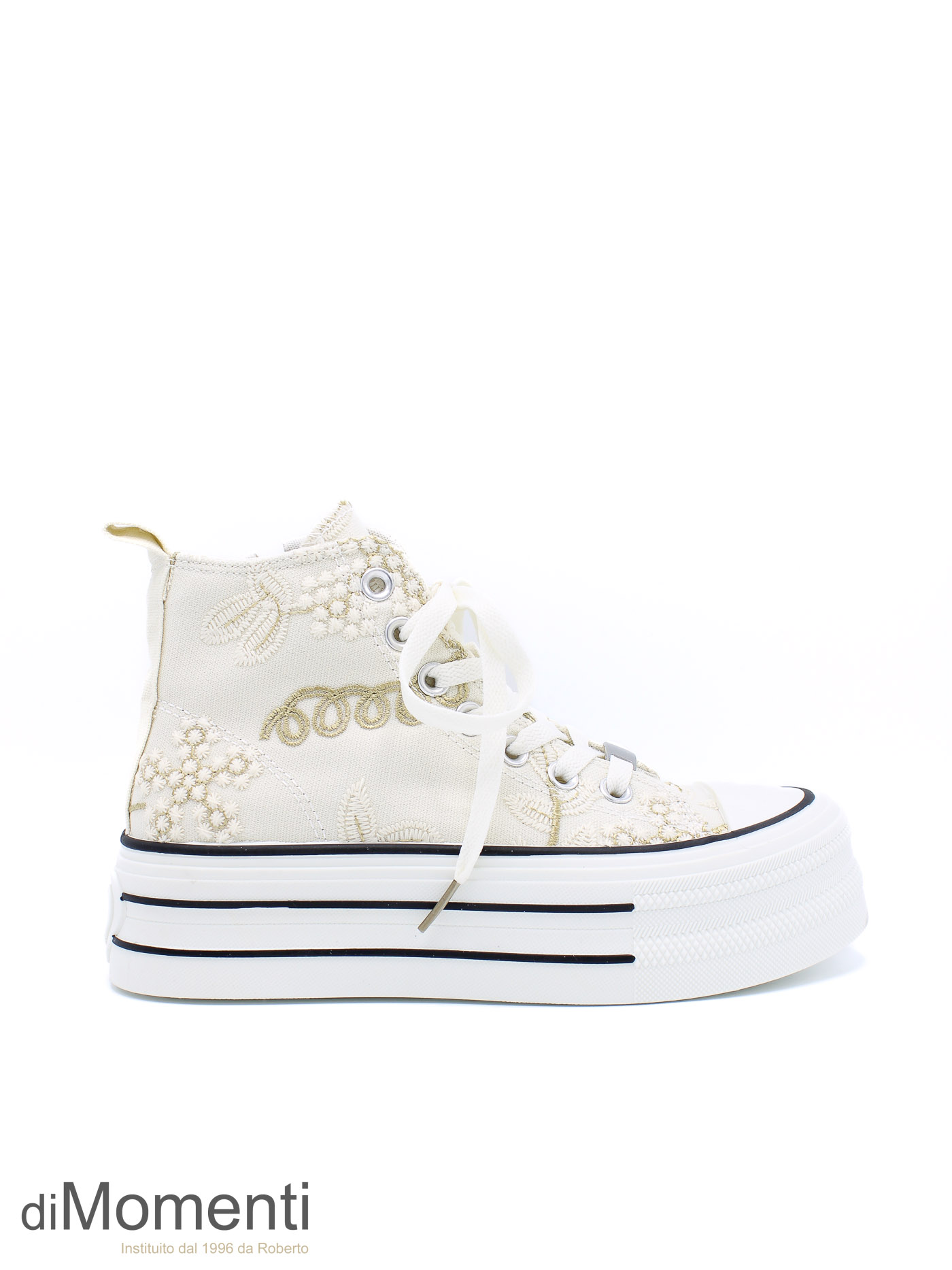 Stap stijlvol het voorjaar in met deze prachtige high top All Stars! De schoen is rondom versierd met schitterende bloemapplicaties van kant voor een romantische look. Dankzij de zijrits trek je ze razendsnel aan. Met het comfortabele voetbed en de hoogwaardige afwerking combineer je mode moeiteloos met gemak.