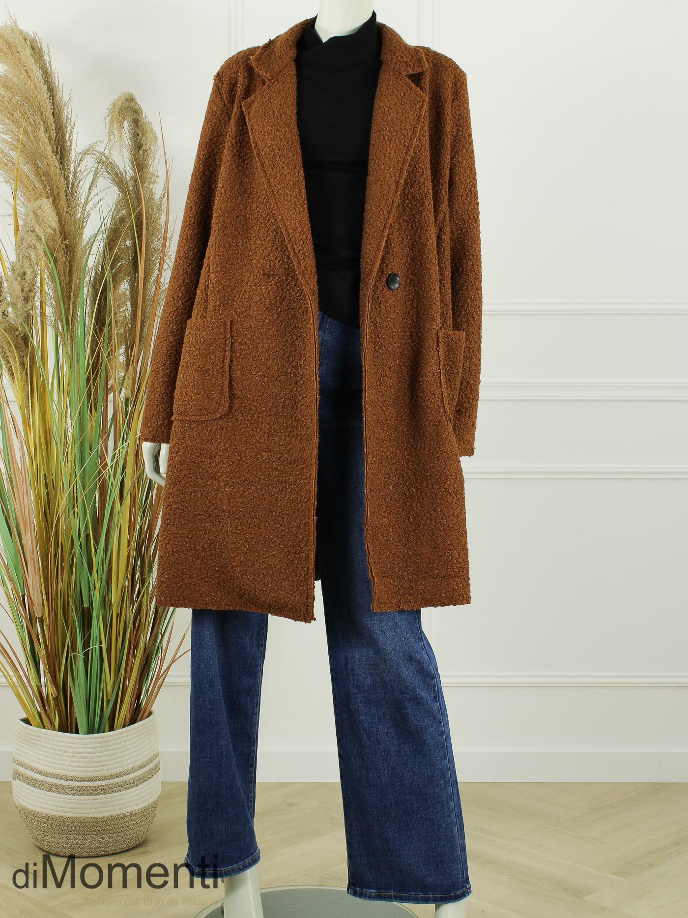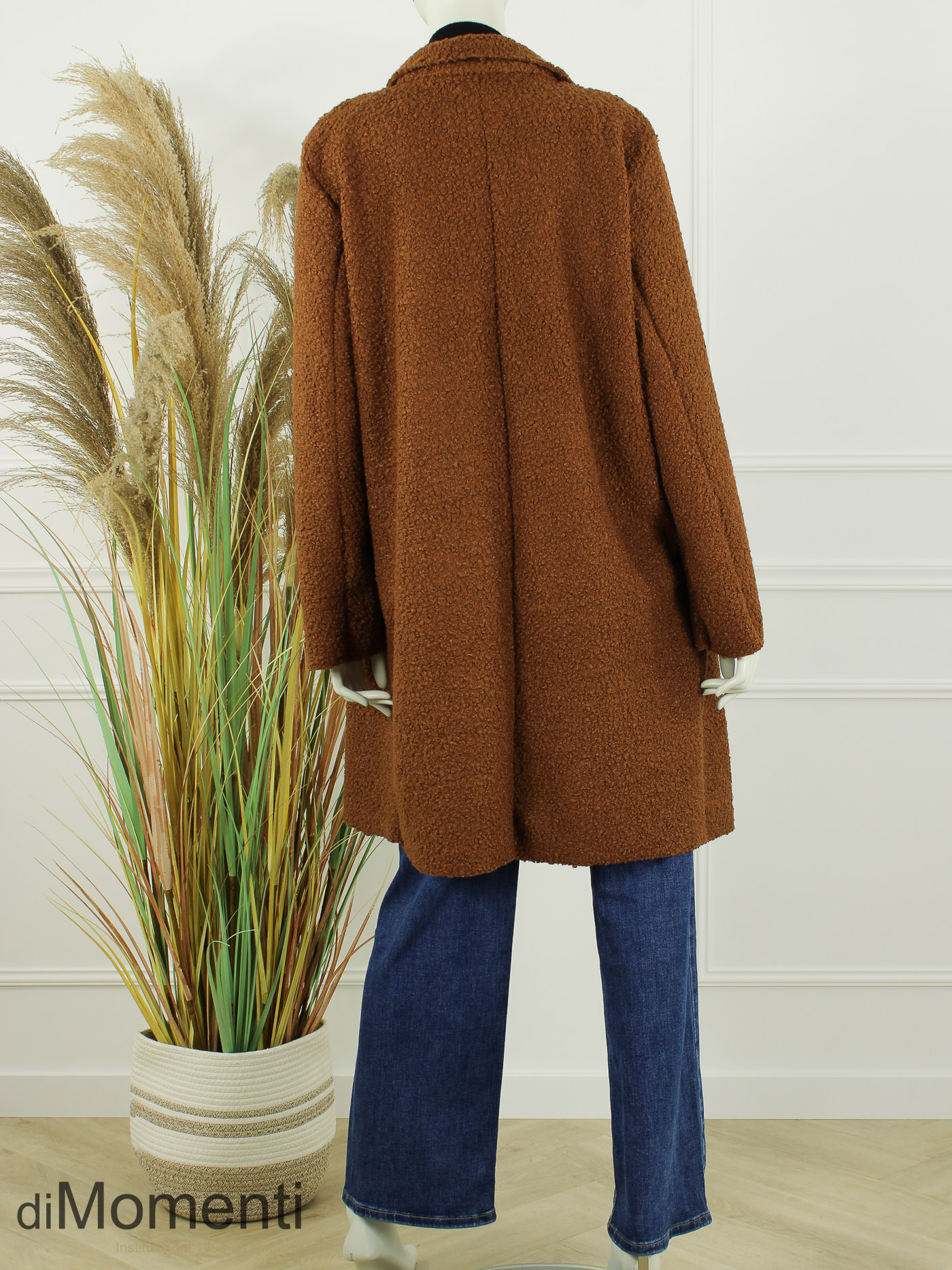 Geheel nieuw is deze knielange jas/blazer van prachtige bouclé-kwaliteit een must-have van het seizoen! Het oversized model heeft twee knopen, twee zakken en valt goed tot zeker maat 44/46. Deze jas is ook goed oversized te dragen voor een kleinere maat. Door de luxe afwerking en de nieuwste modekleuren is dit een chique en warm item.