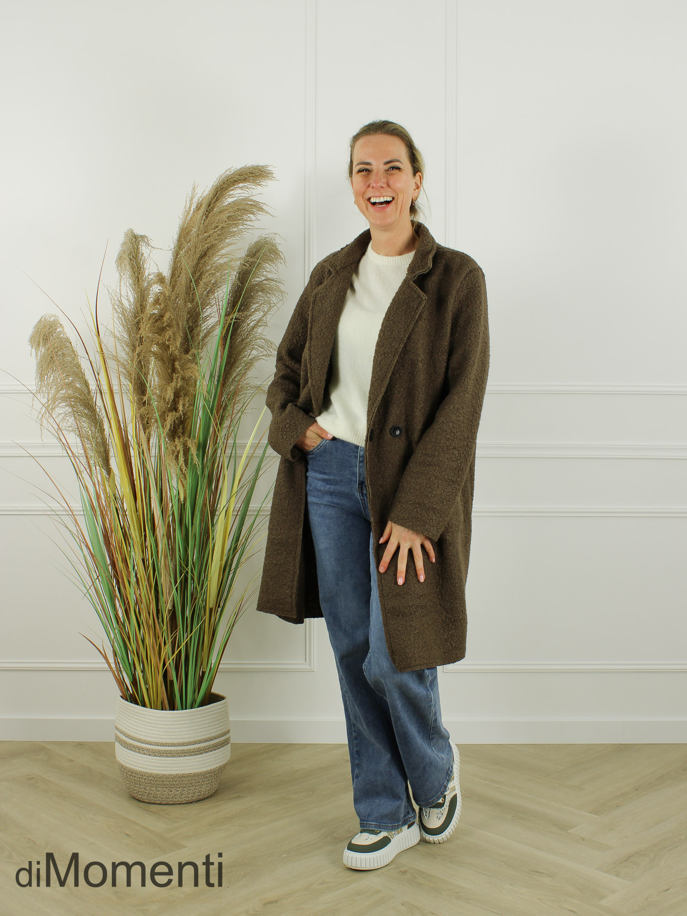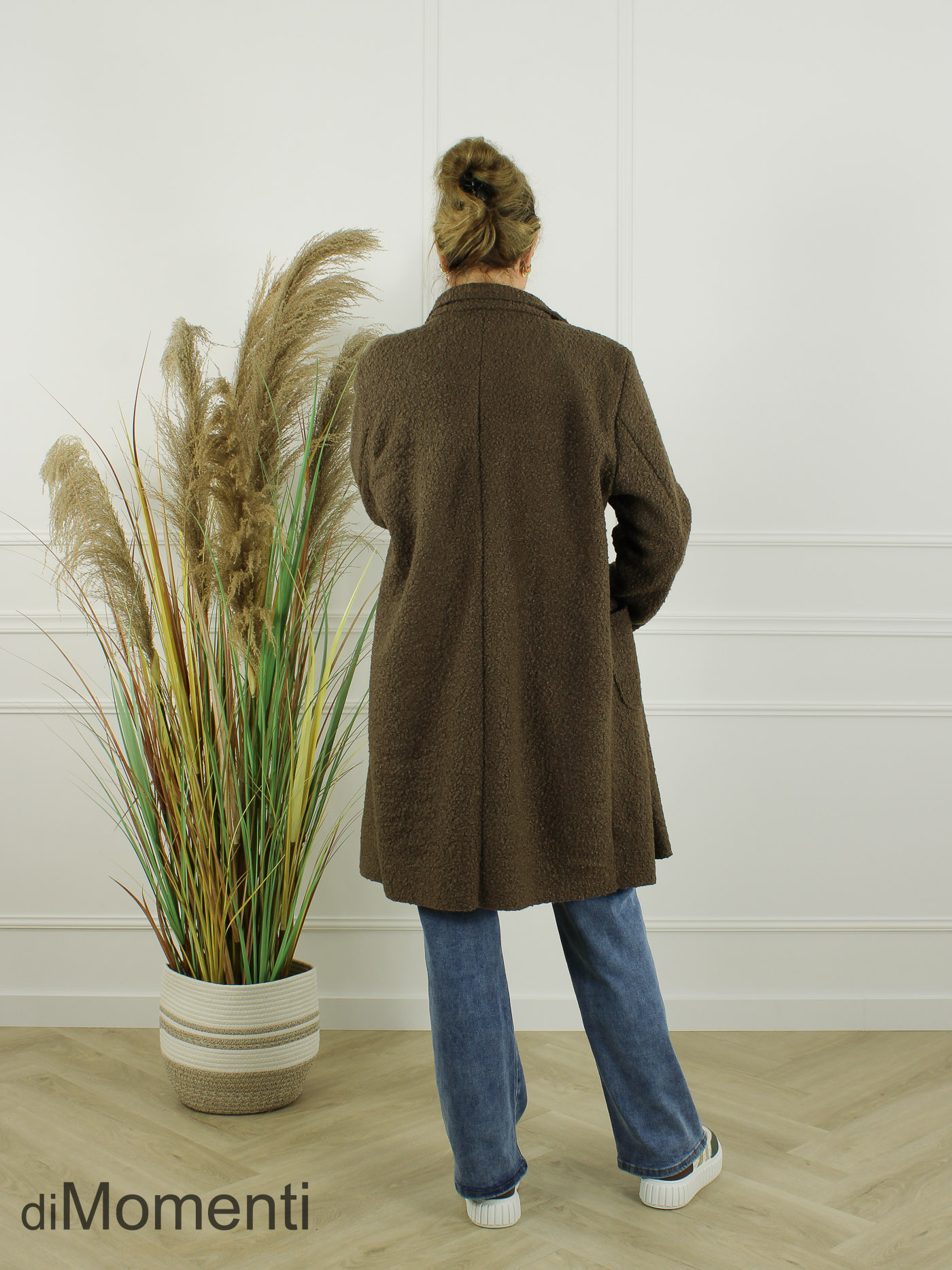 Geheel nieuw is deze knielange jas/blazer van prachtige bouclé-kwaliteit een must-have van het nieuwe seizoen! Het oversized model heeft twee knopen, twee zakken en valt goed tot zeker maat 44/46. Deze jas is ook goed oversized te dragen voor een kleinere maat. Door de luxe afwerking en de nieuwste voorjaarskleuren is dit een chique en comfy item.