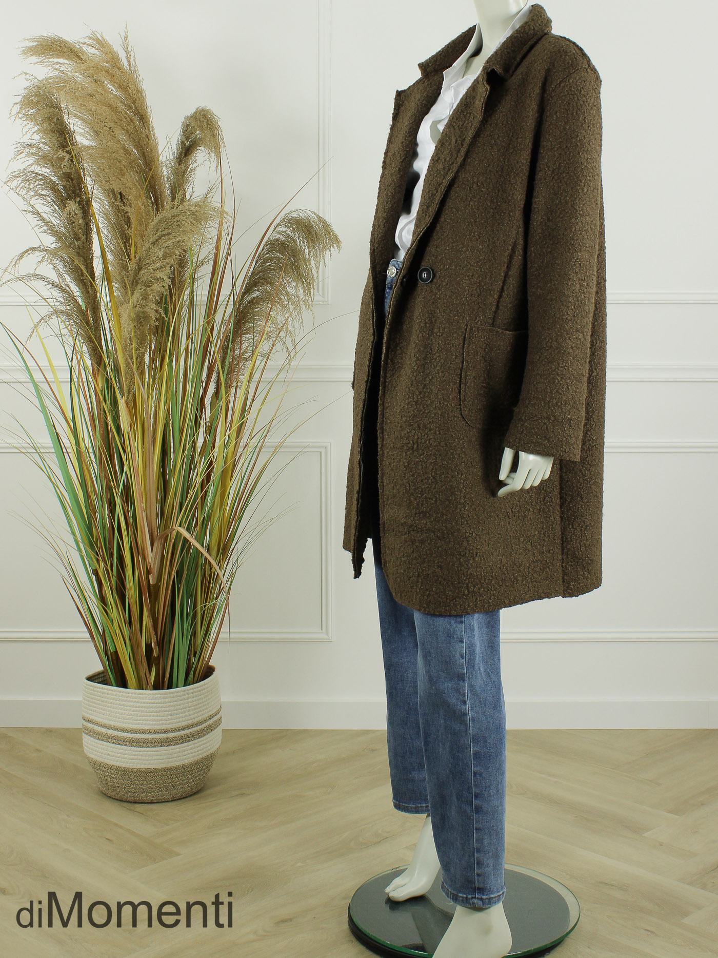 Geheel nieuw is deze knielange jas/blazer van prachtige bouclé-kwaliteit een must-have van het nieuwe seizoen! Het oversized model heeft twee knopen, twee zakken en valt goed tot zeker maat 44/46. Deze jas is ook goed oversized te dragen voor een kleinere maat. Door de luxe afwerking en de nieuwste voorjaarskleuren is dit een chique en comfy item.