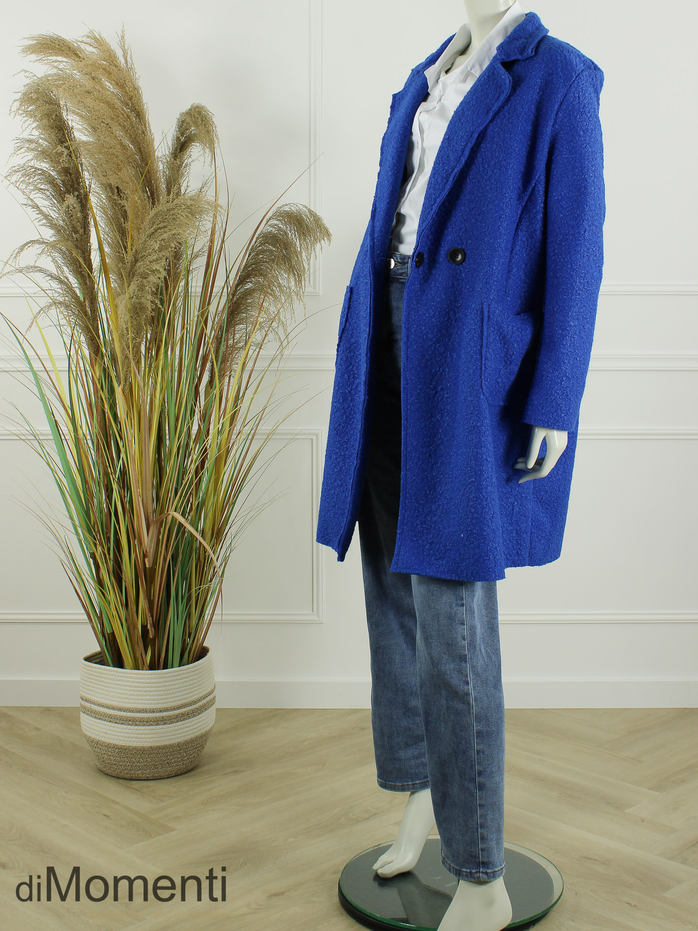 Geheel nieuw is deze knielange jas/blazer van prachtige bouclé-kwaliteit een must-have van het nieuwe seizoen! Het oversized model heeft twee knopen, twee zakken en valt goed tot zeker maat 44/46. Deze jas is ook goed oversized te dragen voor een kleinere maat. Door de luxe afwerking en de nieuwste voorjaarskleuren is dit een chique en comfy item.