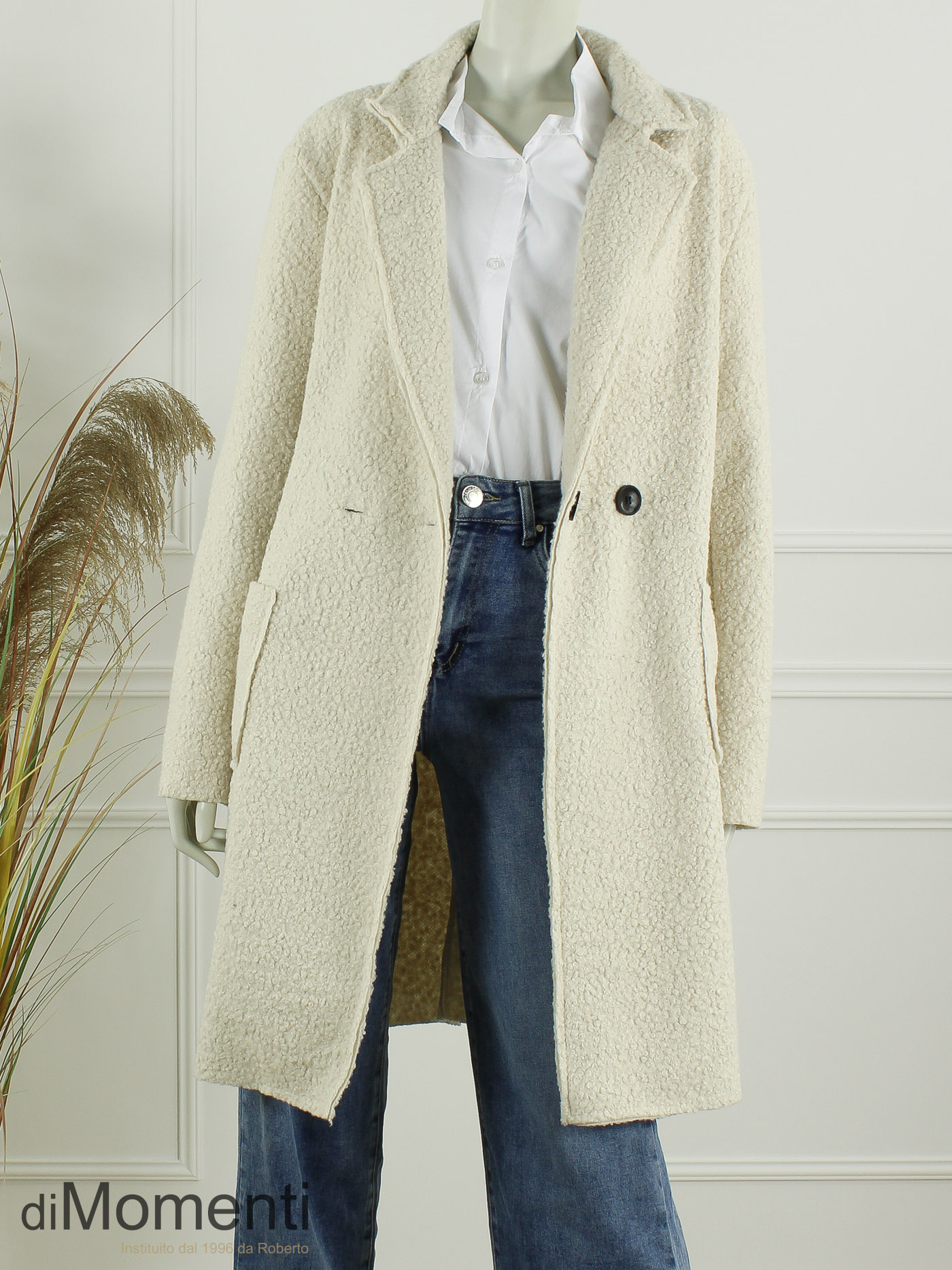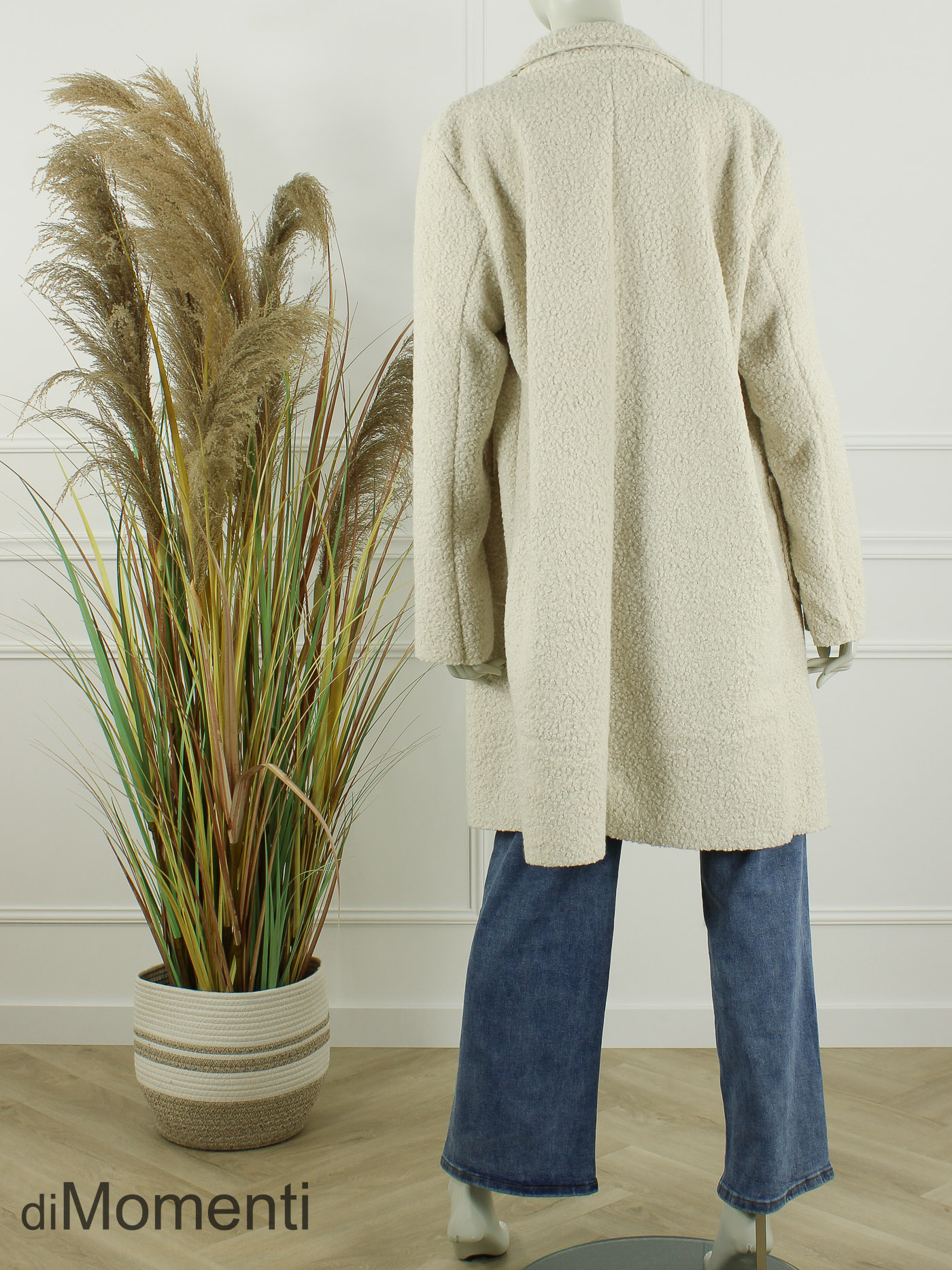 Geheel nieuw is deze knielange jas/blazer van prachtige bouclé-kwaliteit een must-have van het nieuwe seizoen! Het oversized model heeft twee knopen, twee zakken en valt goed tot zeker maat 44/46. Deze jas is ook goed oversized te dragen voor een kleinere maat. Door de luxe afwerking en de nieuwste voorjaarskleuren is dit een chique en comfy item.