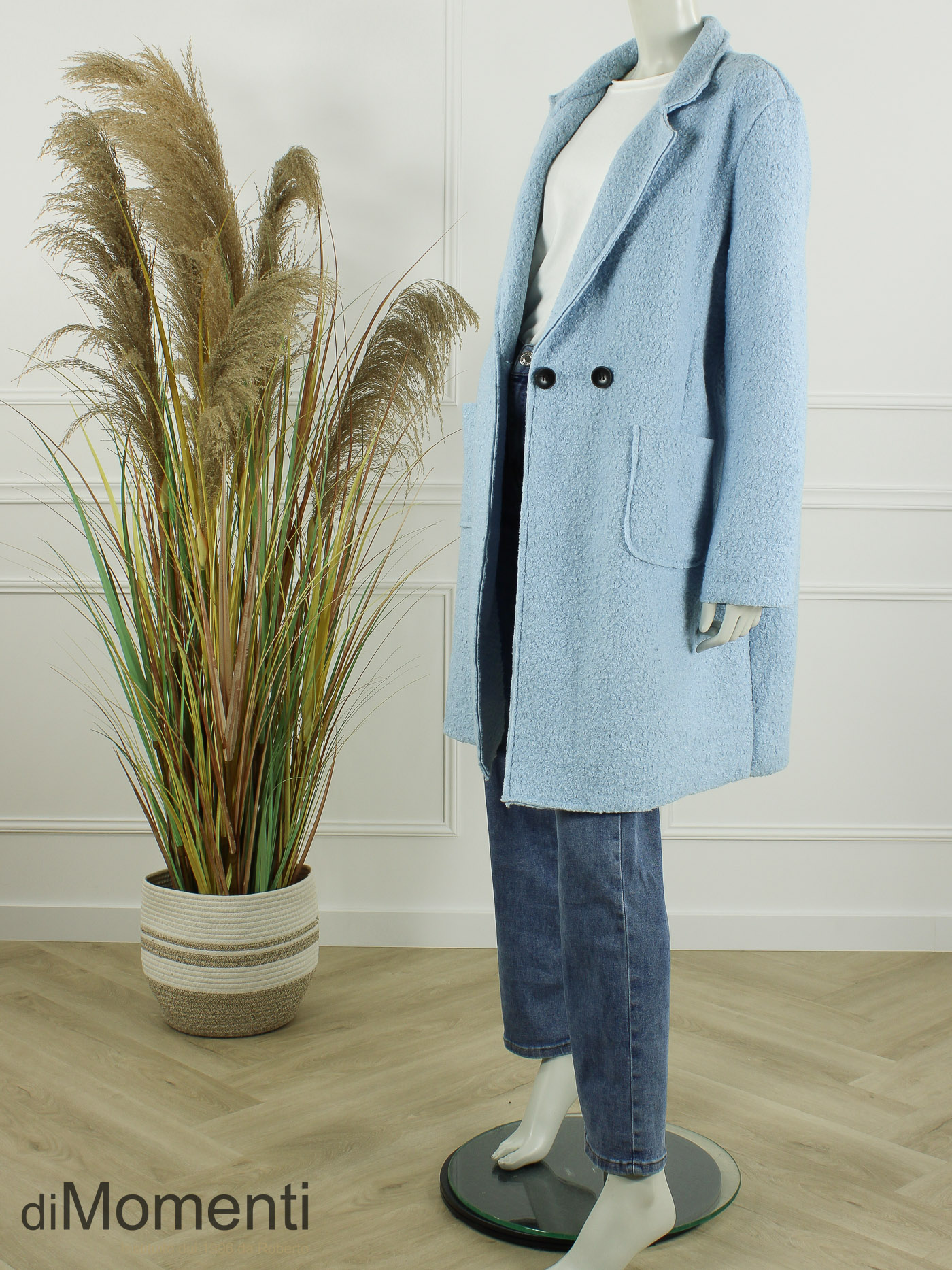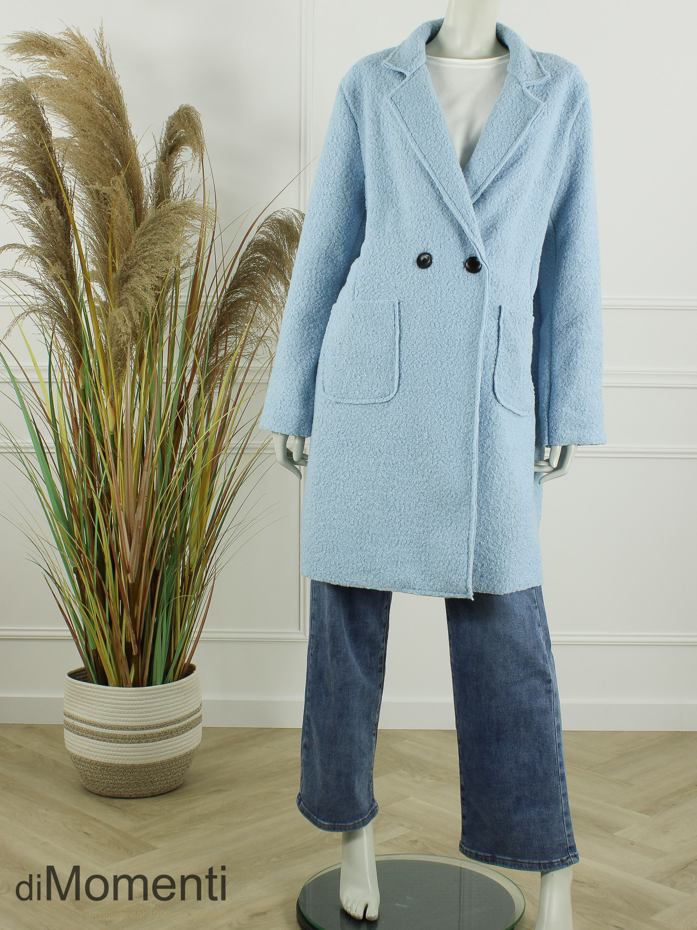 Geheel nieuw is deze knielange jas/blazer van prachtige bouclé-kwaliteit een must-have van het nieuwe seizoen! Het oversized model heeft twee knopen, twee zakken en valt goed tot zeker maat 44/46. Deze jas is ook goed oversized te dragen voor een kleinere maat. Door de luxe afwerking en de nieuwste voorjaarskleuren is dit een chique en comfy item.