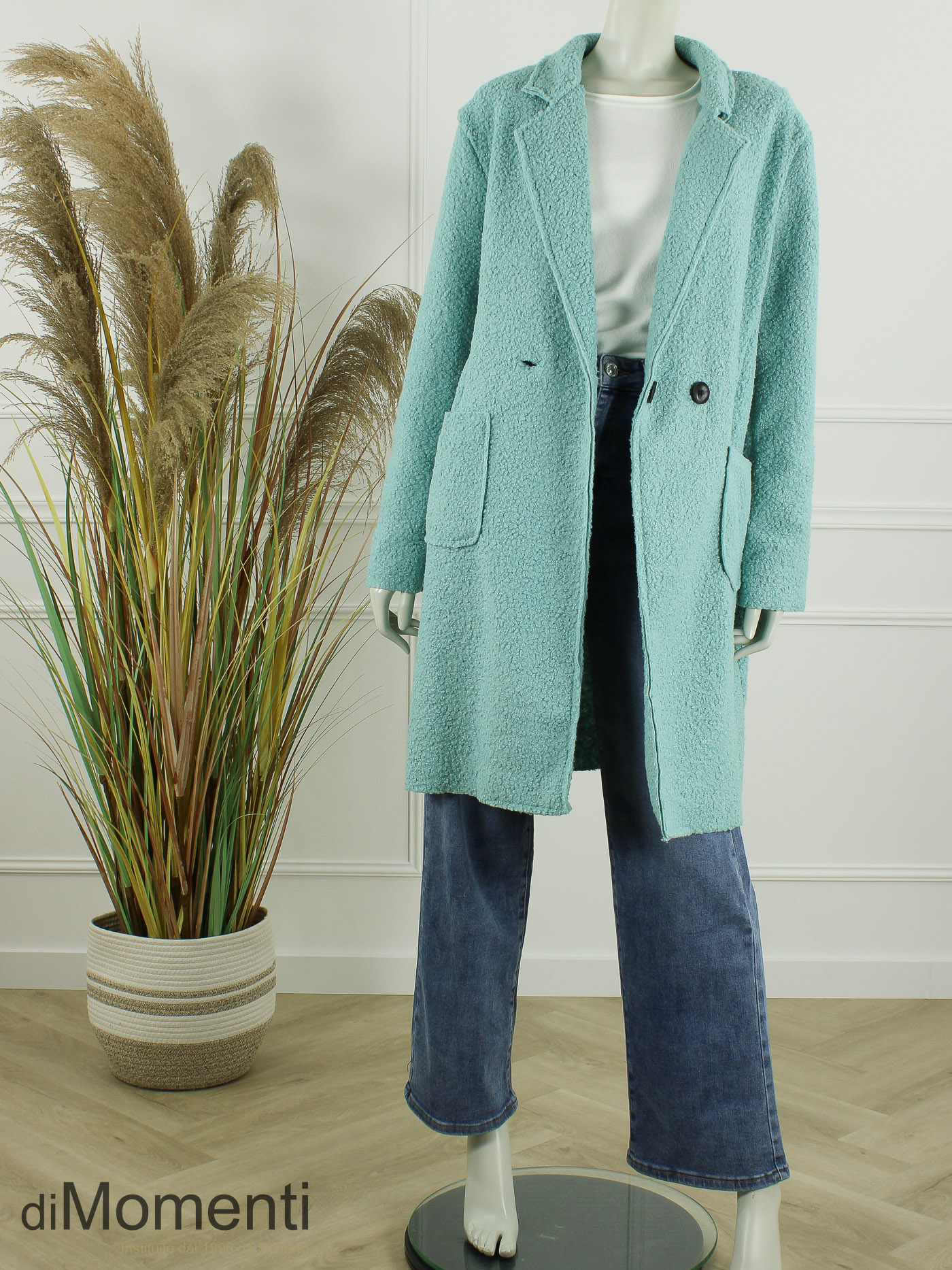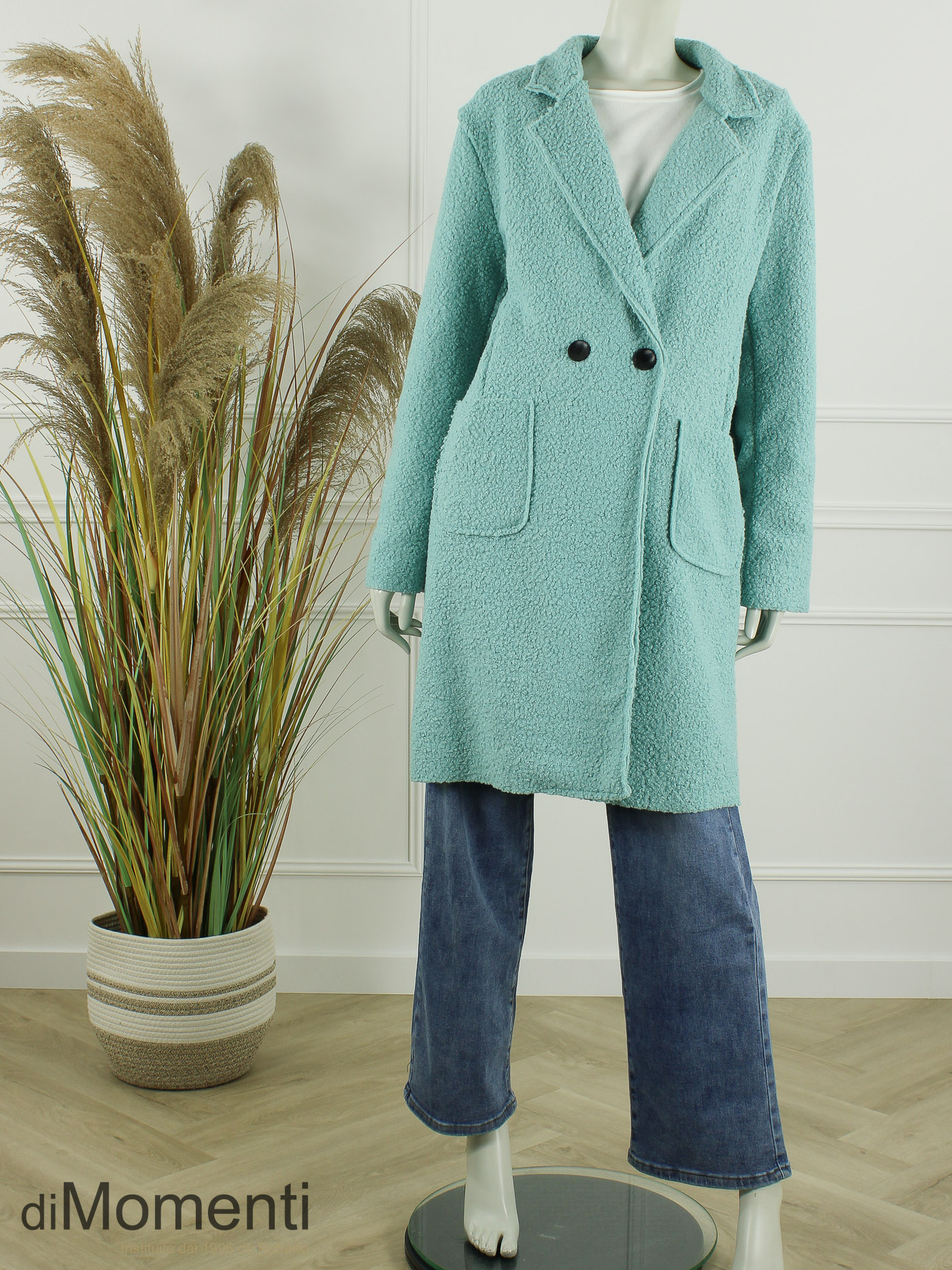Geheel nieuw is deze knielange jas/blazer van prachtige bouclé-kwaliteit een must-have van het nieuwe seizoen! Het oversized model heeft twee knopen, twee zakken en valt goed tot zeker maat 44/46. Deze jas is ook goed oversized te dragen voor een kleinere maat. Door de luxe afwerking en de nieuwste voorjaarskleuren is dit een chique en comfy item.