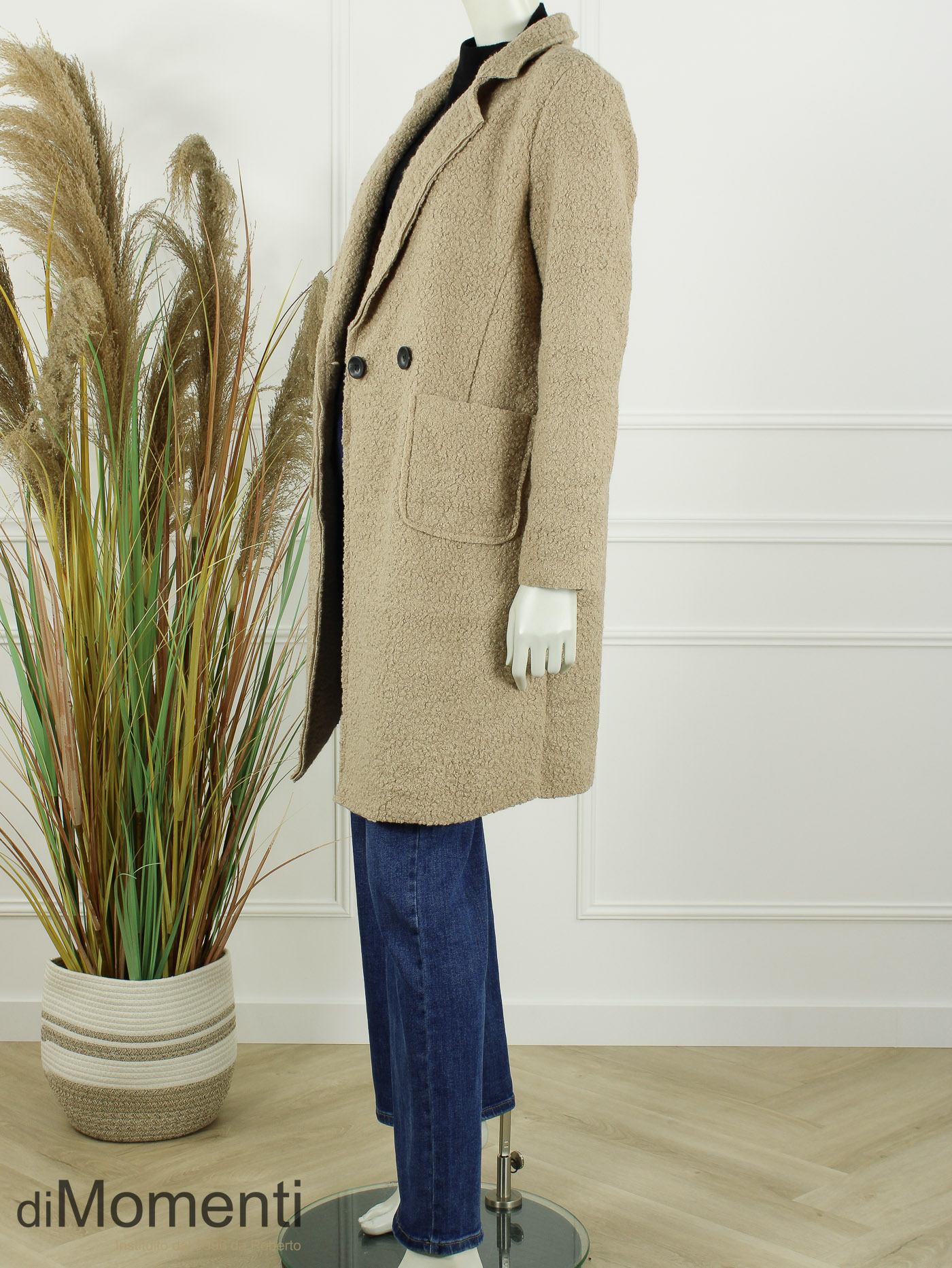 Deze stijlvolle, knielange blazer/jas van luxe bouclé-kwaliteit is de perfecte tussenlaag! Het model heeft twee praktische zakken en is One Size, passend tot circa maat 38/40. Nu verkrijgbaar in de nieuwste, prachtige najaarskleuren. Een chique en comfortabel model voor dit seizoen.
