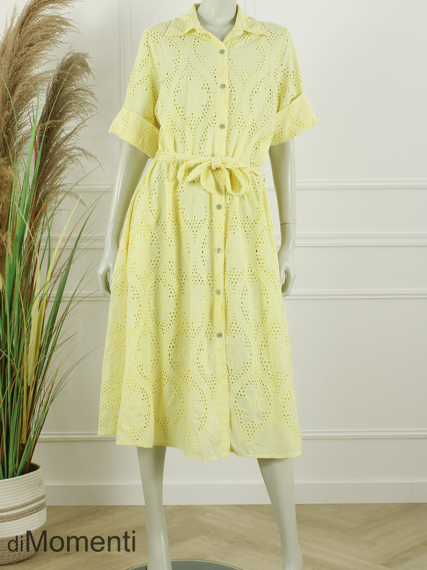 Zomerse allure met deze prachtige jurk in broderie van Noéline Paris. Deze lange doorknoopjurk (130 cm) in soepele broderie combineert stijl met gemak. Met handige zijzakken, sportieve oprolmouwen en een strikceintuur voor een prachtig getailleerd accent. De ultieme vrouwelijke jurk.