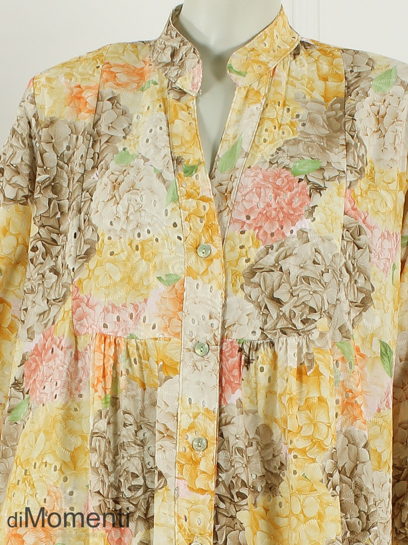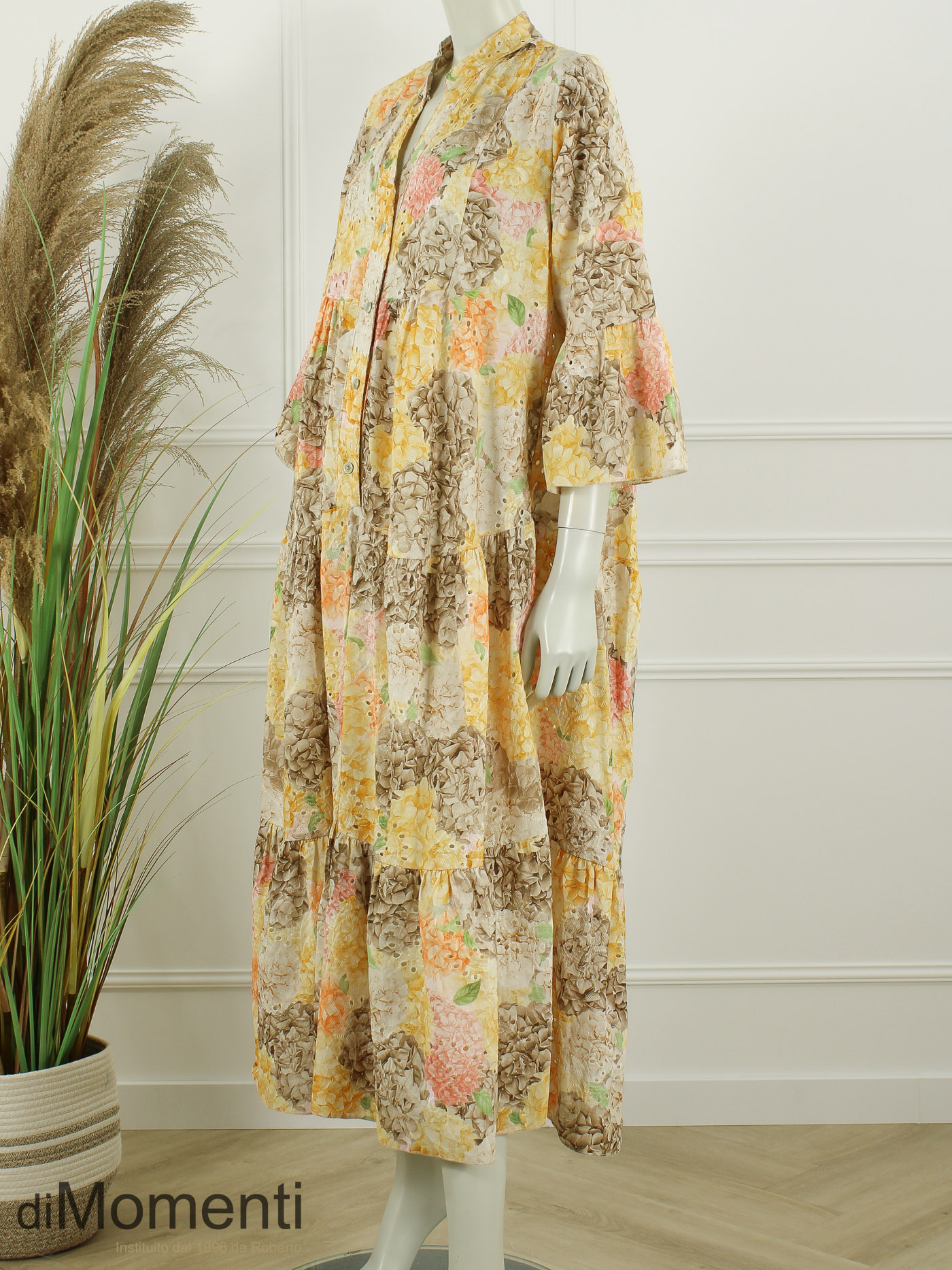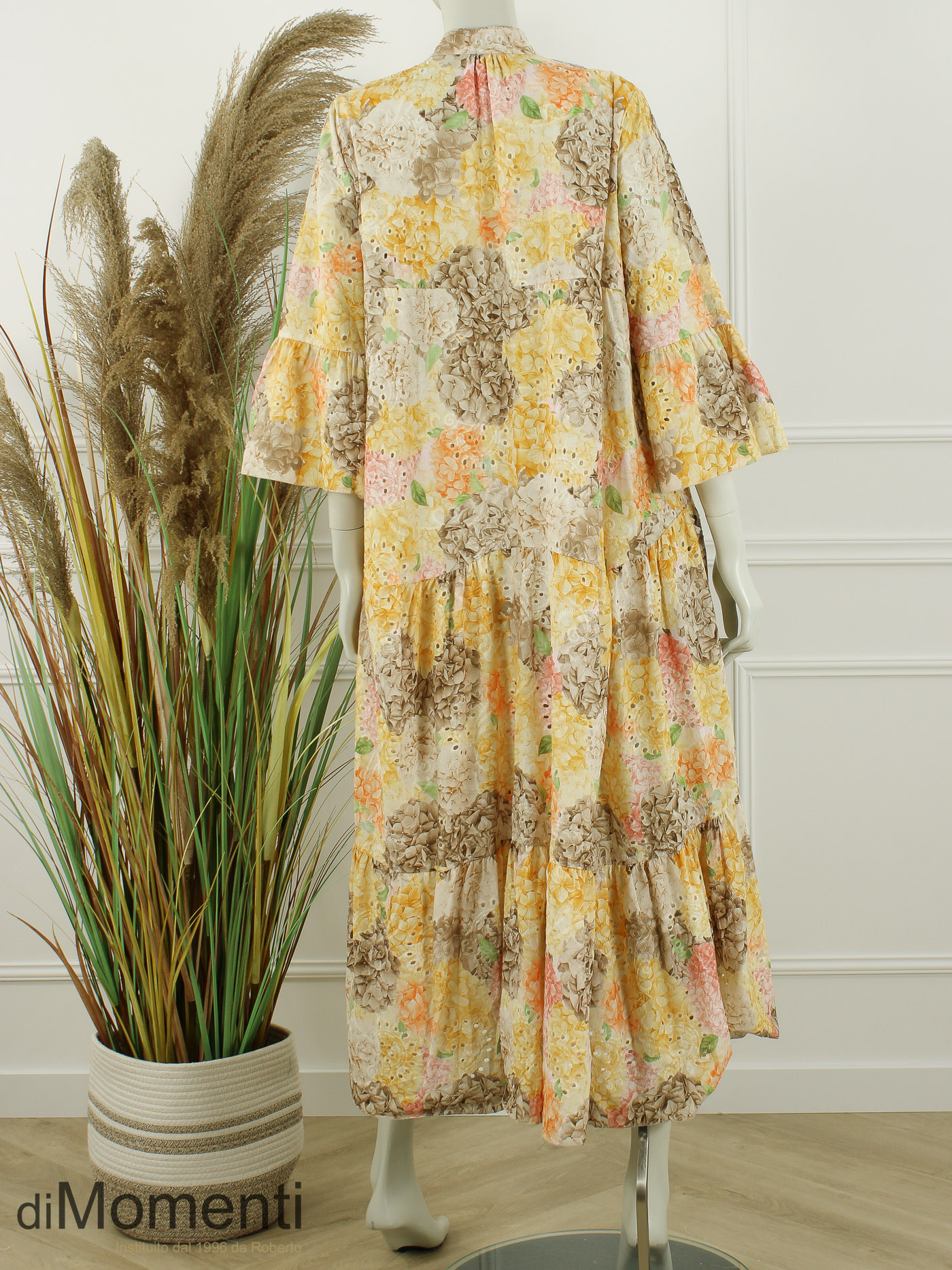 Franse Riviera allure van Noéline Paris! Deze lange A-lijn jurk (135 cm) in katoenen broderie straalt luxe uit met een prachtige bloemenprint. De elegante V-hals en 3/4 mouwen met ruches maken het model supervrouwelijk. Een exclusieve, luchtige eyecatcher die elke collectie direct een zomerse haute-couture uitstraling geeft.