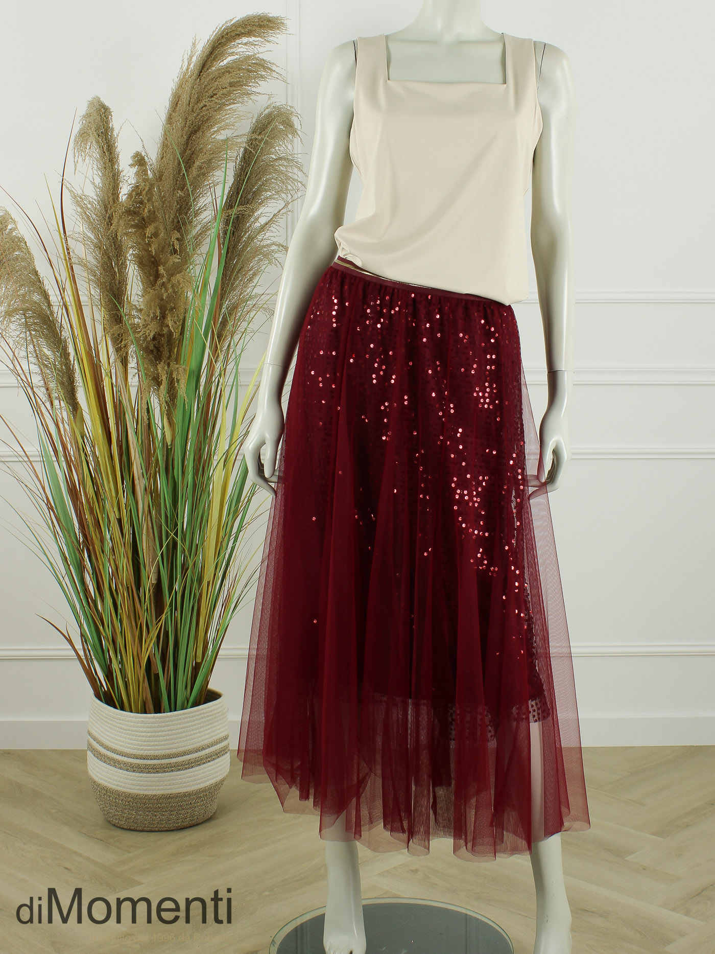 Deze chique circle tule rok is een eyecatcher! De rok combineert twee lagen uni tule met een ton-sur-ton pailletten onderrok, wat zorgt voor een subtiele schittering. De brede elastische tailleband is comfortabel. Dubbel gevoerd, super wijd en verkrijgbaar in diverse modekleuren.