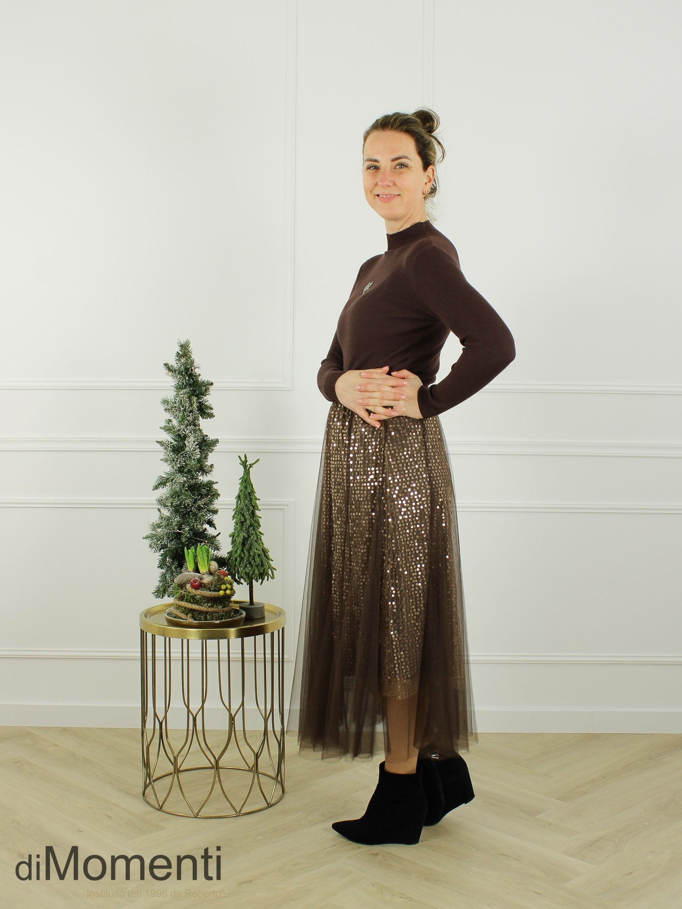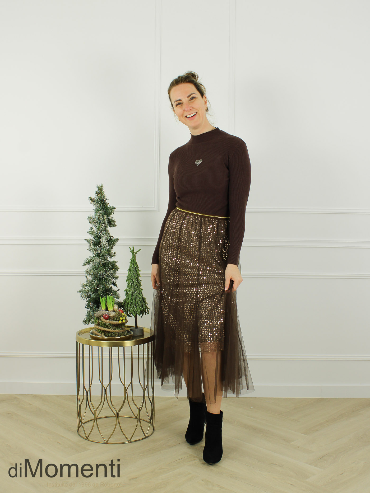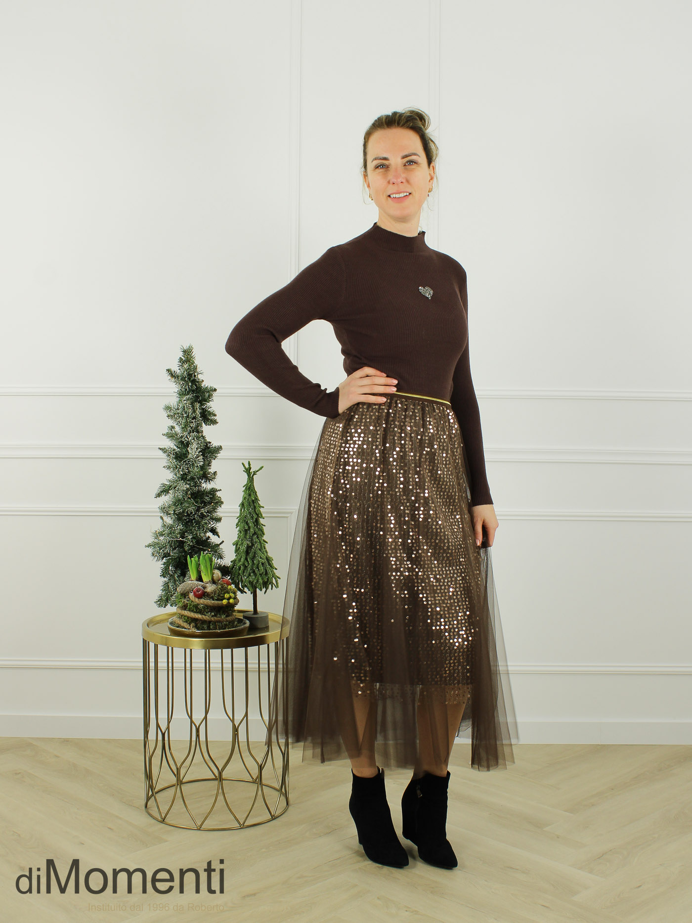 Deze chique circle tule rok is een feestelijke eyecatcher! De rok combineert twee lagen uni tule met een ton-sur-ton pailletten onderrok, wat zorgt voor een subtiele schittering. De brede elastische tailleband is comfortabel. Dubbel gevoerd, super wijd en verkrijgbaar in diverse modekleuren.