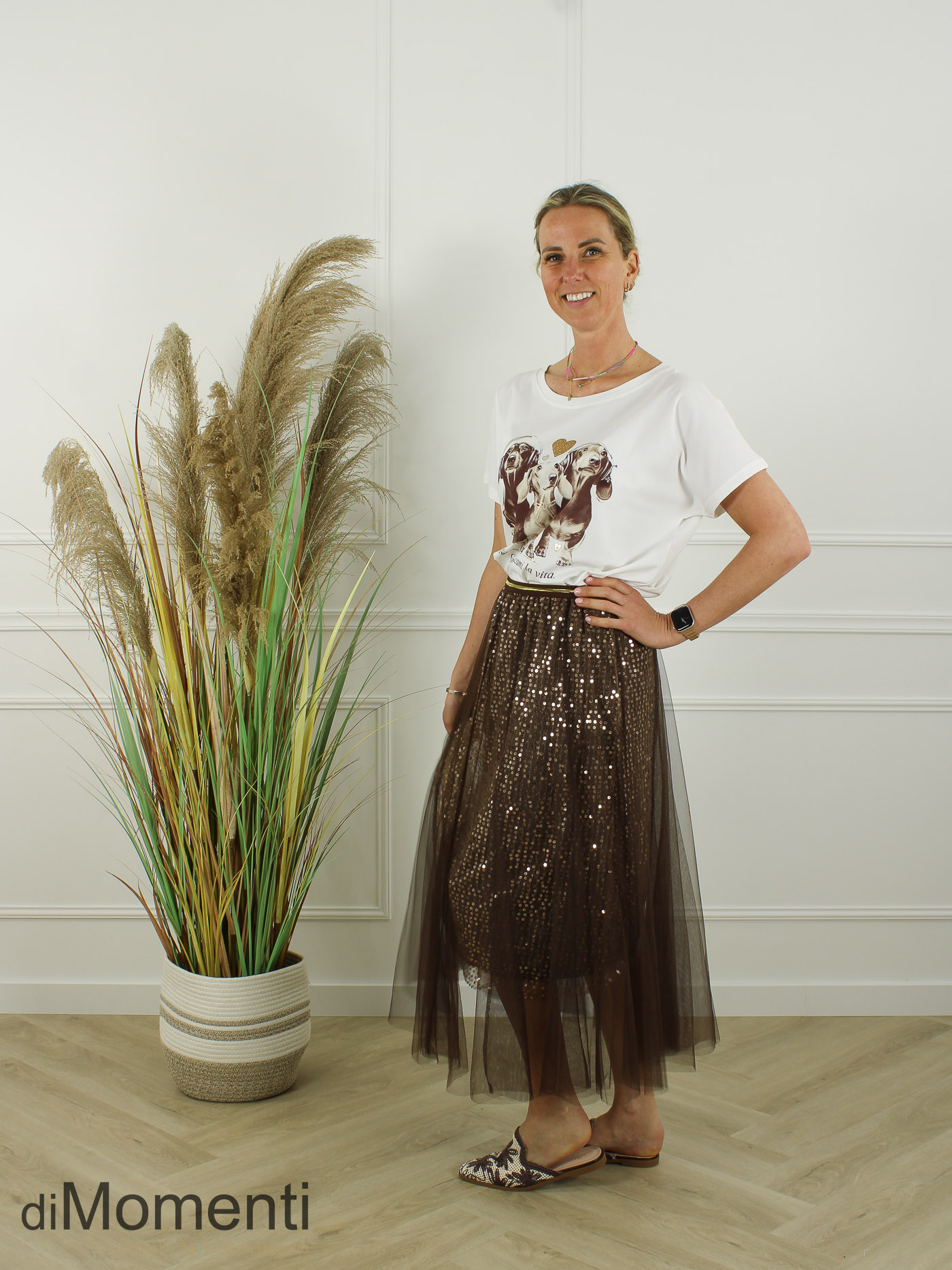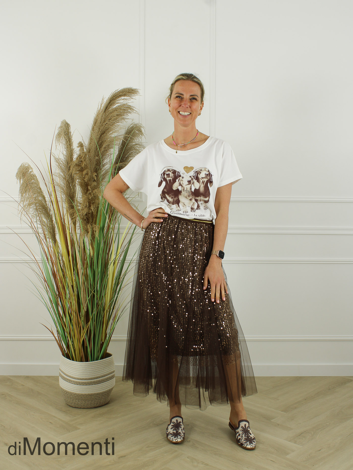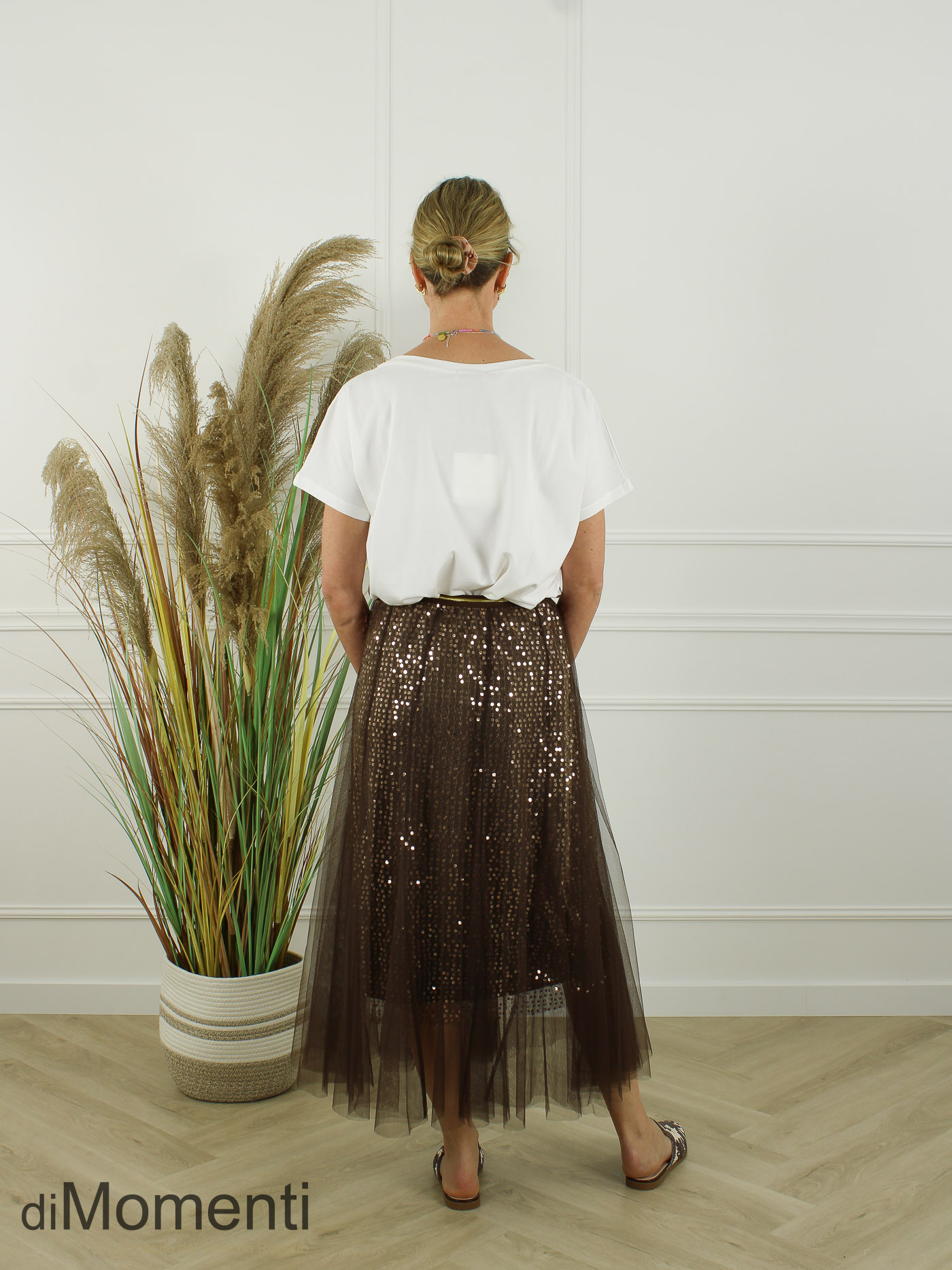 Deze chique circle tule rok is een eyecatcher! De rok combineert twee lagen uni tule met een ton-sur-ton pailletten onderrok, wat zorgt voor een subtiele schittering. De brede elastische tailleband is comfortabel. Dubbel gevoerd, super wijd en verkrijgbaar in diverse kleuren.