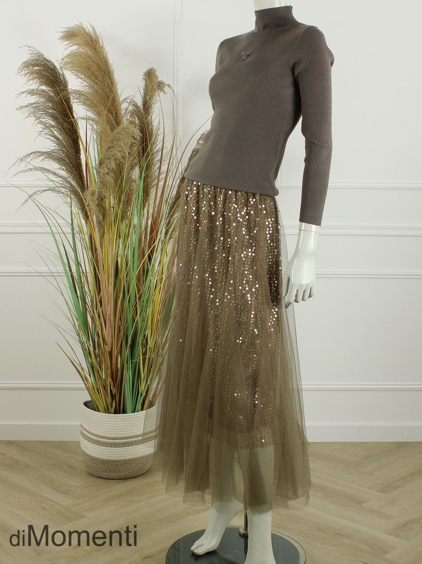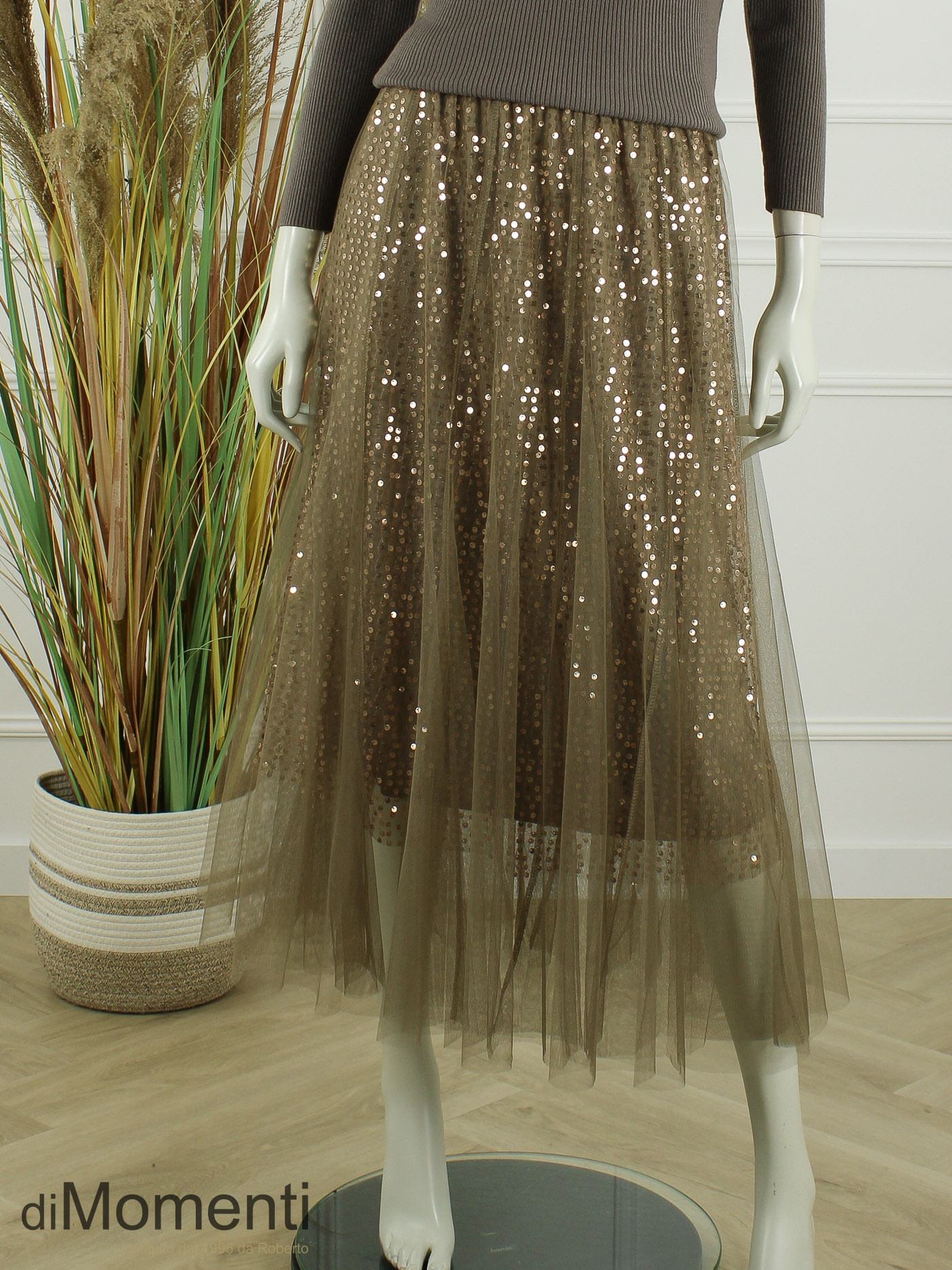 Deze chique circle tule rok is een feestelijke eyecatcher! De rok combineert twee lagen uni tule met een ton-sur-ton pailletten onderrok, wat zorgt voor een subtiele schittering. De brede elastische tailleband is comfortabel. Dubbel gevoerd, super wijd en verkrijgbaar in diverse modekleuren.