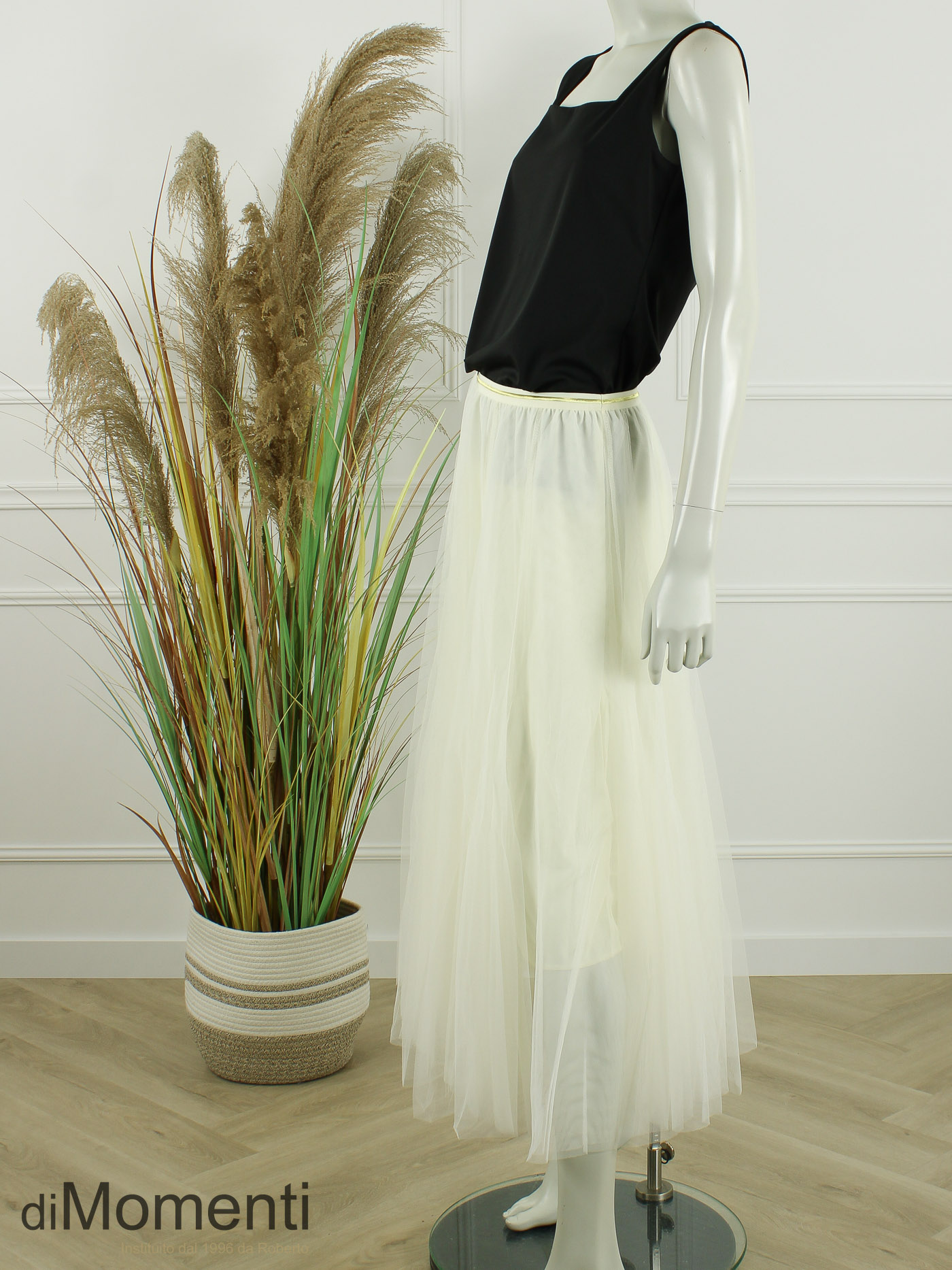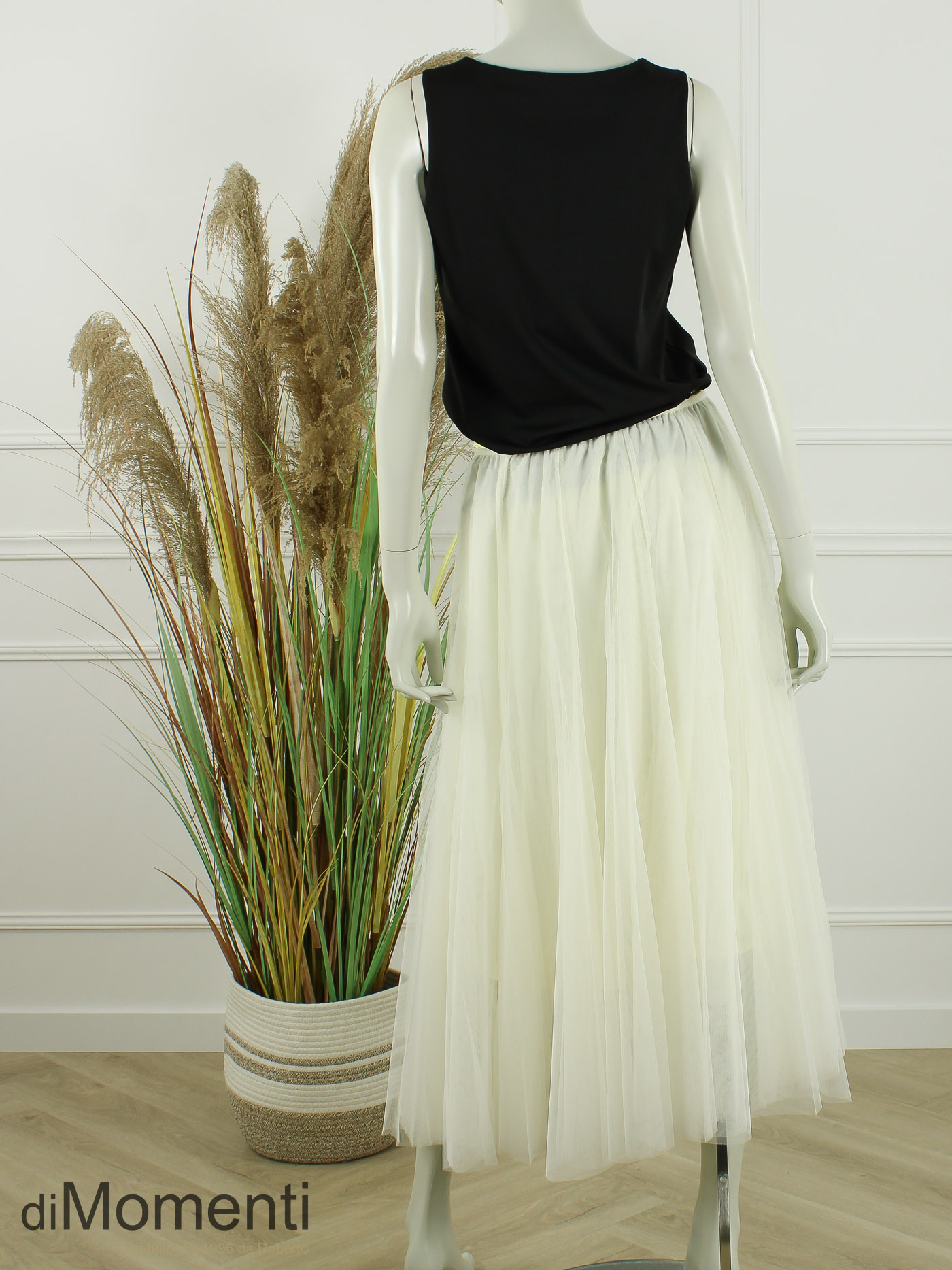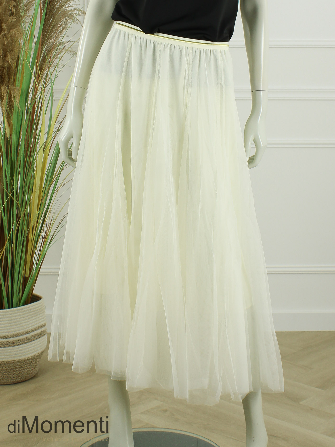 Deze geweldige tule rok is synoniem aan chic! De rok heeft twee lagen tule van enorme omvang, wat zorgt voor een dramatische en feestelijke uitstraling. Voorzien van een comfortabele elastieken tailleband en volledig gevoerd. Verkrijgbaar in diverse modische kleuren.