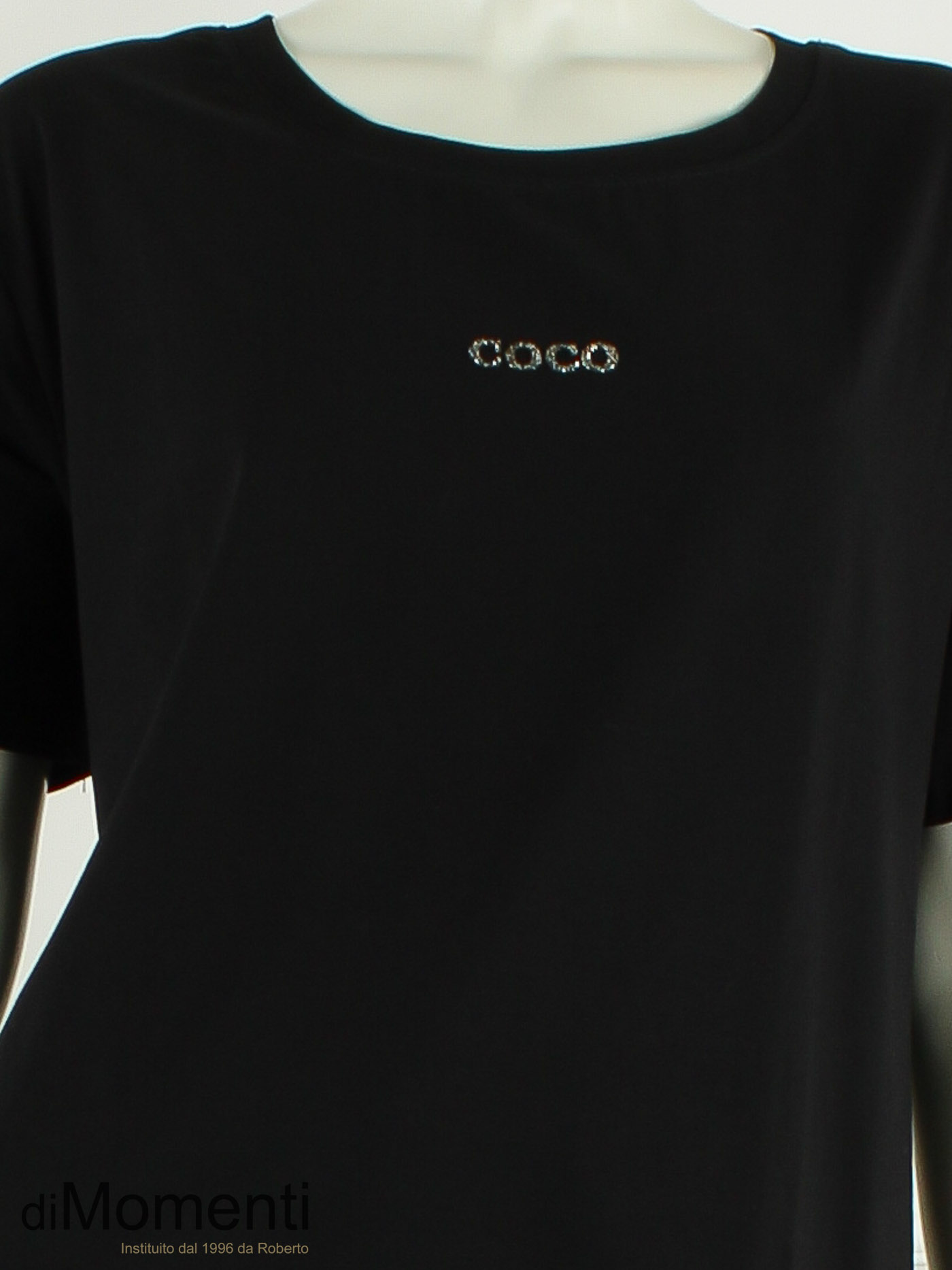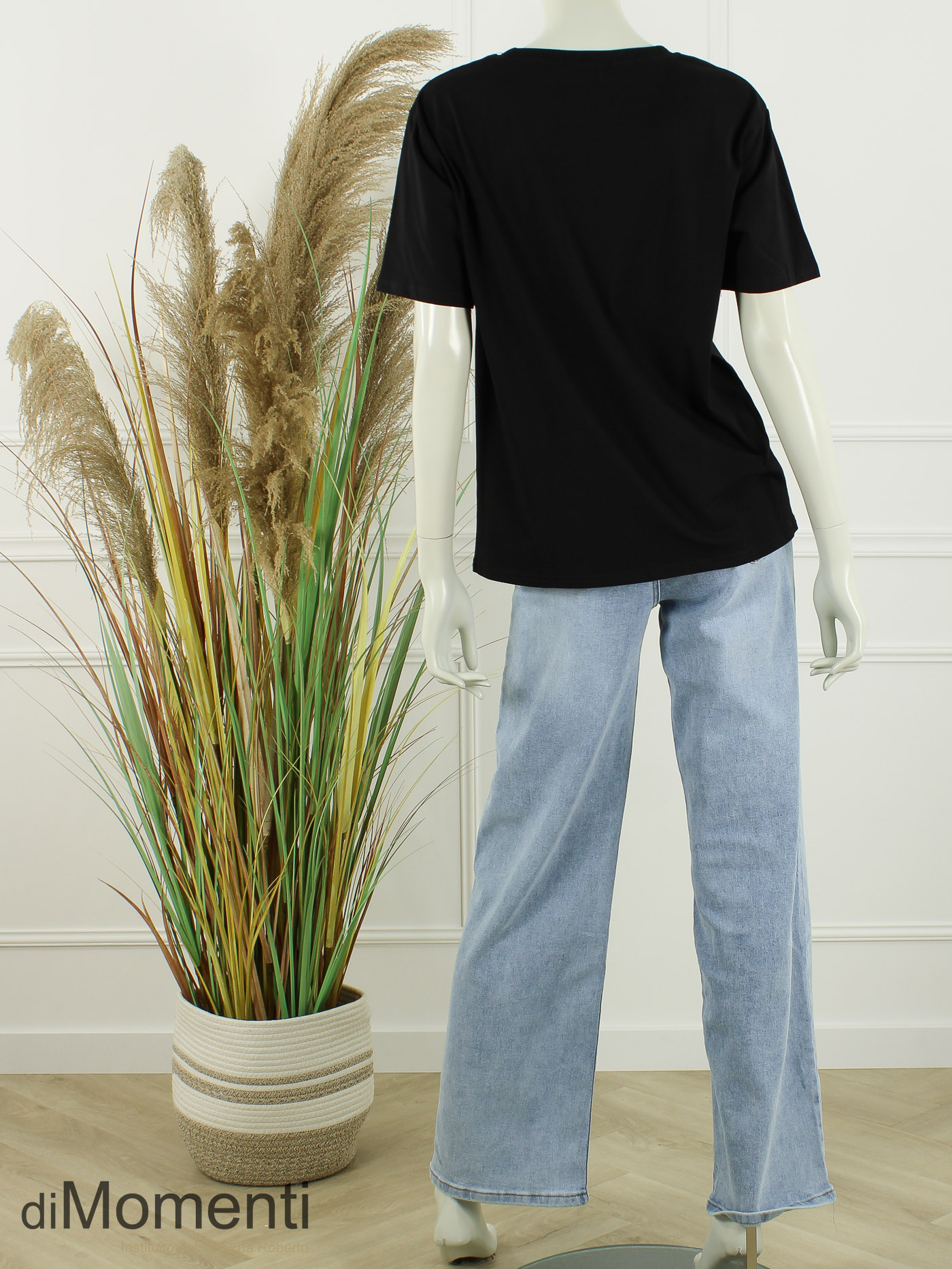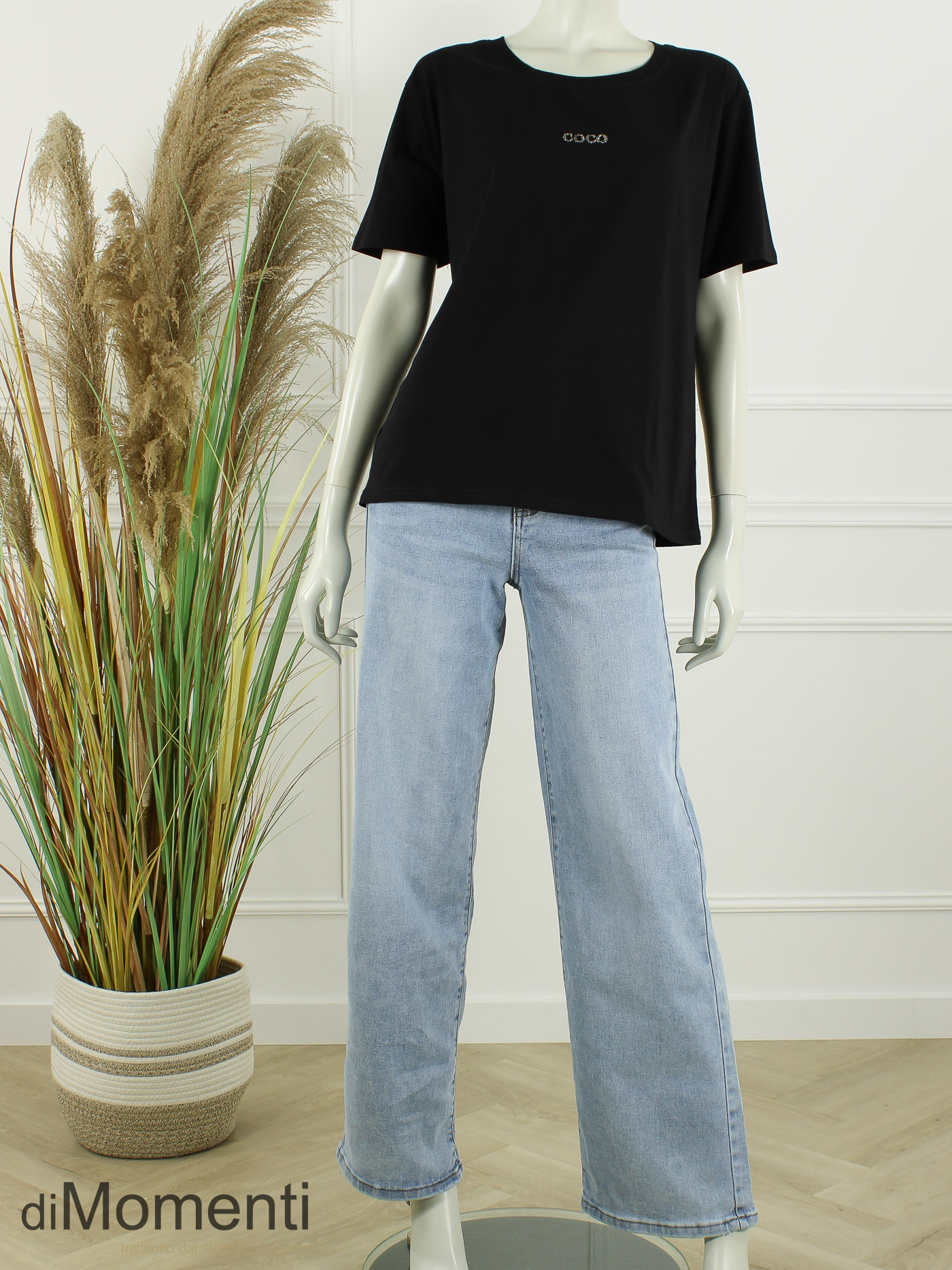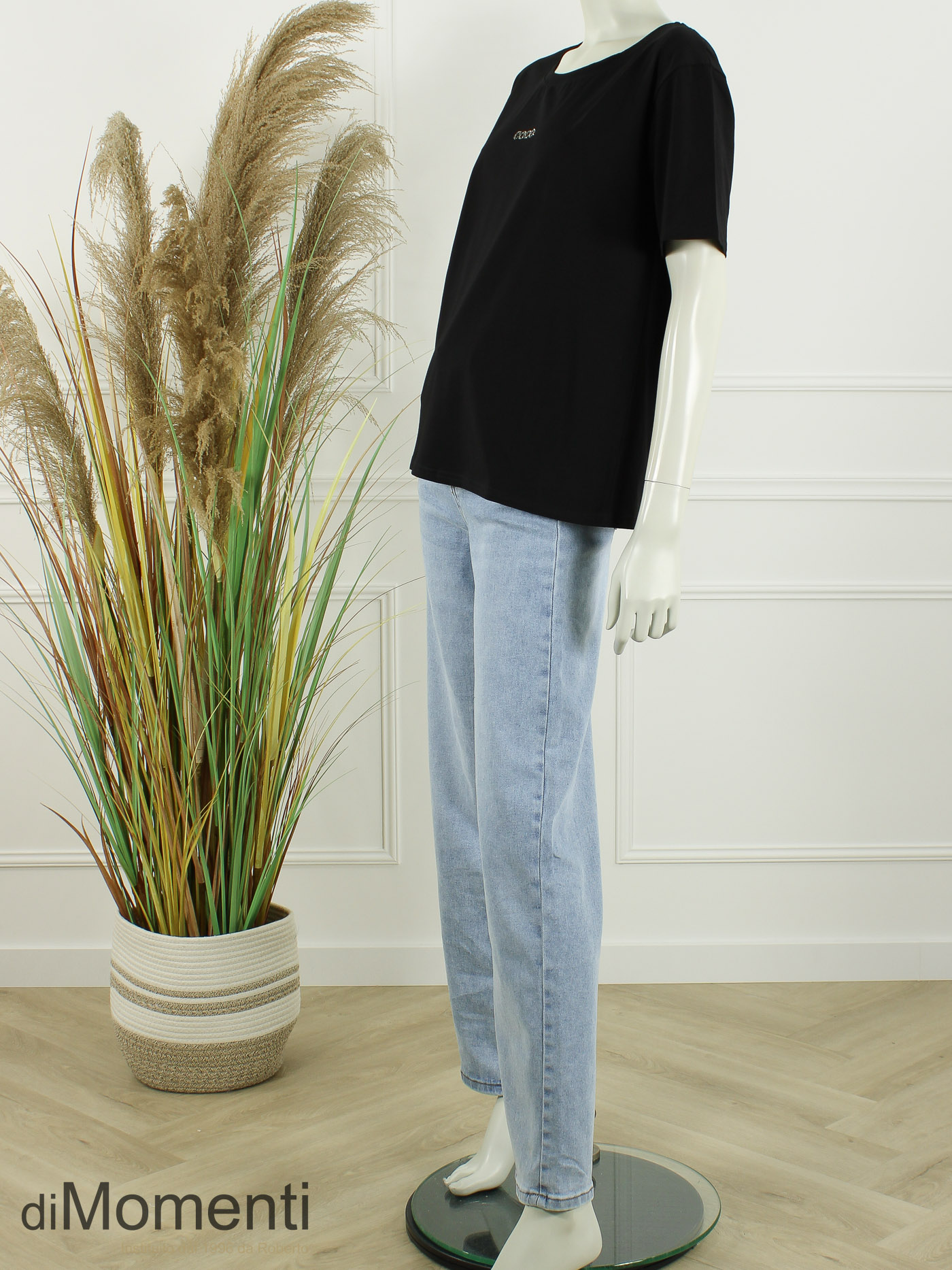 Stijlvol shirt met strass applicatie. Dit model is gemaakt in een fijne katoen kwaliteit met stretch.