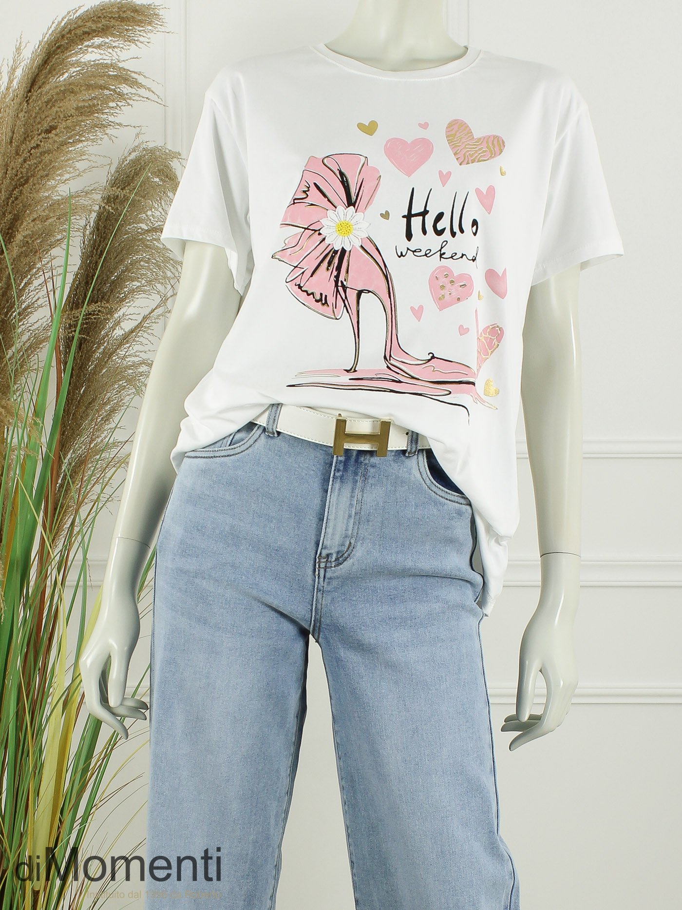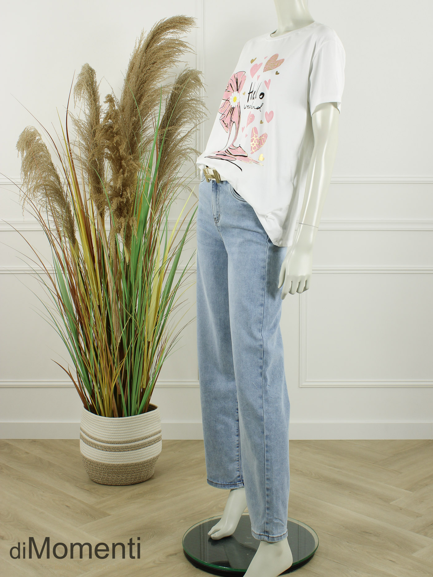 Onze collectie is weer aangevuld met de leukste nieuwe prints! Deze luxe T-shirts zijn afgewerkt met prachtige goudkleurige details voor die extra chique touch. Gemaakt in een hoogwaardige katoen kwaliteit met fijne stretch.