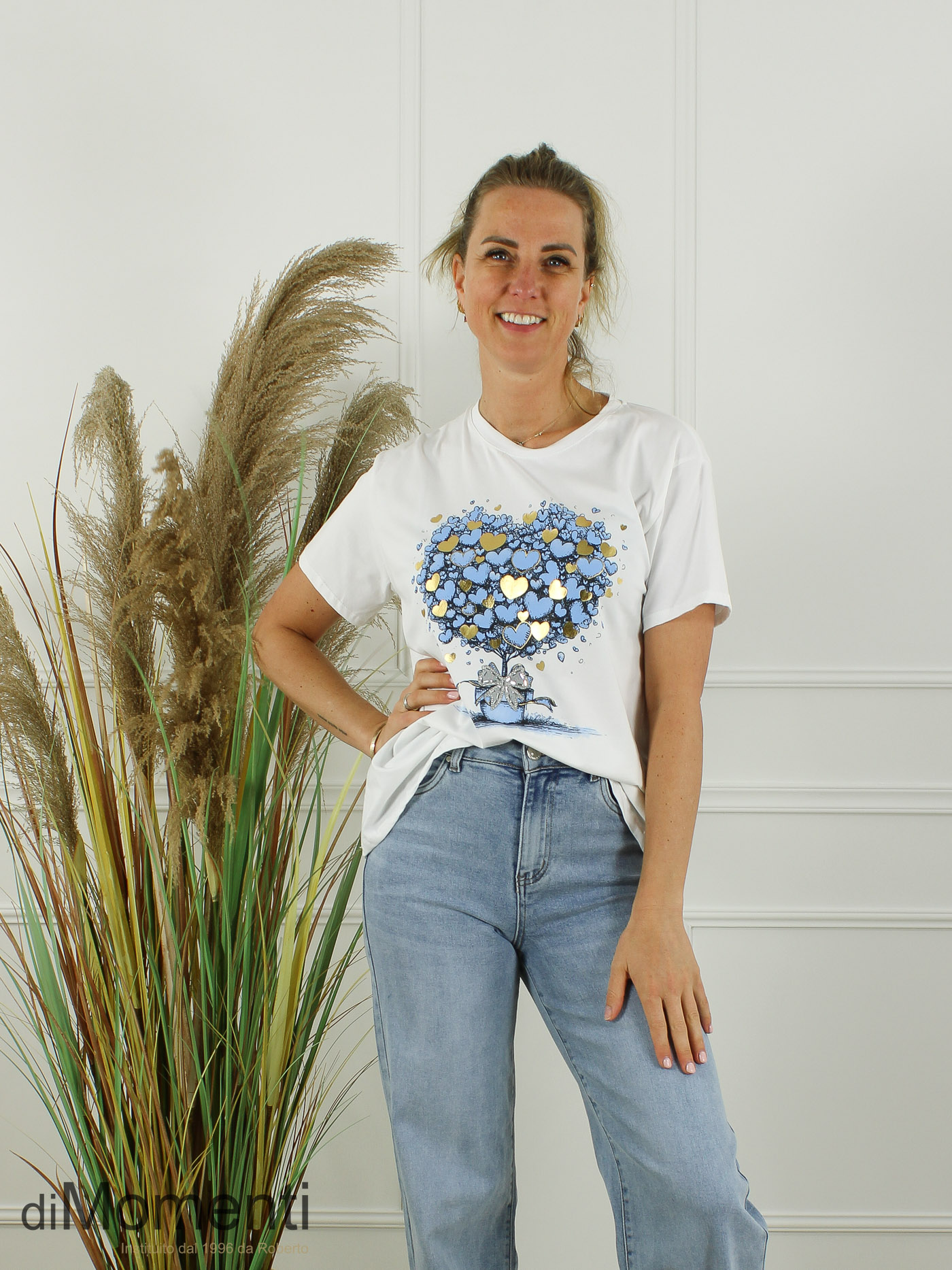 Onze collectie is weer aangevuld met de leukste nieuwe prints! Deze luxe T-shirts zijn afgewerkt met prachtige goudkleurige details voor die extra chique touch. Gemaakt in een hoogwaardige katoen kwaliteit met fijne stretch.