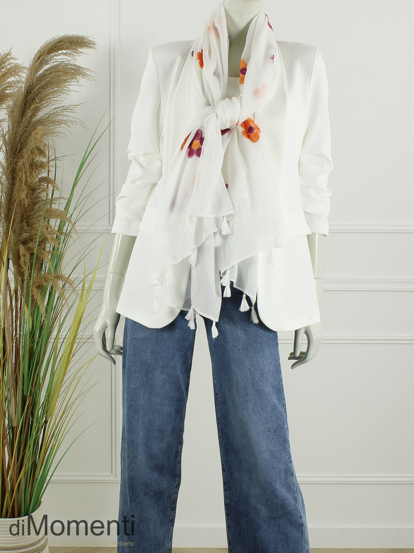 Pure luxe met deze royale, langwerpige sjaal. De zachte mix van viscose en katoen voelt heerlijk soepel aan, terwijl de prachtig geborduurde goudkleurige bloemen zorgen voor een romantische, exclusieve uitstraling. Een tijdloos statement-piece in frisse zomerse kleuren dat elke outfit direct transformeert tot een stijlvol geheel.