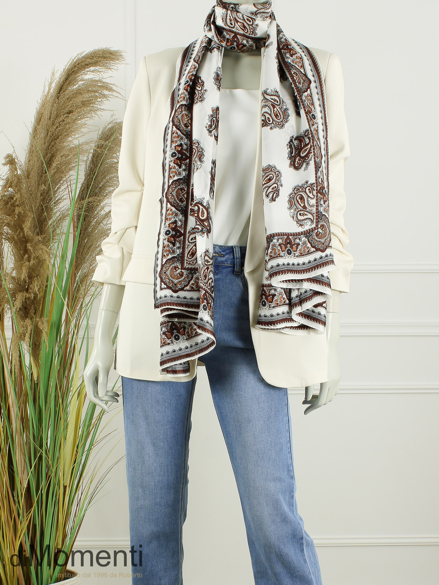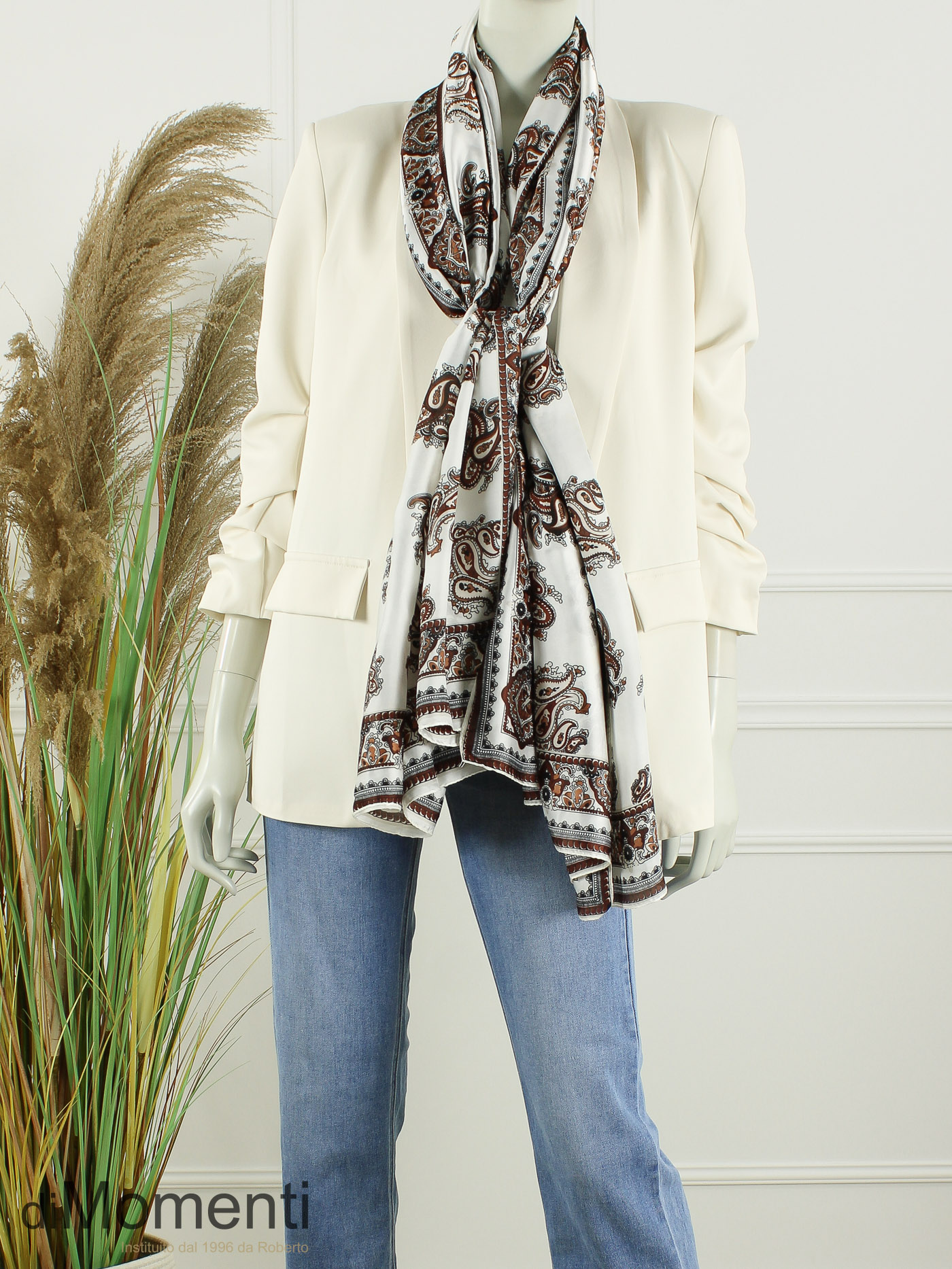 Geef je outfit een luxe finish met deze royale, zijdezachte sjaal. De verfijnde print in classic paisley print straalt pure elegantie uit. Dankzij de soepele, langwerpige vorm kun je deze sjaal eindeloos knopen of nonchalant draperen. Deze classic sjaal is never out of style.