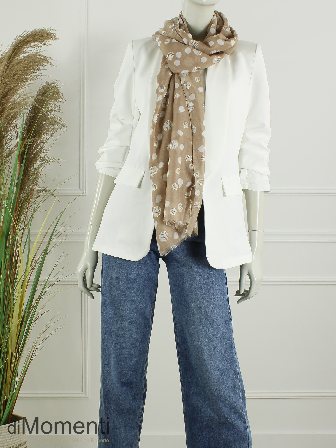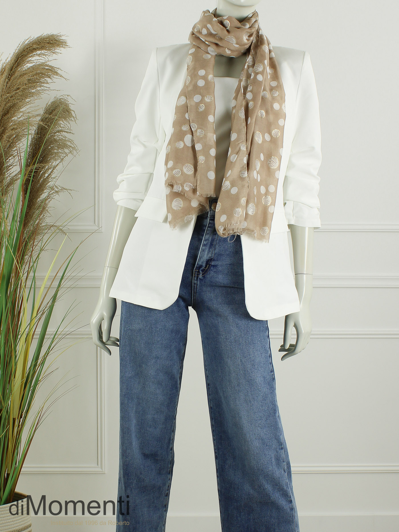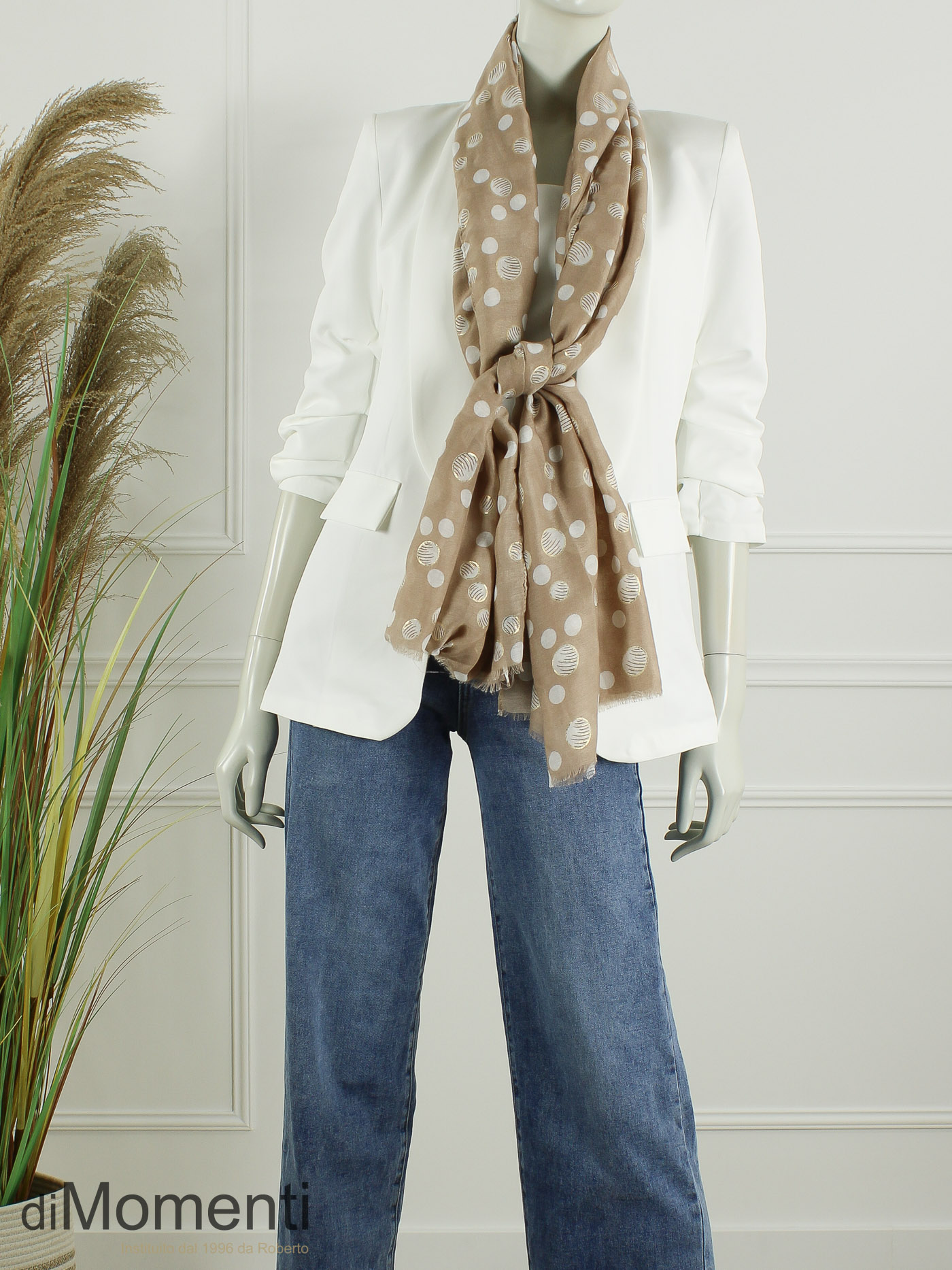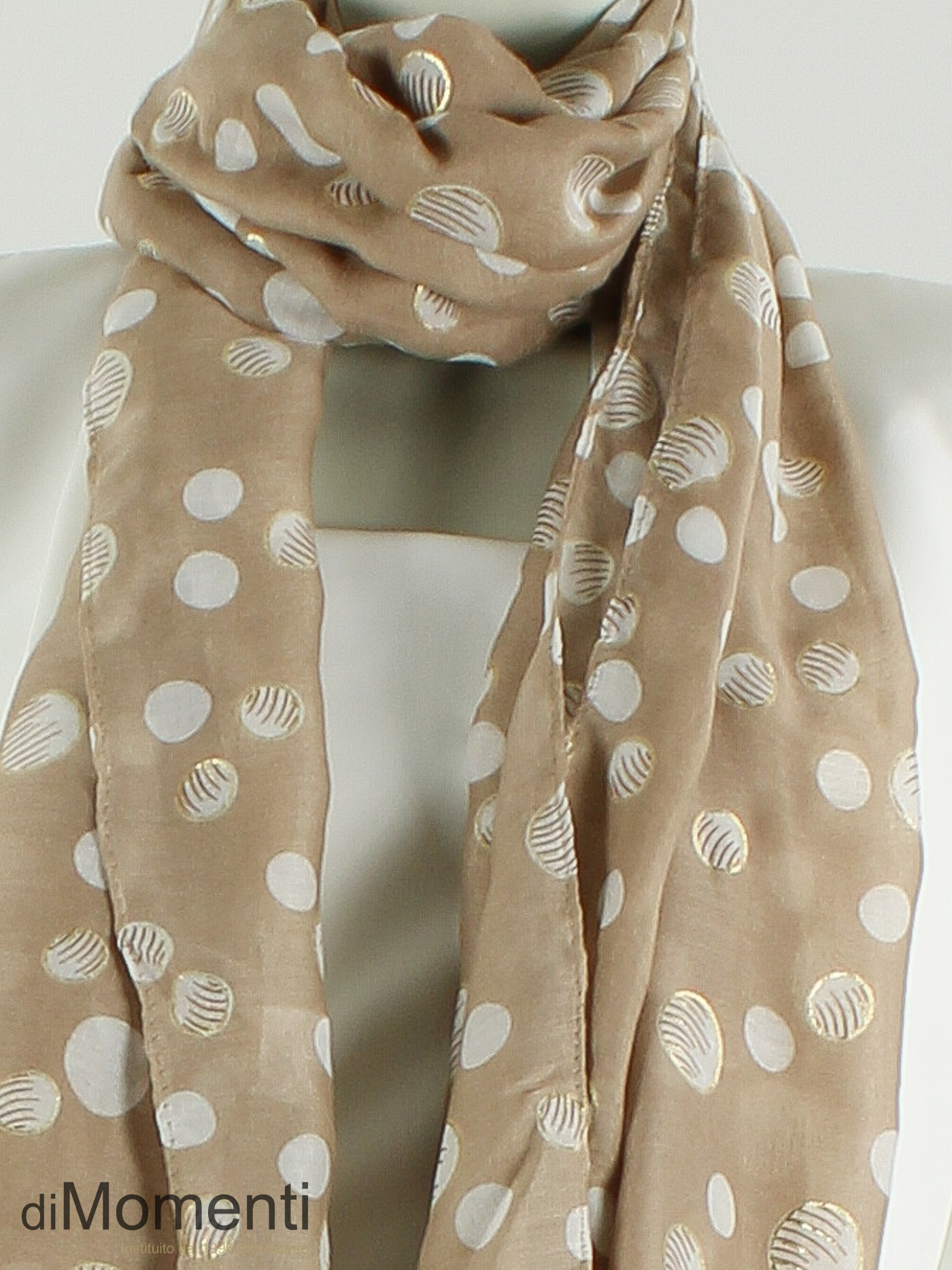 Geef je assortiment kleur met deze royale, langwerpige sjaal. De speelse stippen met een goudkleurig randje zorgen voor een luxe touch. Deze soepele sjaal in frisse voorjaarskleuren is zeer veelzijdig: draag hem losjes of maak er een elegante strik mee.