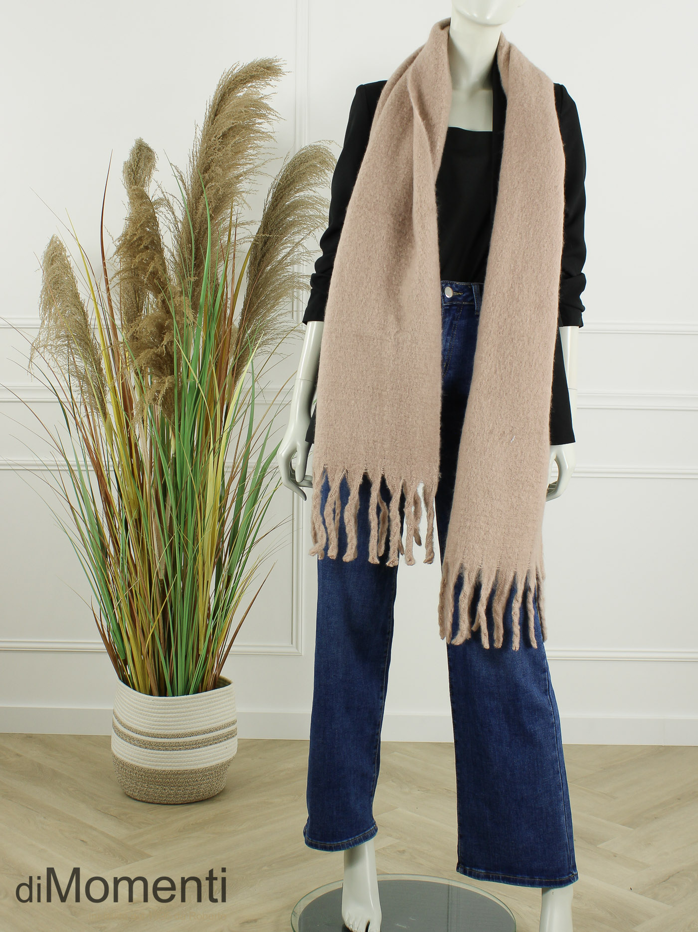 Deze royale, langwerpige sjaal is een heerlijke winterse must-have! De zachte, geruwde kwaliteit voelt extreem comfortabel aan. Afgewerkt met stijlvolle franje en verkrijgbaar in de mooiste winterkleuren. Een perfecte, warme accessoire.