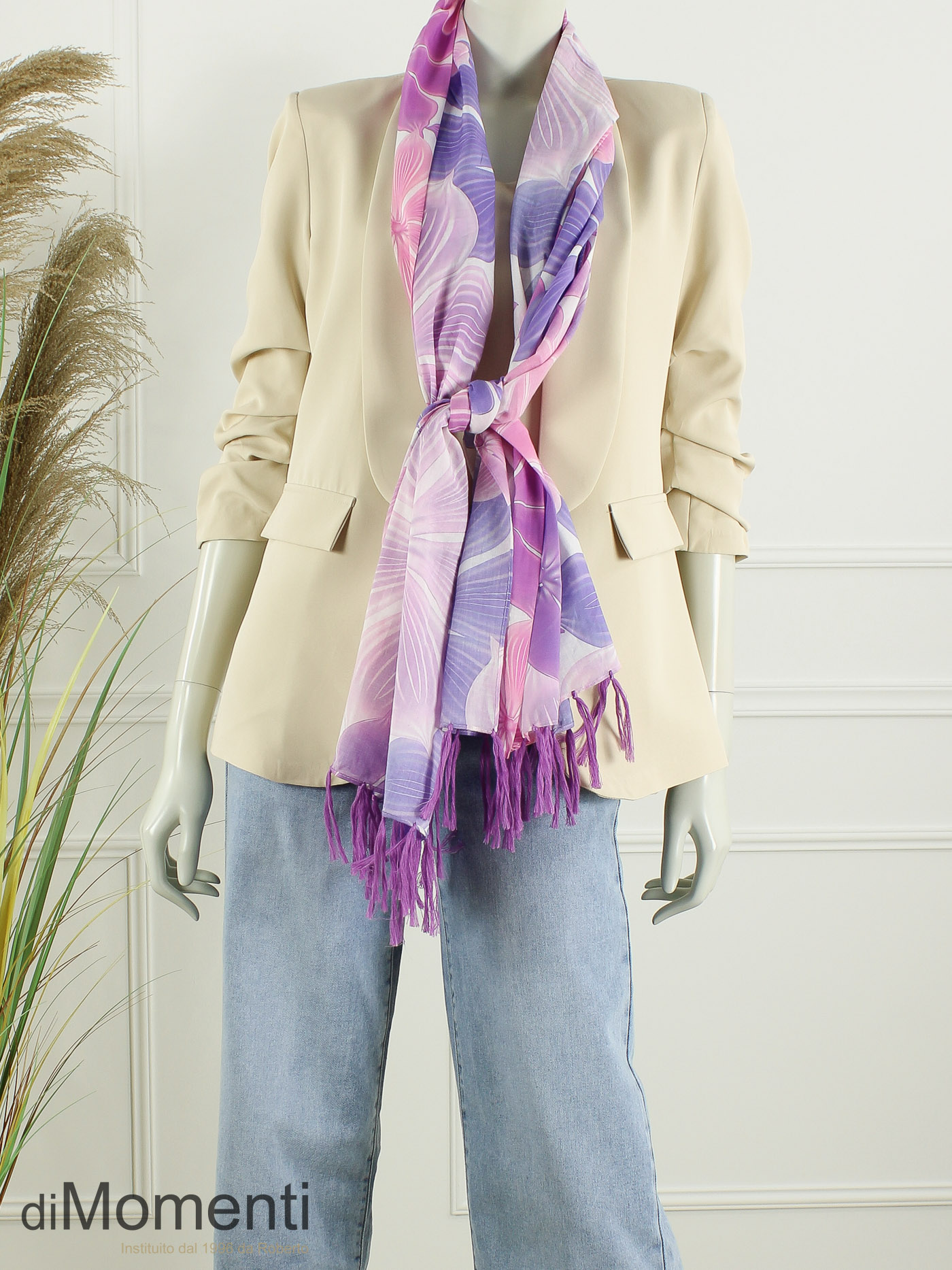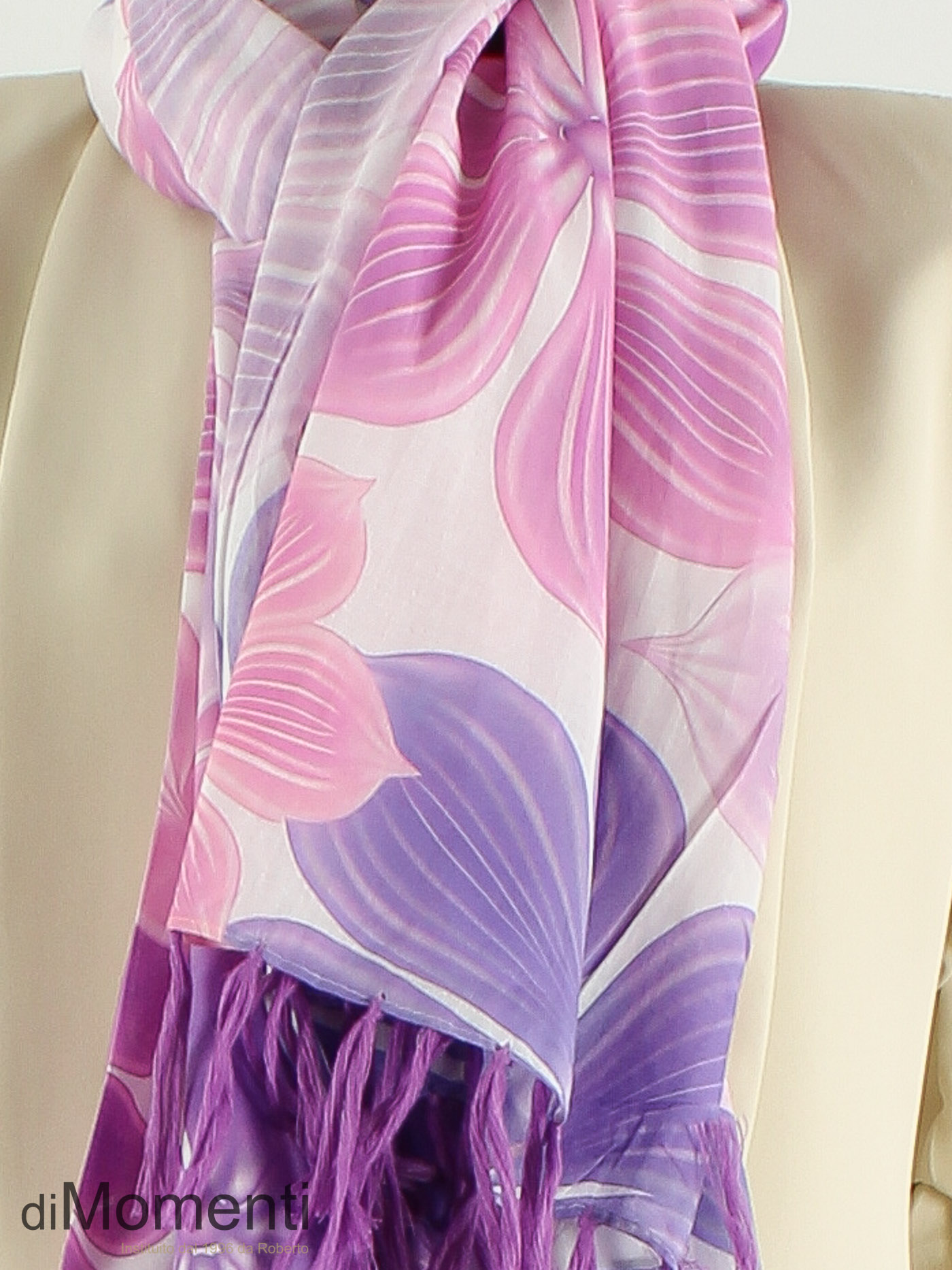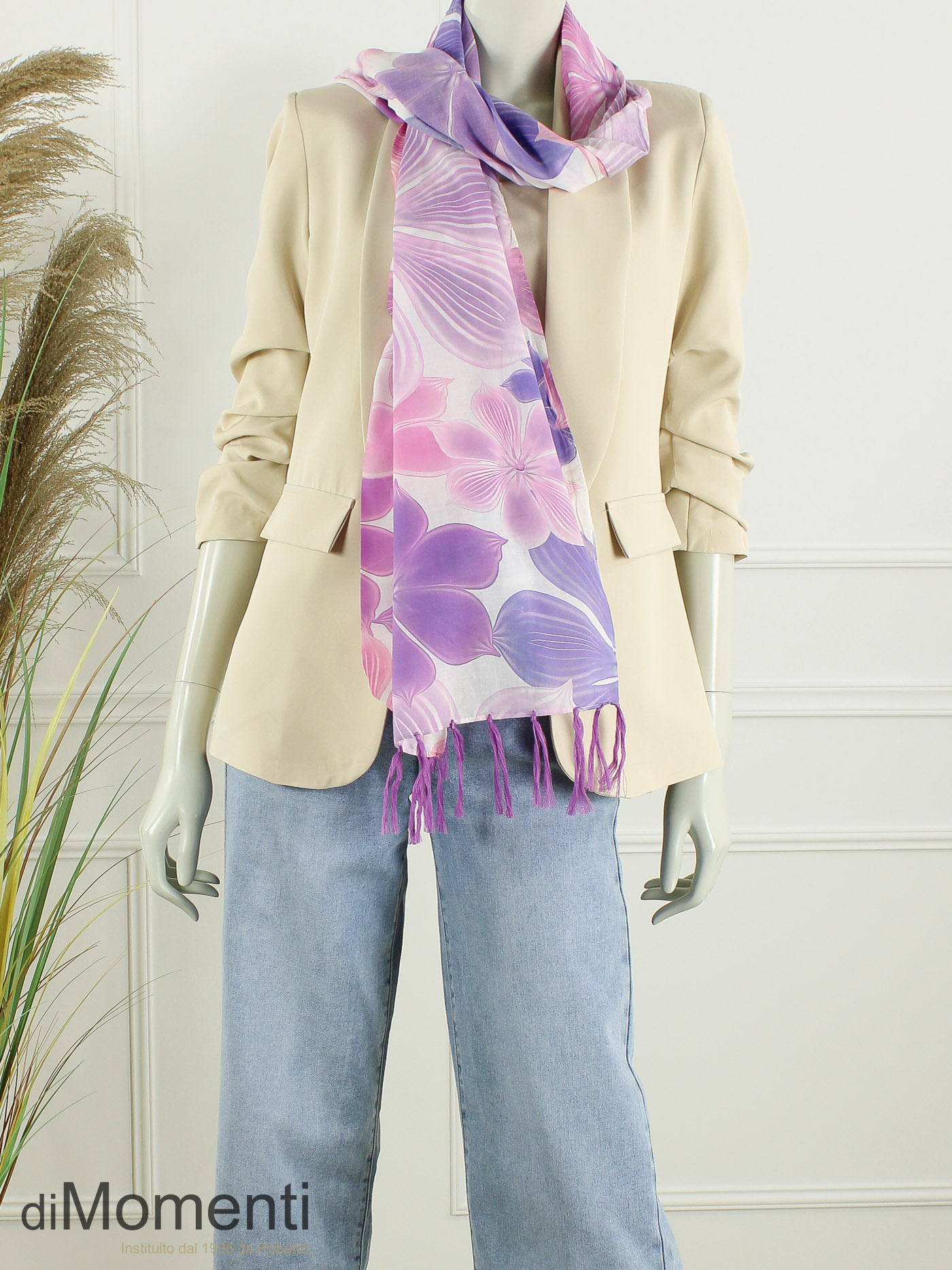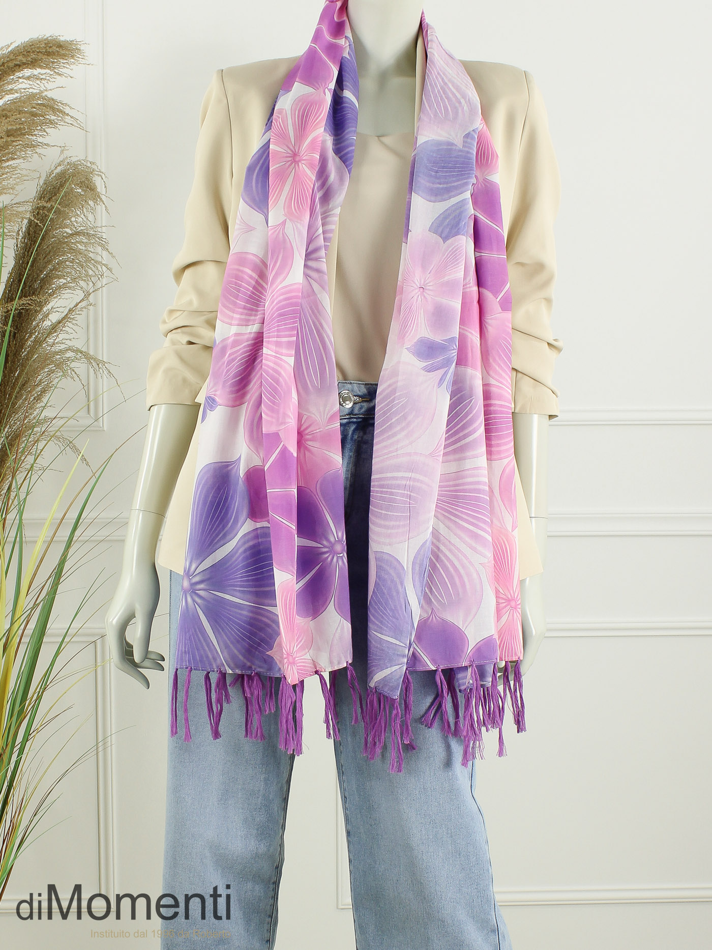Royale langwerpige sjaal in 100% katoen met leuke franje rand aan beide zijde. De ideale accessoire voor klanten die houden van natuurlijke materialen en vrolijke dessins.