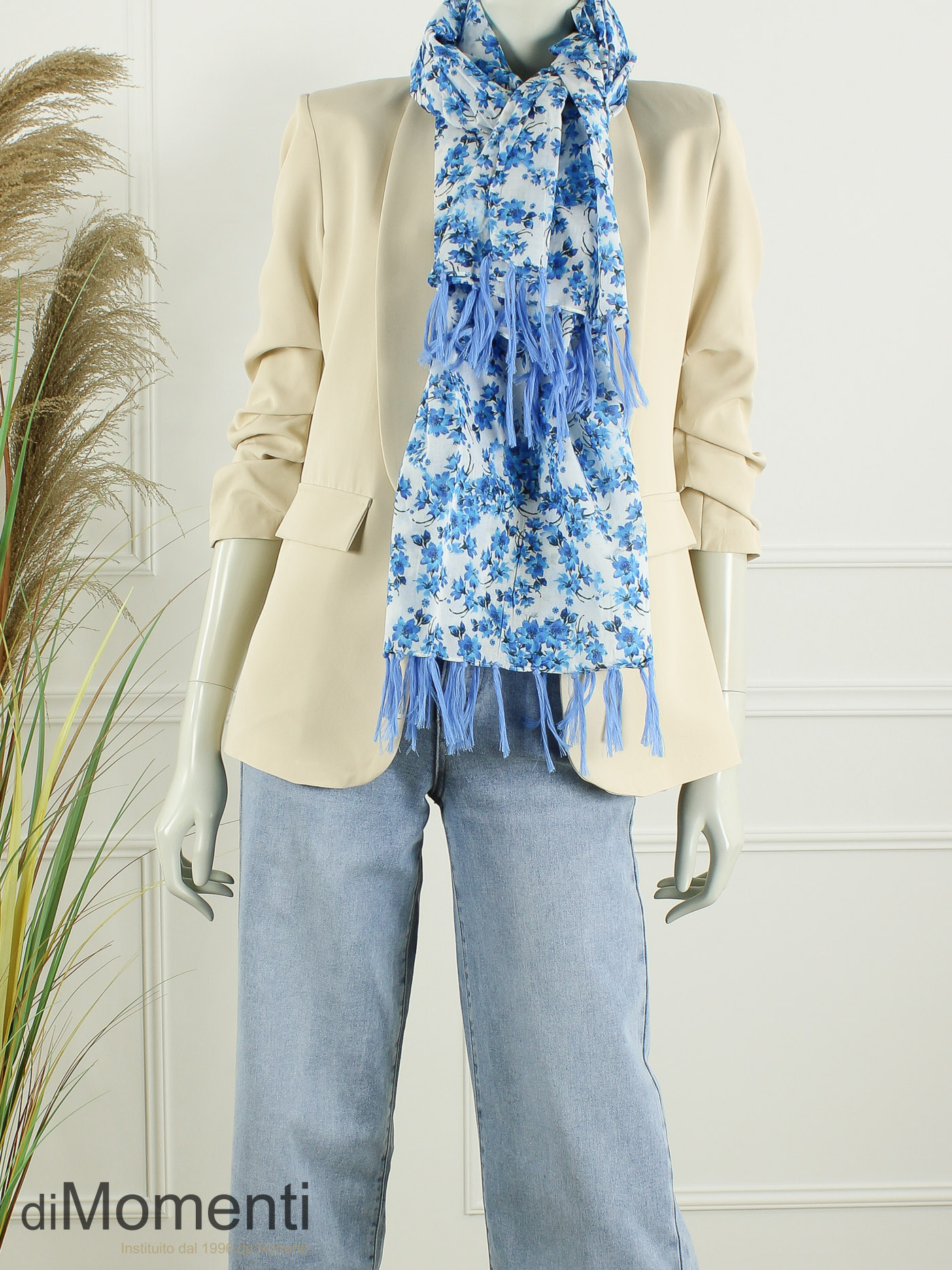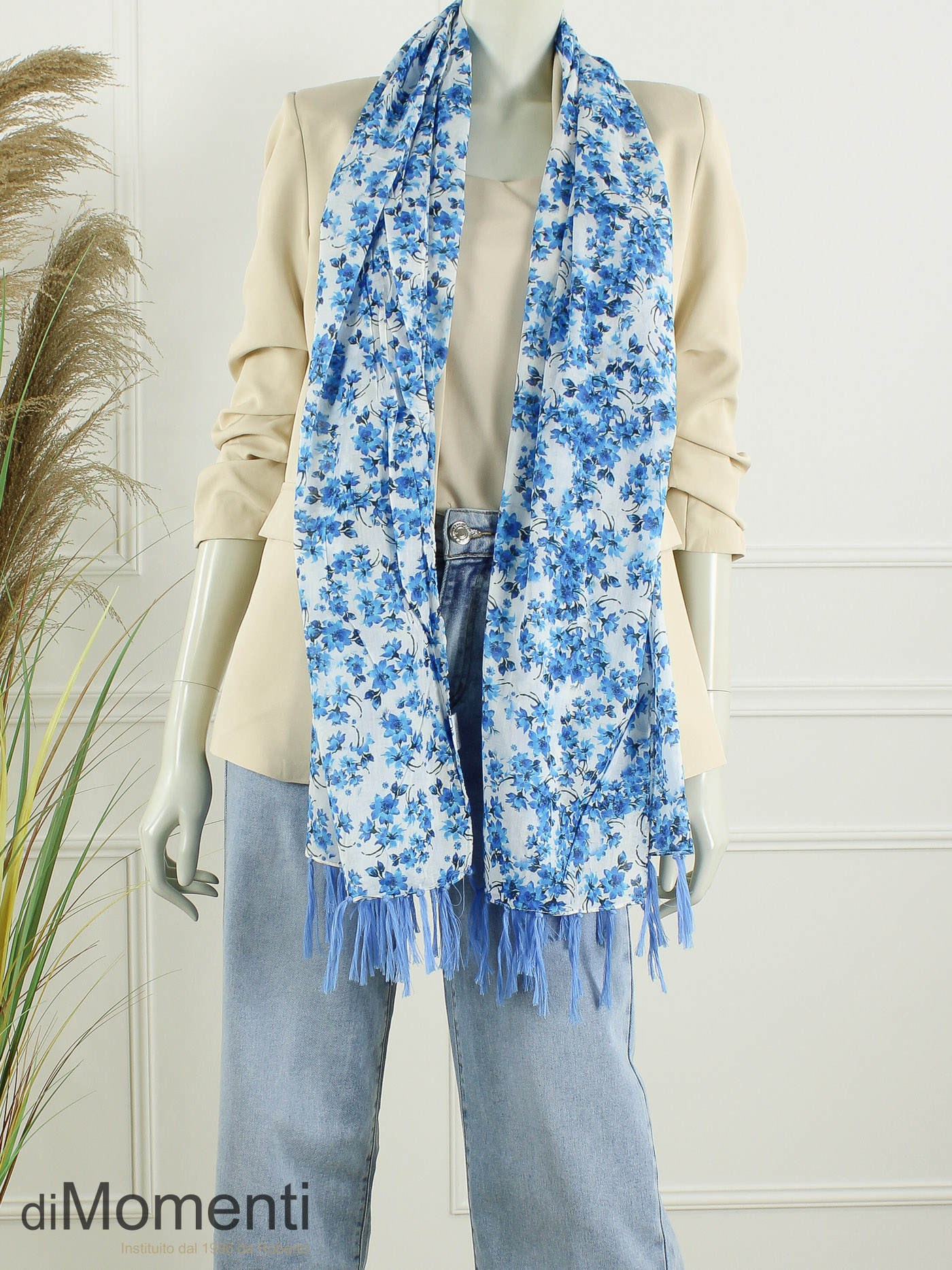 Royale langwerpige sjaal in 100% katoen met leuke franje rand aan beide zijde. De ideale accessoire voor klanten die houden van natuurlijke materialen en vrolijke dessins.