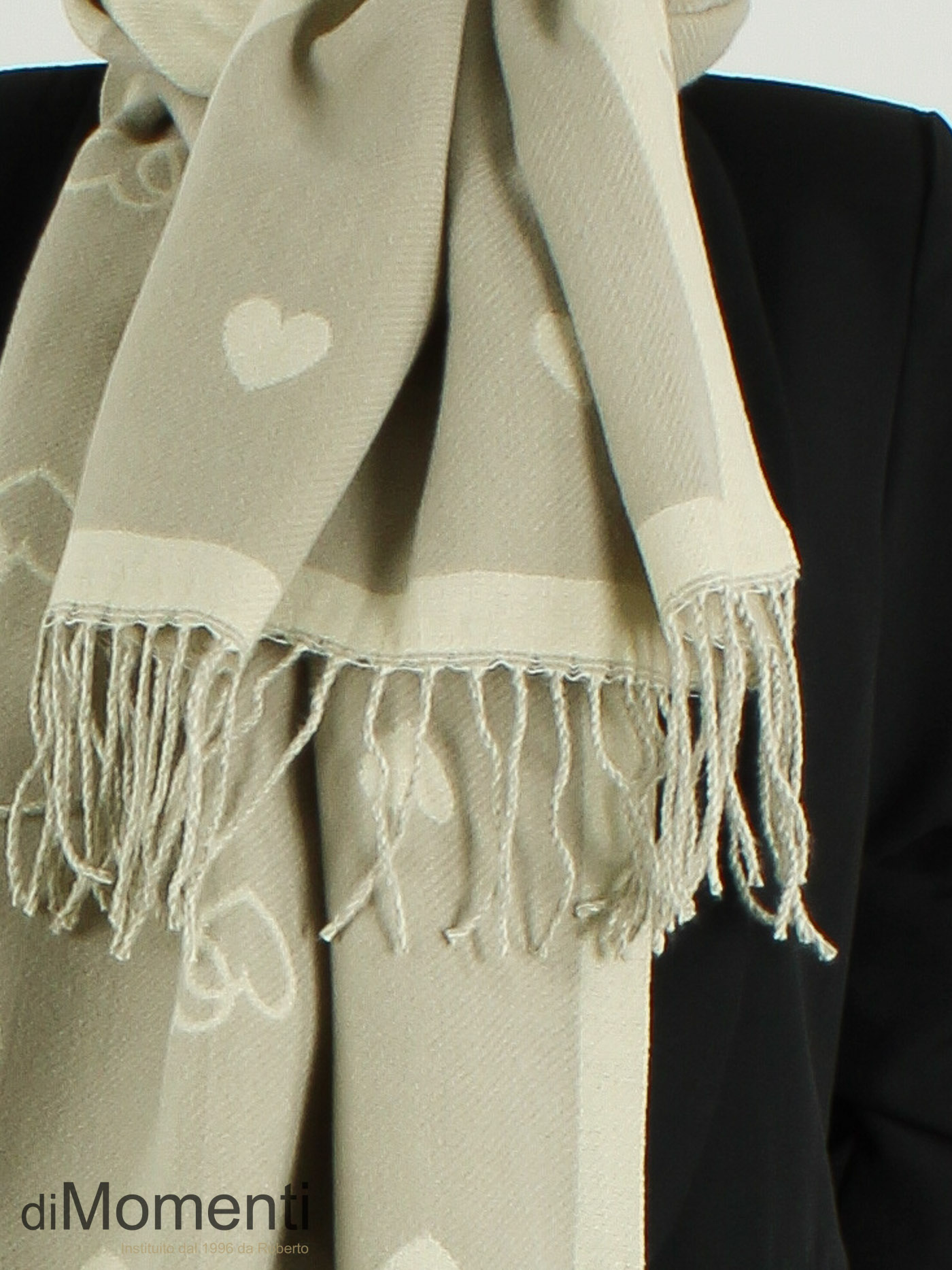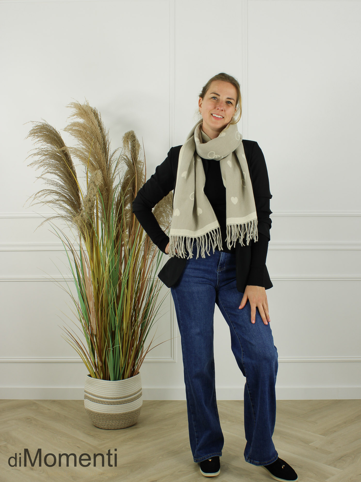 Nieuwe prachtige sjaal met een zachte, iets geruwde afwerking voor extra comfort. Deze stevige sjaal heeft een ingeweven hartjesmotief. Deze sjaal is gemaakt in een fijne mix van materialen met kasjmier en is verkrijgbaar in de nieuwste modekleuren en geeft elke outfit een chique uitstraling.