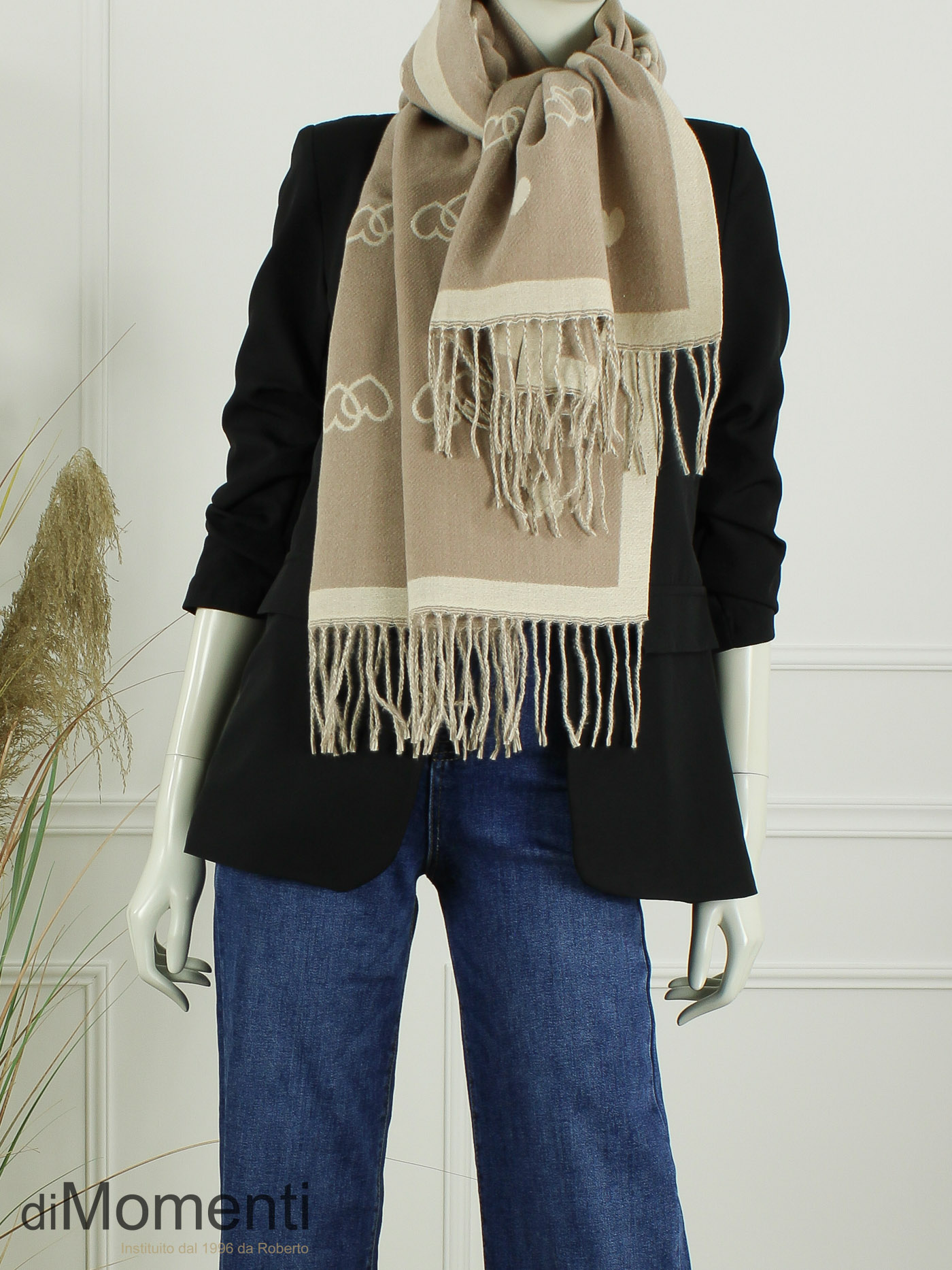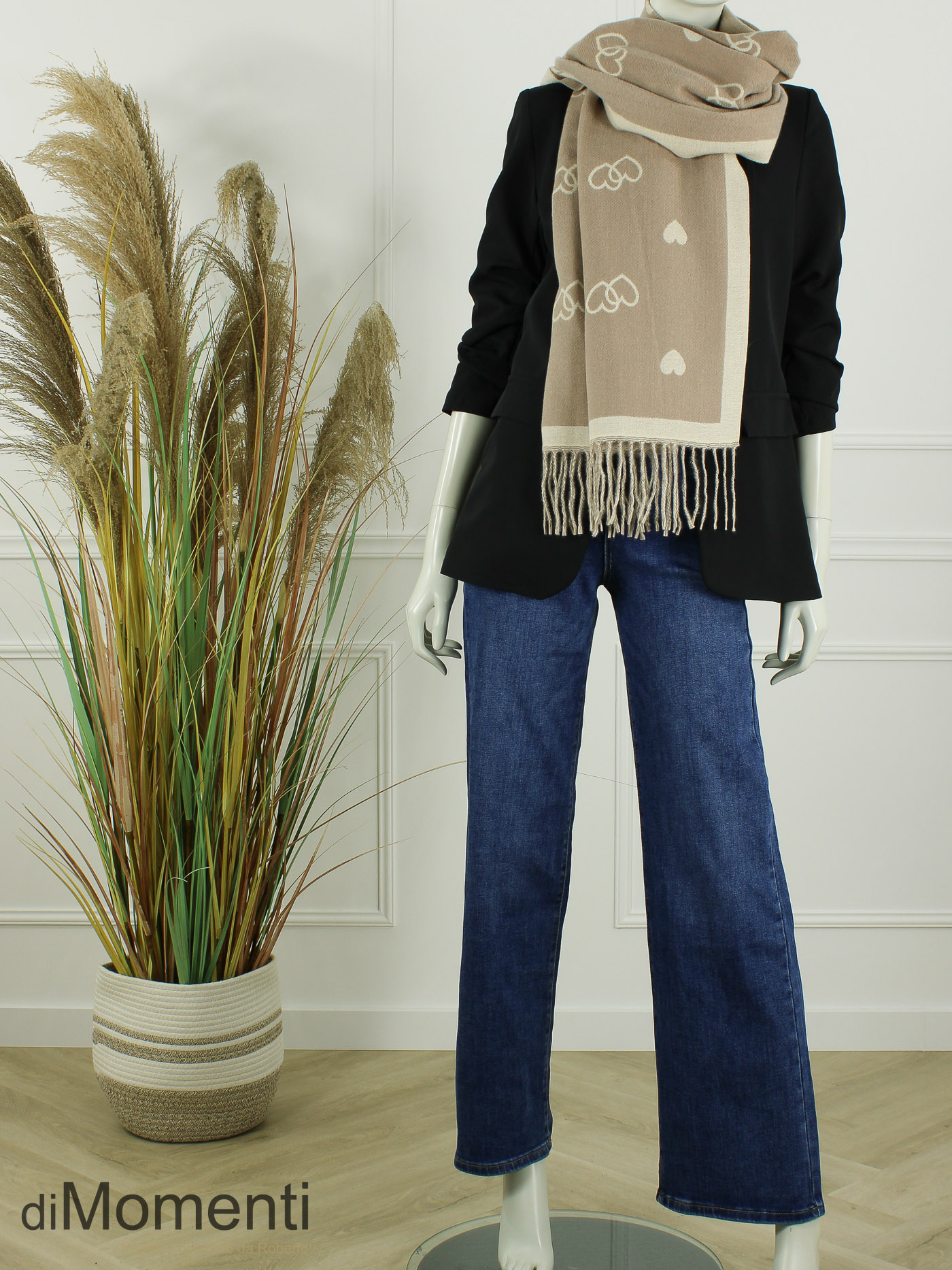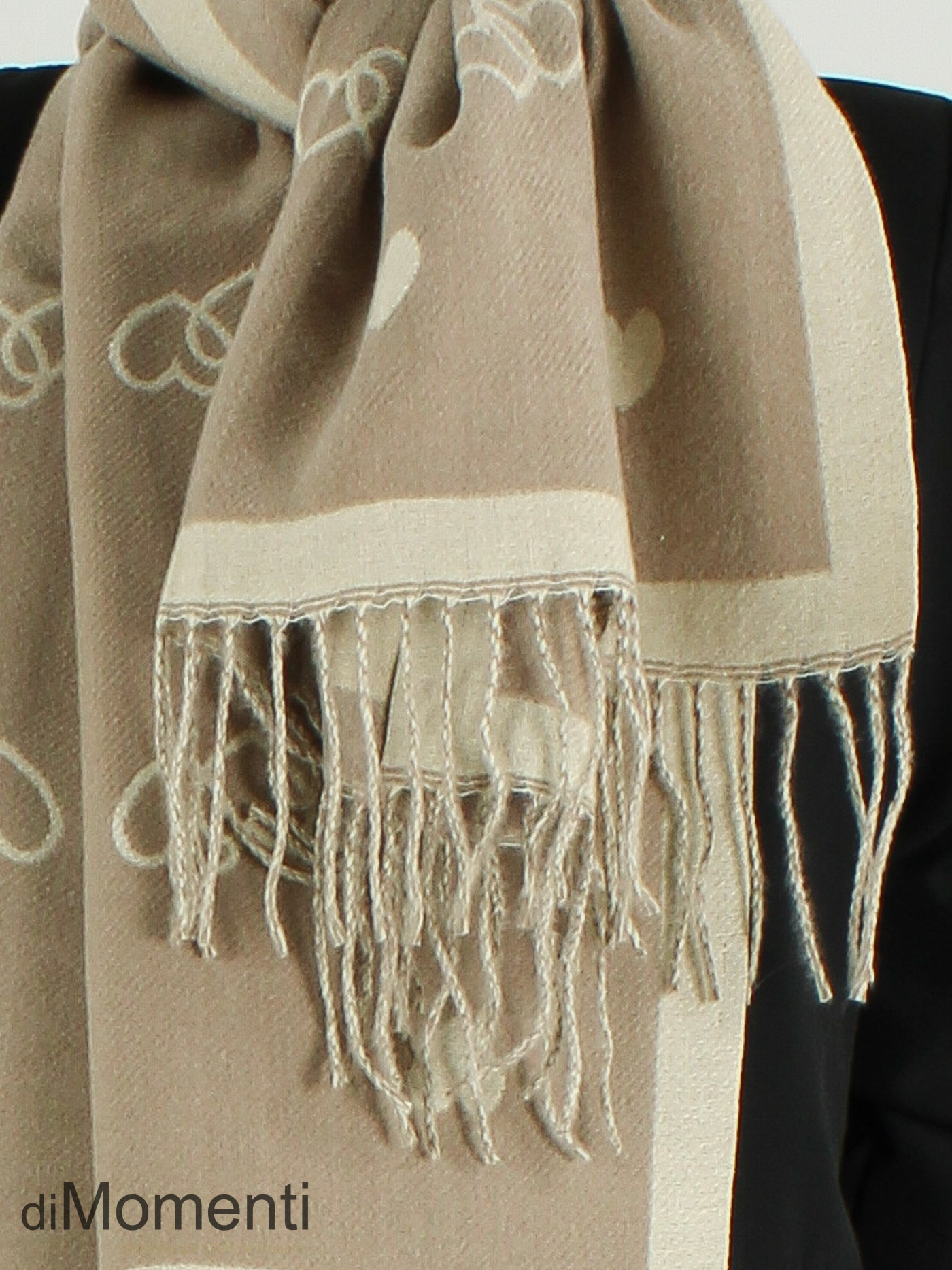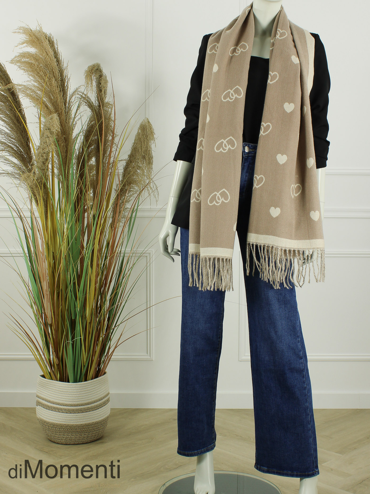Nieuwe prachtige sjaal met een zachte, iets geruwde afwerking voor extra comfort. Deze stevige sjaal heeft een ingeweven hartjesmotief. Deze sjaal is gemaakt in een fijne mix van materialen met kasjmier en is verkrijgbaar in de nieuwste modekleuren en geeft elke outfit een chique uitstraling.