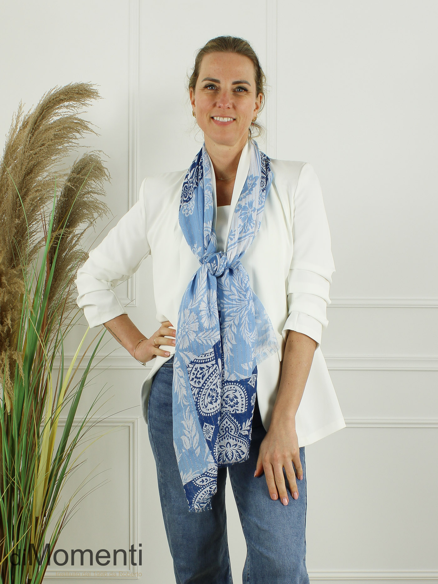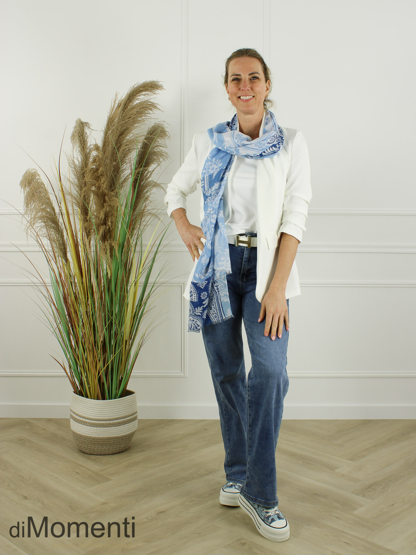 Stralend het voorjaar in met deze royale patchwork sjaal! De subtiele lurex draad geeft een luxe schittering aan de vrolijke, zomerse print. Deze soepele eyecatcher is verkrijgbaar in drie prachtige kleuren en is de perfecte finishing touch voor elke outfit. Een sprankelend item dat je look direct ophaalt!