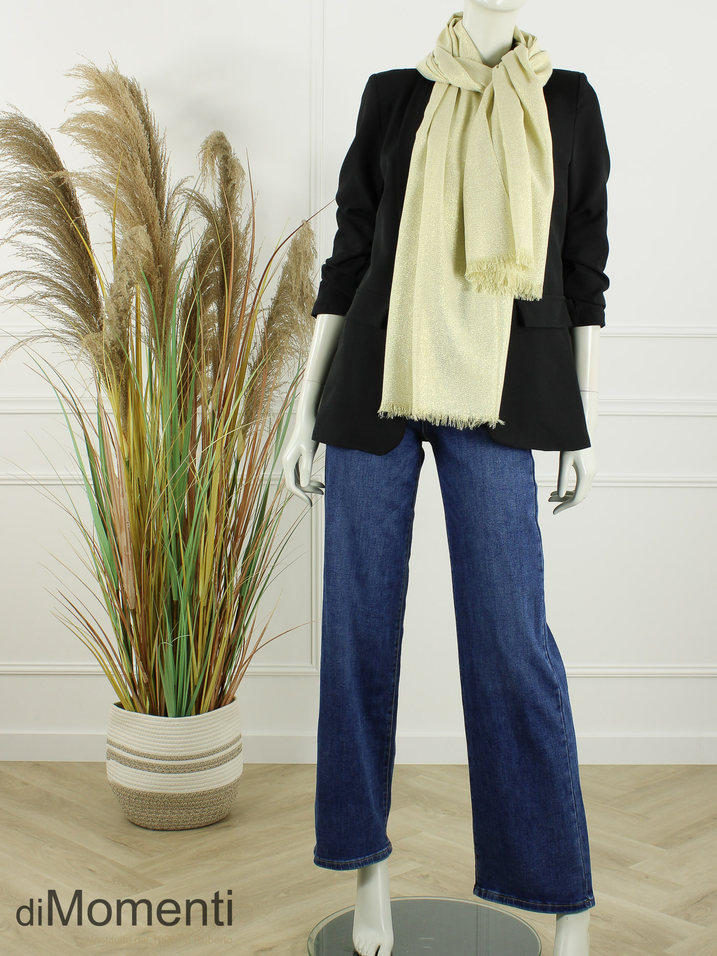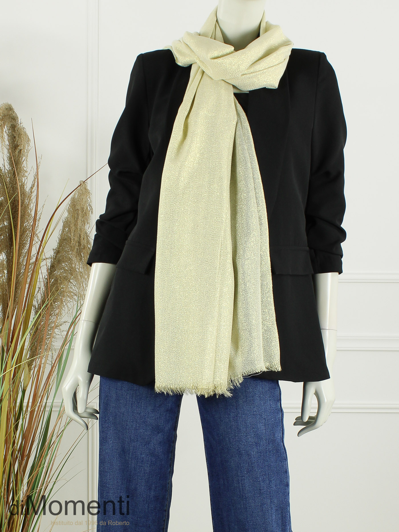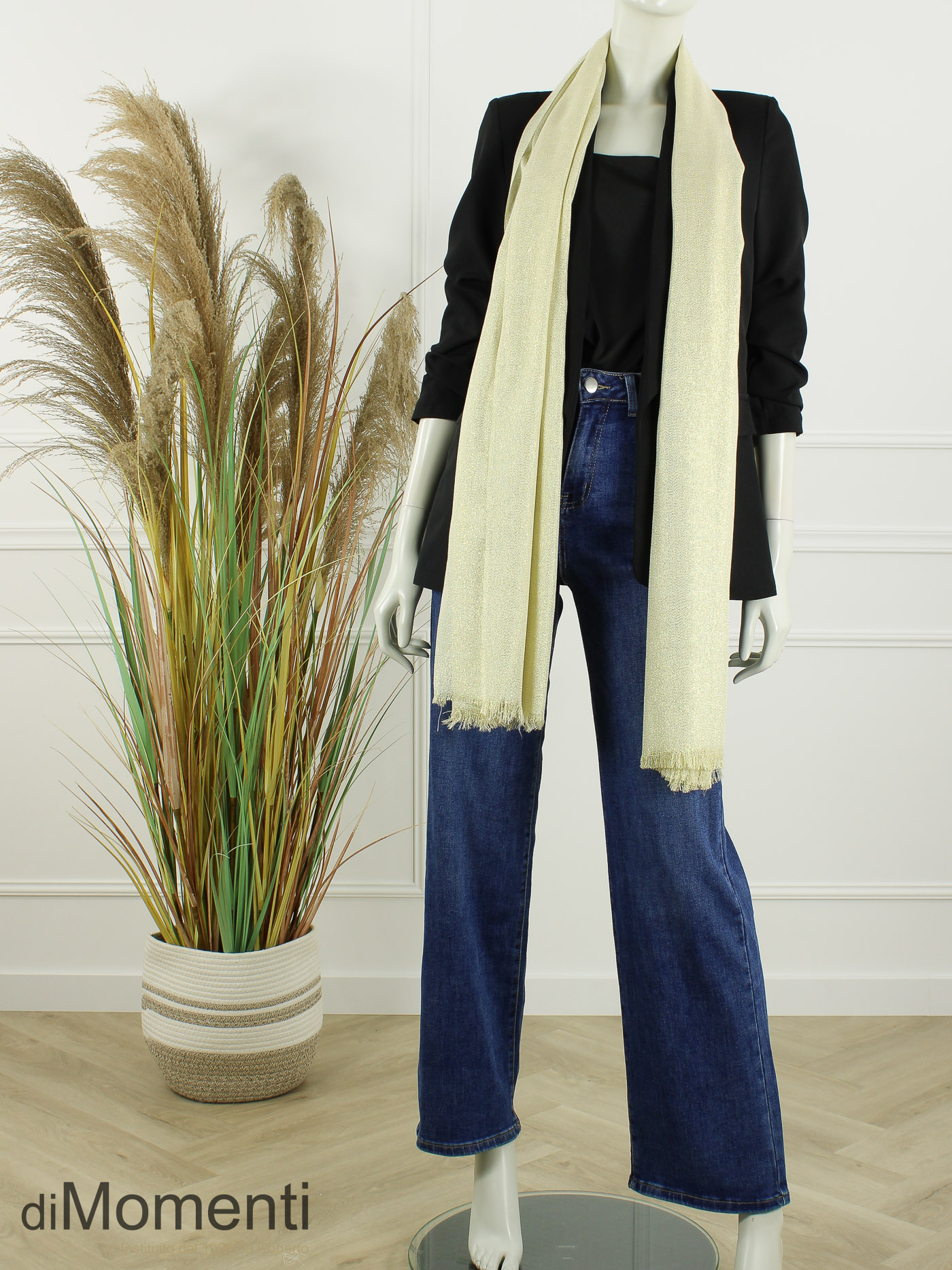 Deze soepele sjaal is het perfecte accessoire voor de feestdagen! De luxe mix van tijdloos zwart en ecru is verrijkt met een subtiele goudkleurige lurex draad. Ideaal om elke stijlvolle outfit een feestelijke glans te geven.