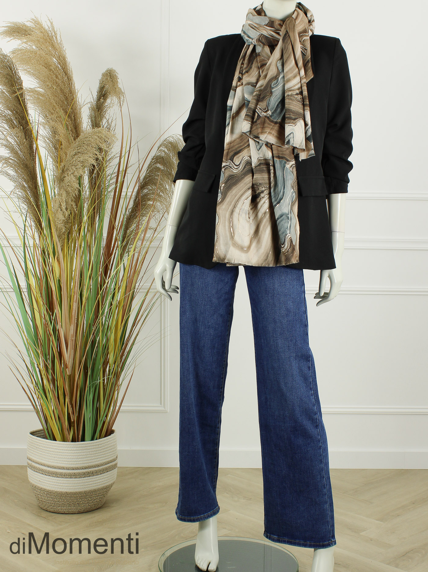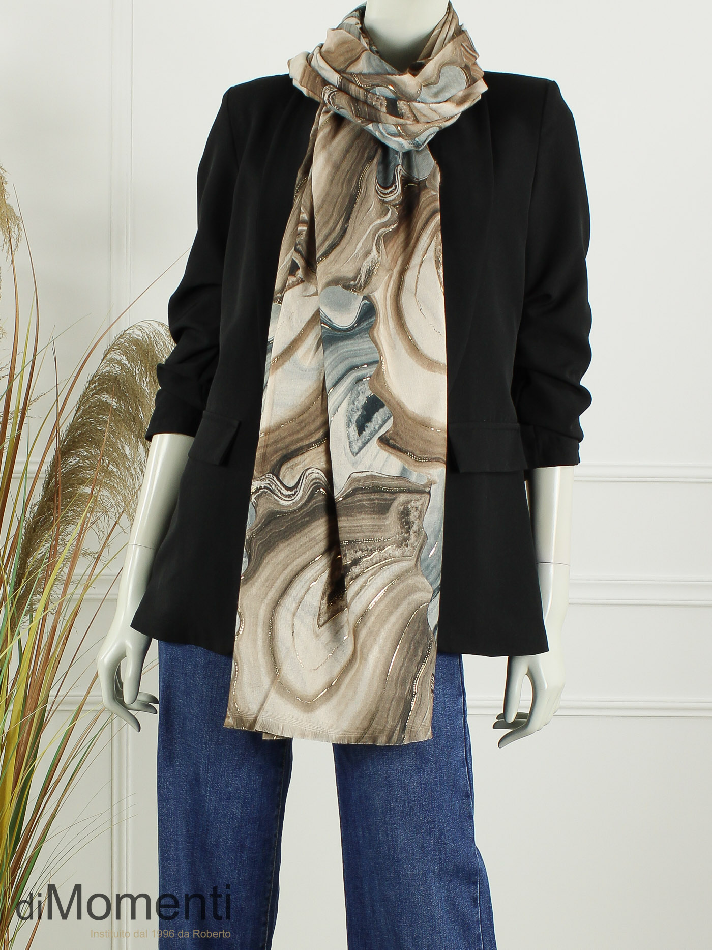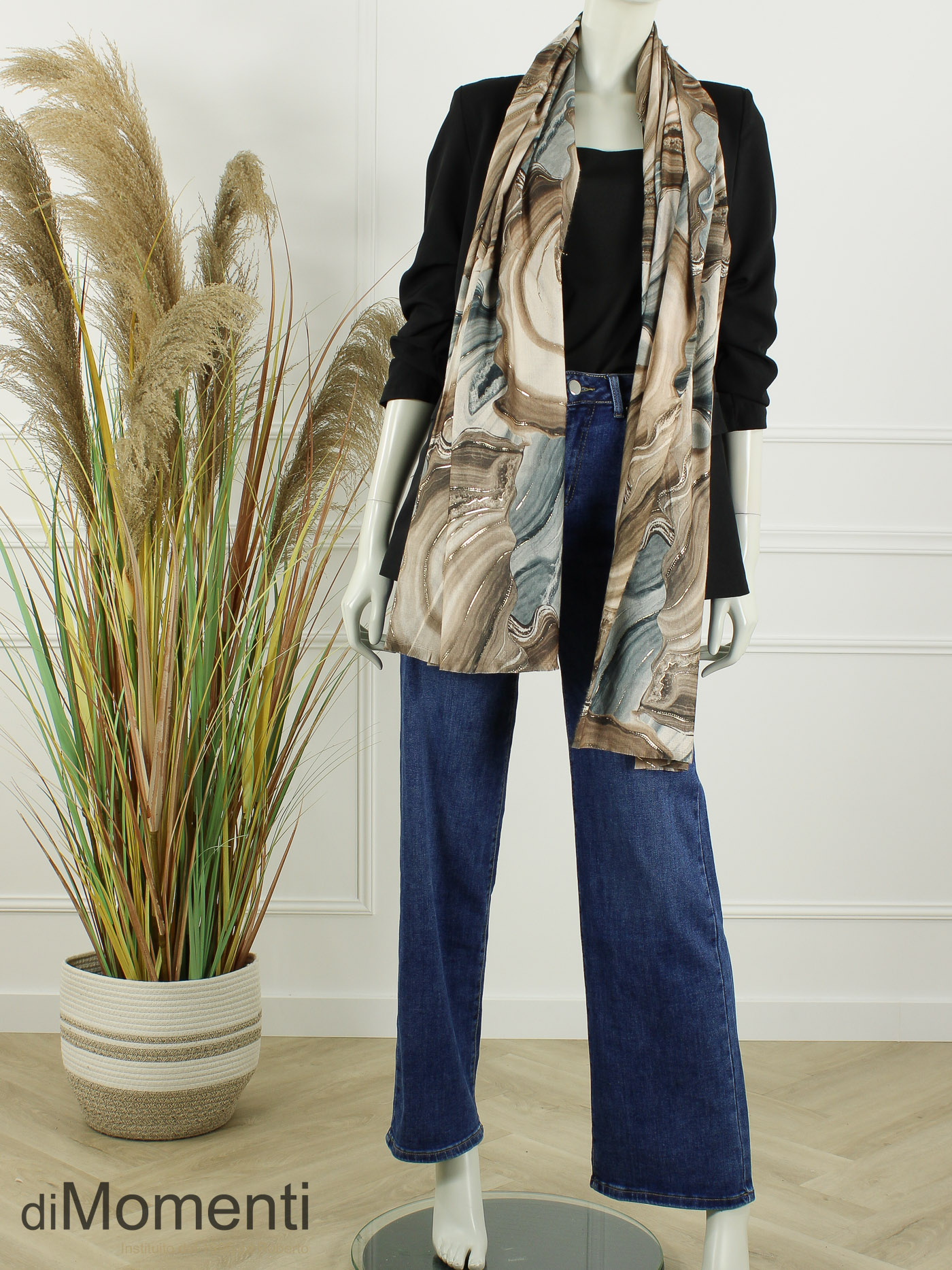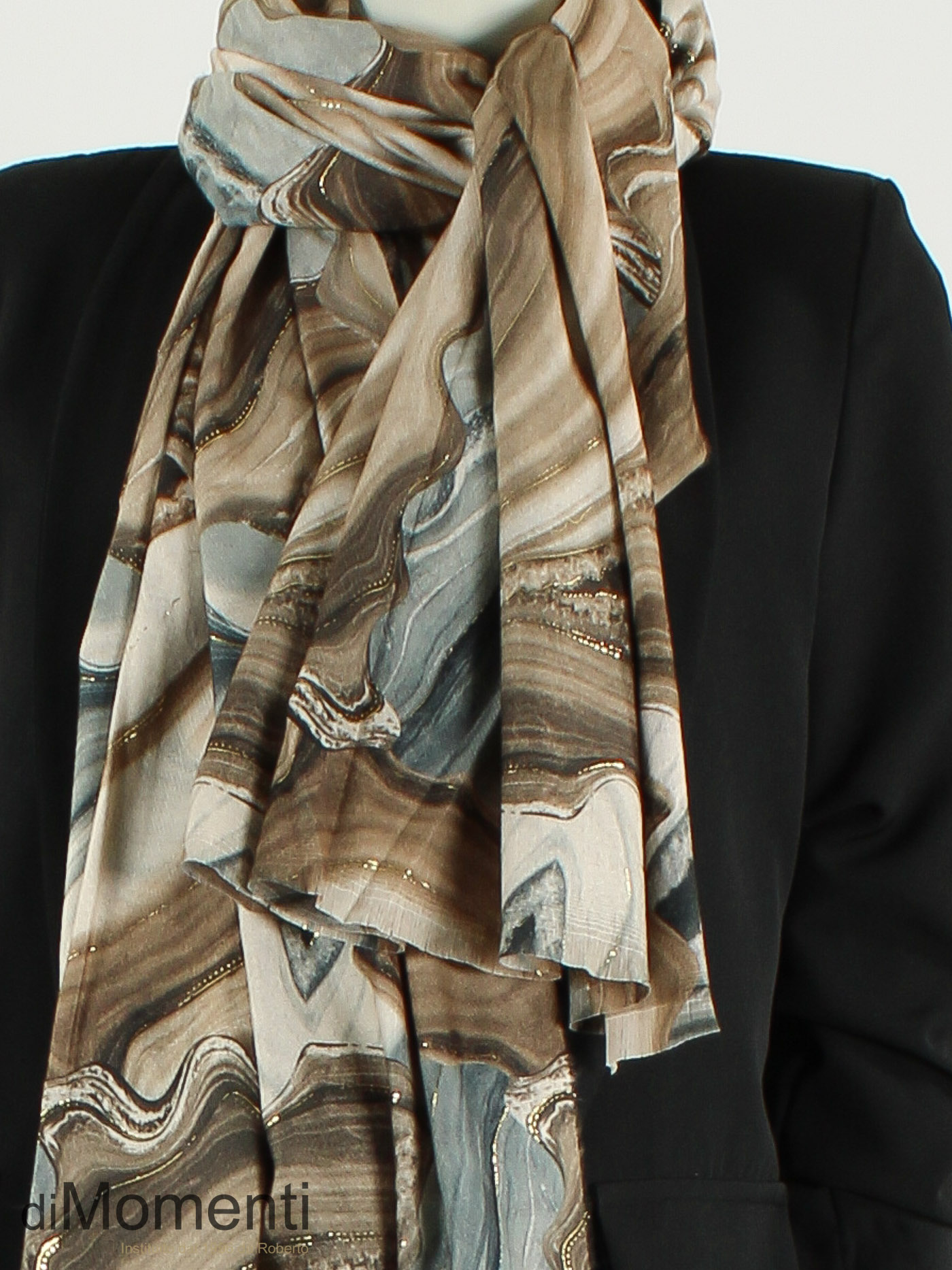 Deze royale, langwerpige sjaal is heerlijk warm en comfy! De iets geruwde kwaliteit heeft een mooie print, subtiel verrijkt met een geweven gouden draad voor een luxe glans. Verkrijgbaar in de nieuwste modekleuren. Een stijlvolle en warme accessoire voor uw inkoop!