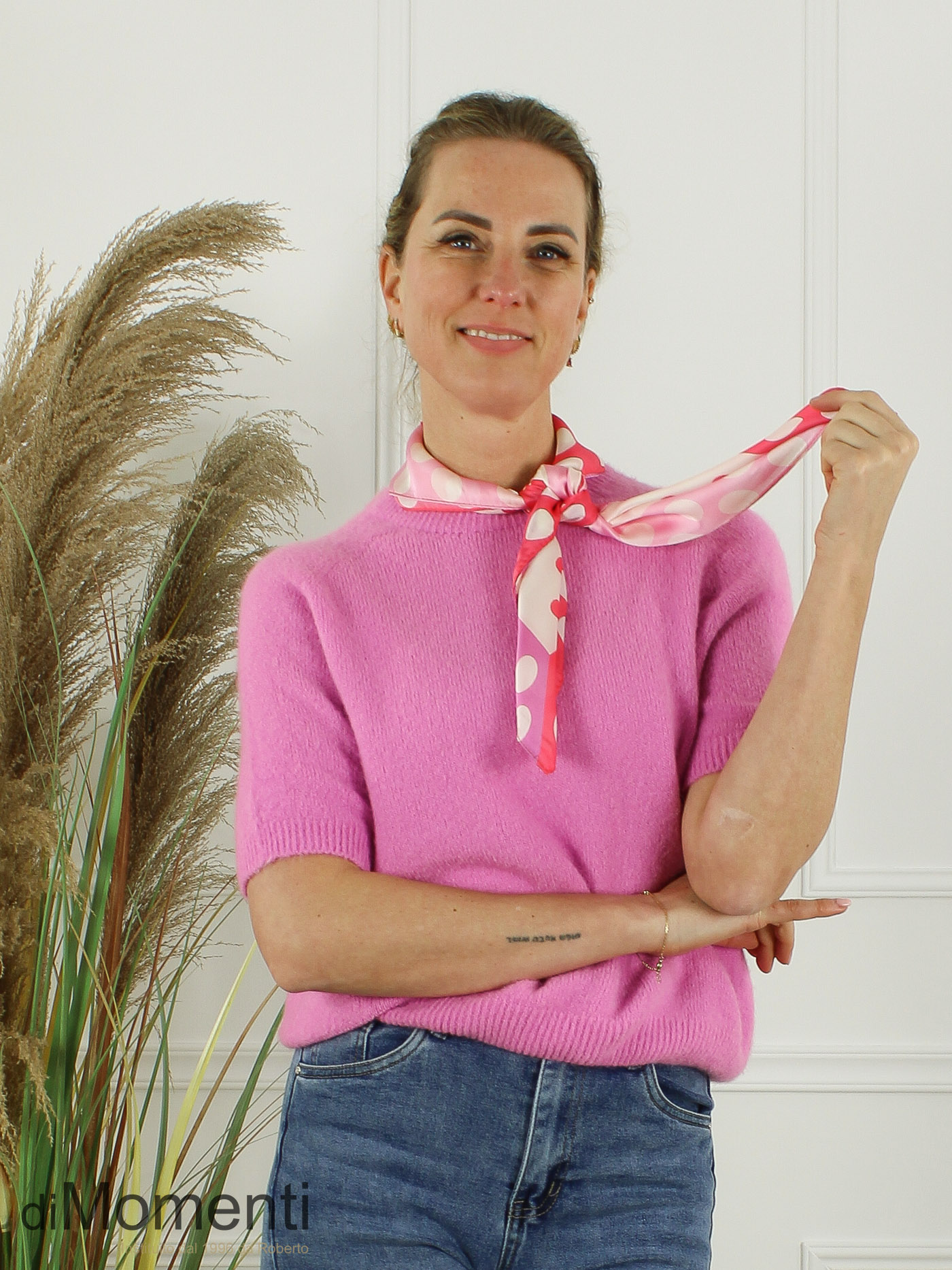 Maak je outfit compleet met deze trendy zijdelook foulard! Met zijn 70×70 cm formaat is dit petit sjaaltje dé musthave van het seizoen. Of je hem nu chic om je hals knoopt, in je haar draagt of aan je tas bevestigt: de prachtige stippel print geeft elke look direct een modieuze upgrade.