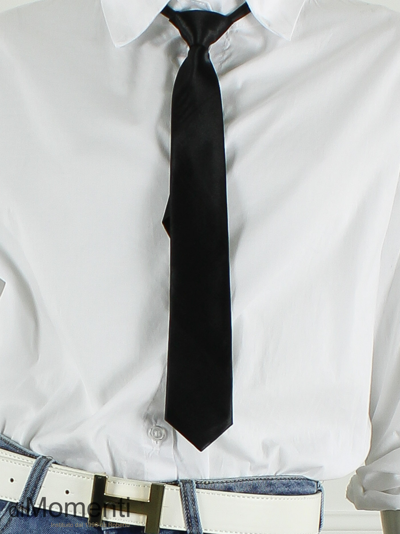 Hét fashion-item van dit seizoen: de stropdas! Deze zijde-look uitvoering geeft elke damesoutfit direct een edgy, high-fashion upgrade. Geen gedoe met knopen; dankzij de handige onzichtbare rits is de das eenvoudig verstelbaar en altijd perfect op maat.