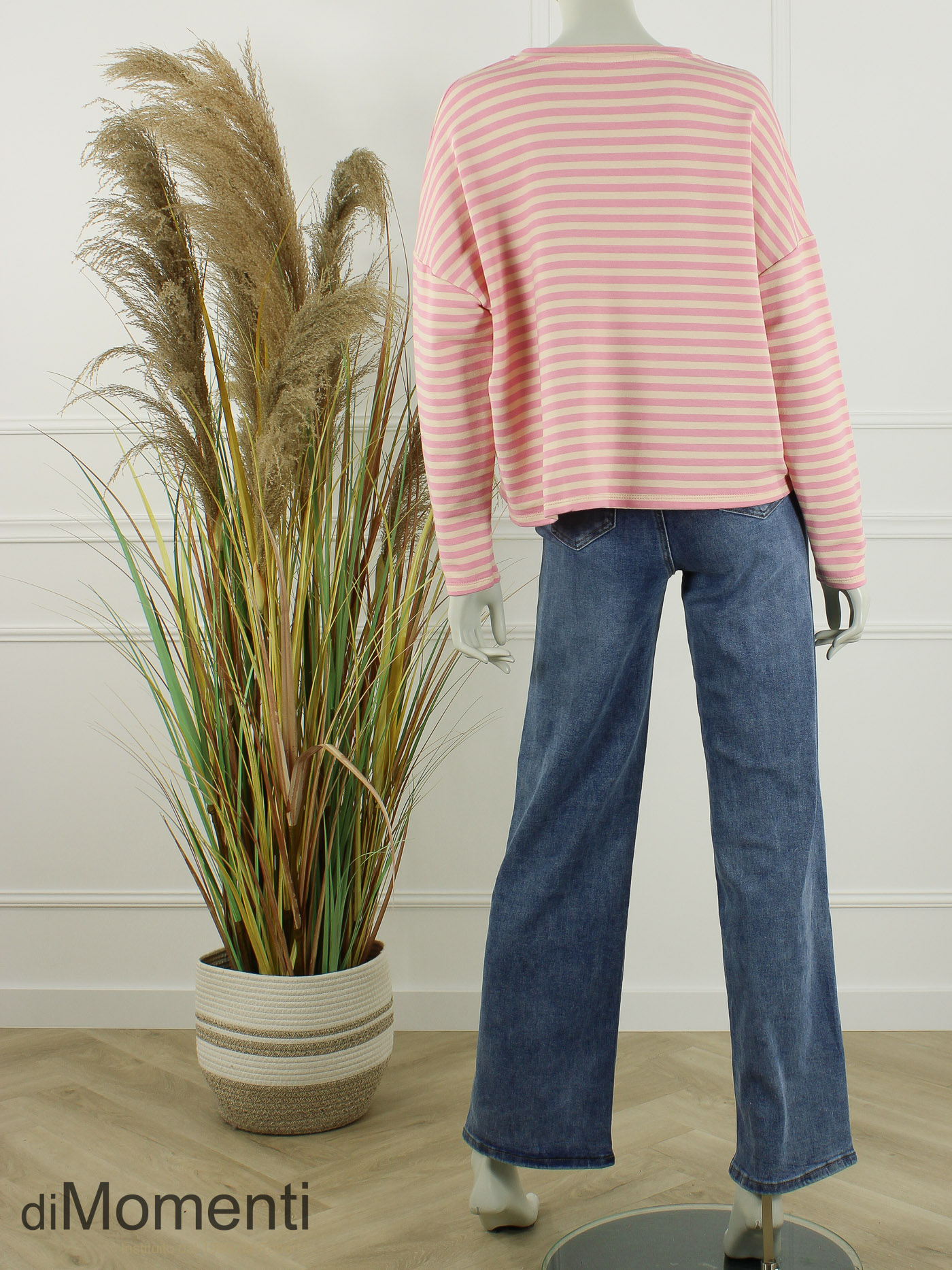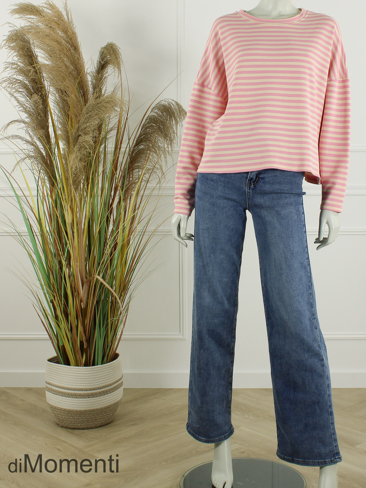 Nieuw mooie luchtige sweater. Dit recht vallende model combineert tijdloos beige met trendy voorjaarsstrepen. Dankzij de samenstelling van 80% katoen biedt de sweater een heerlijk ademend draagcomfort. De perfecte casual musthave voor de zonnige voorjaarsdagen!