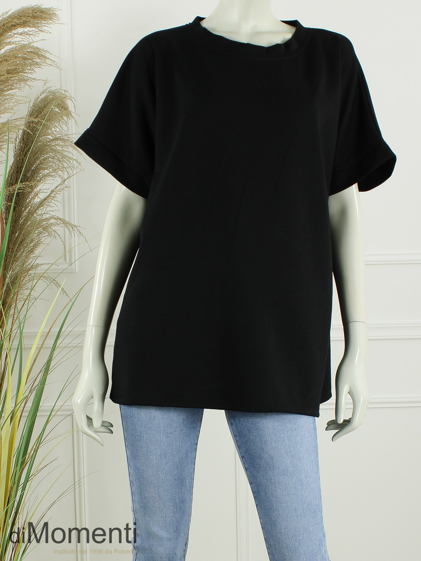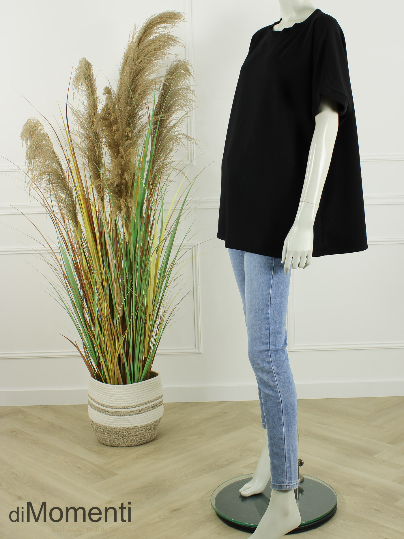 Nieuw is deze stijlvolle, ruimvallende lange sweater. Dankzij de korte aangeknipte mouwen en de soepele jog-kwaliteit heeft dit item de perfecte balans tussen comfort en fashion. Uitgevoerd in diverse, makkelijk te combineren uni-kleuren