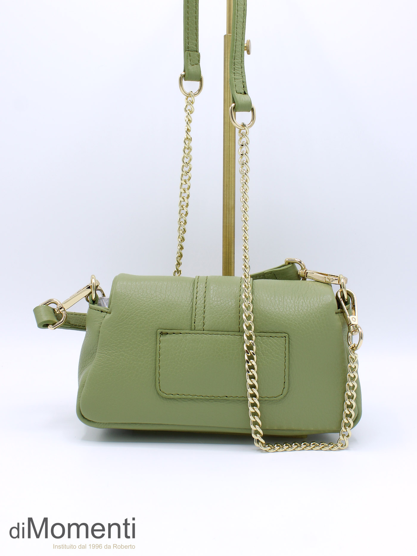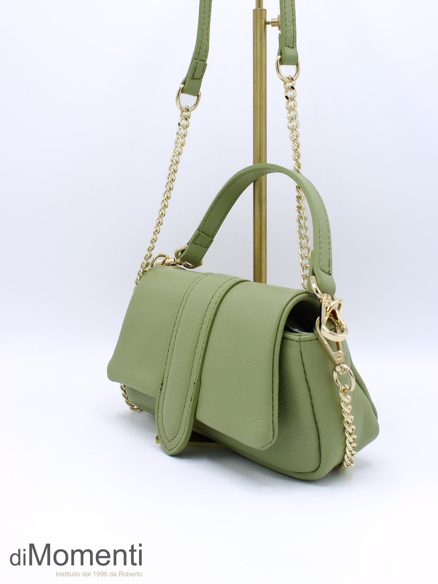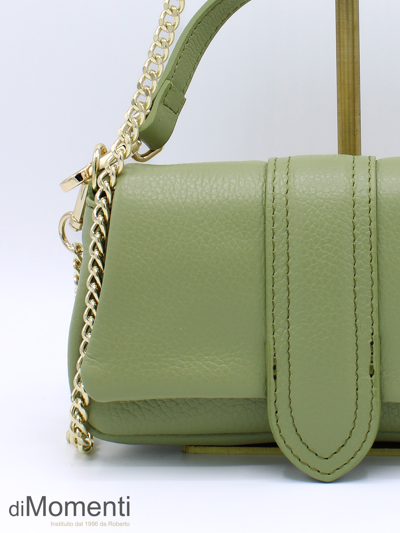 Voeg een vleugje klasse toe met dit chique minimalistische handtasje. Vervaardigd van hoogwaardig echt leer en voorzien van een elegante klepsluiting met verfijnde stiksels. Gebruik de losse goudkleurige ketting om hem stijlvol als schoudertas te dragen. Verkrijgbaar in mooie lente kleuren.