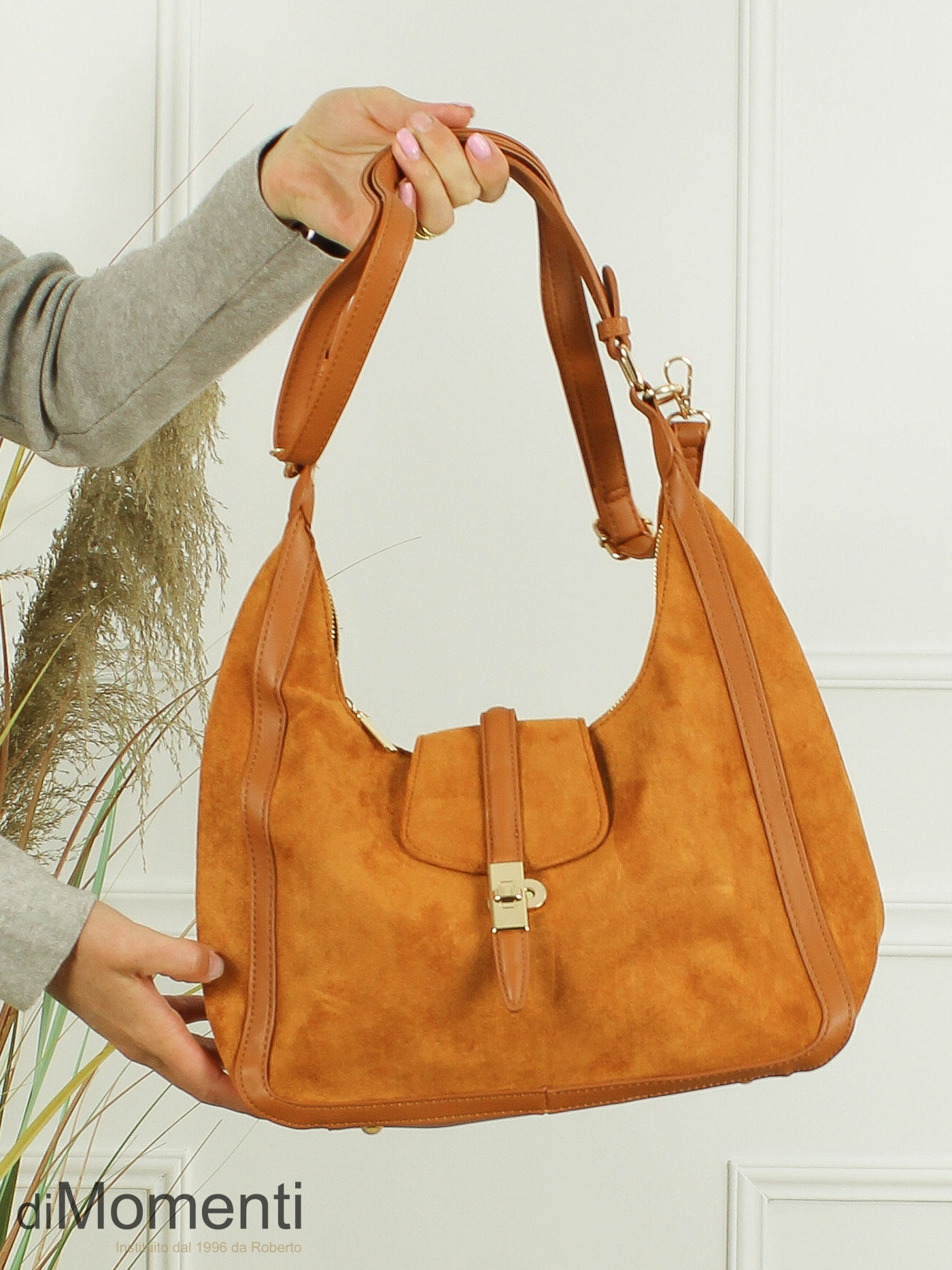 De must-have tas van dit najaar! Deze boemerang-tas in luxe suède-look is perfect voor elke gelegenheid. Met stijlvolle goudkleurige details en een handige, losse schouderriem, is deze tas niet alleen trendy, maar ook praktisch. Verkrijgbaar in de nieuwste najaarskleuren.