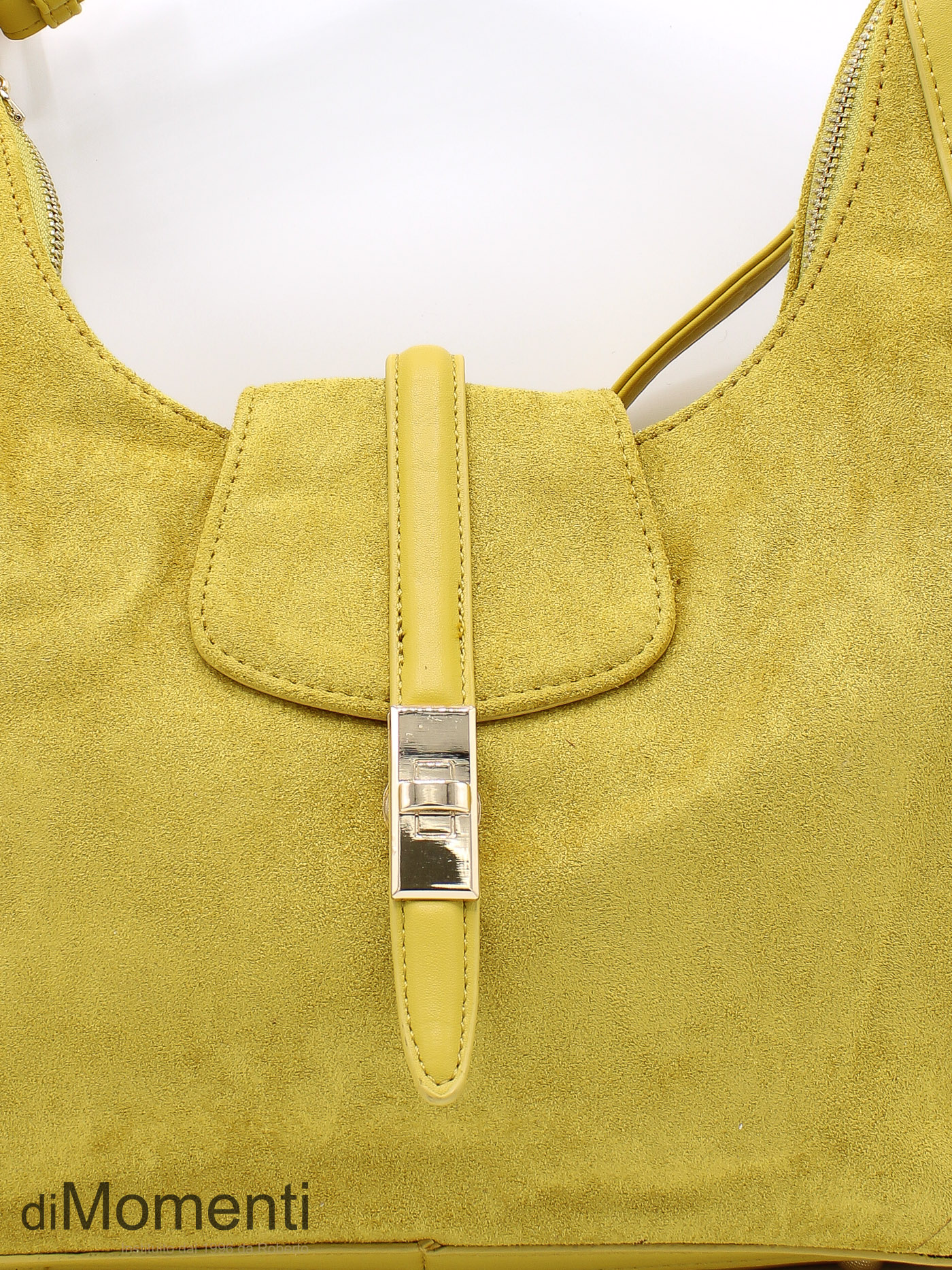 De must-have tas van dit najaar! Deze boemerang-tas in luxe suède-look is perfect voor elke gelegenheid. Met stijlvolle goudkleurige details en een handige, losse schouderriem, is deze tas niet alleen trendy, maar ook praktisch. Verkrijgbaar in de nieuwste najaarskleuren.