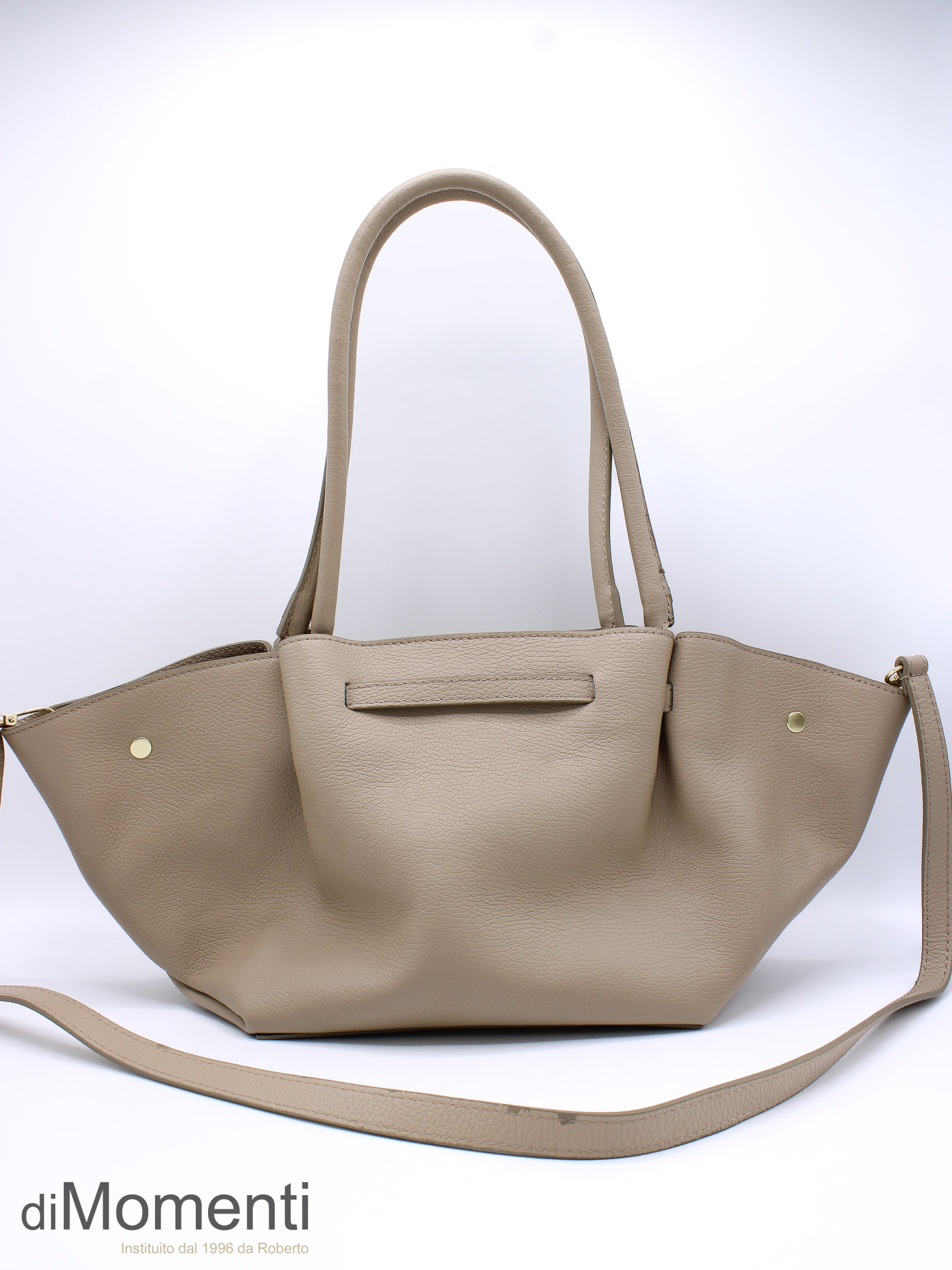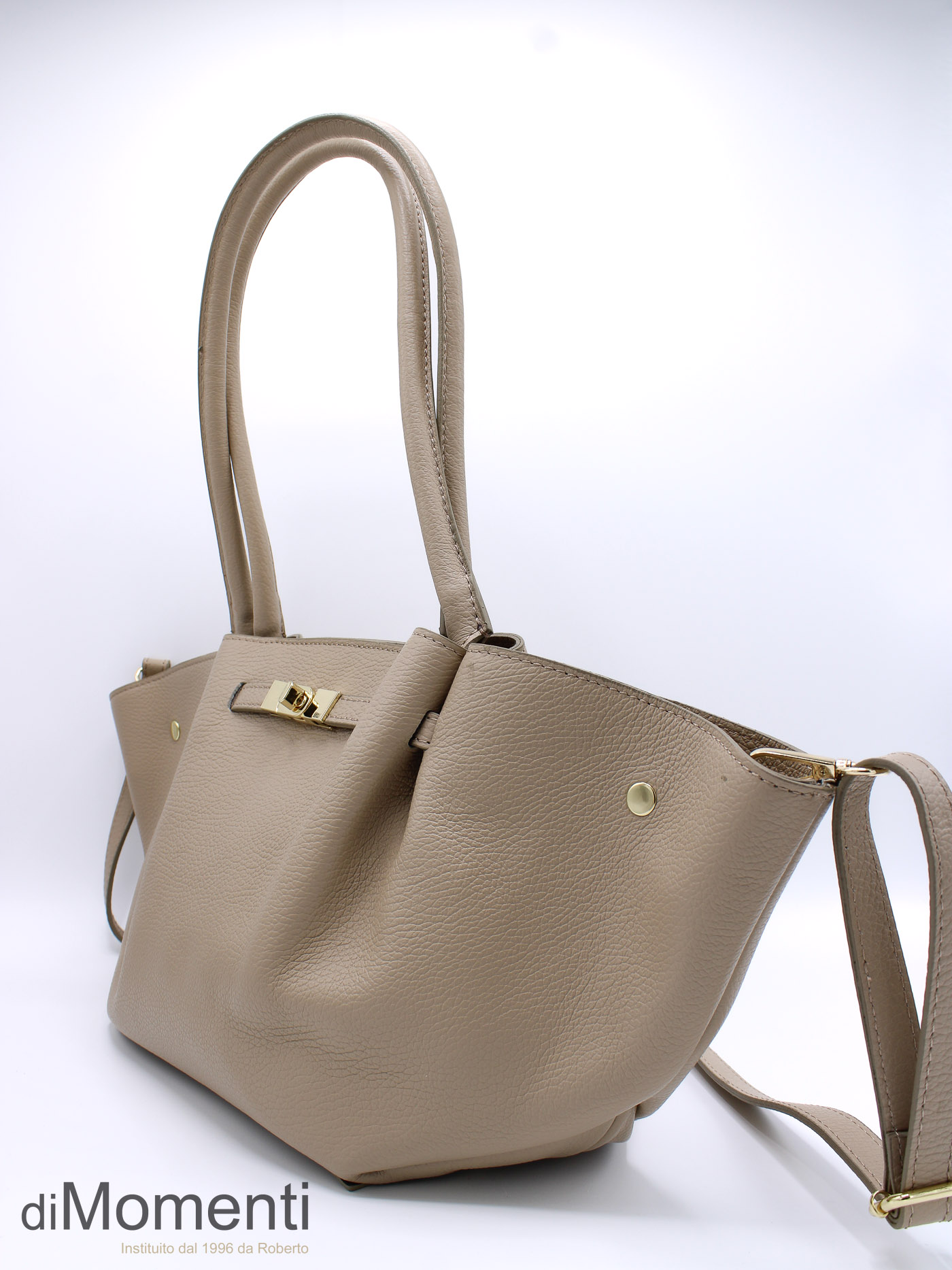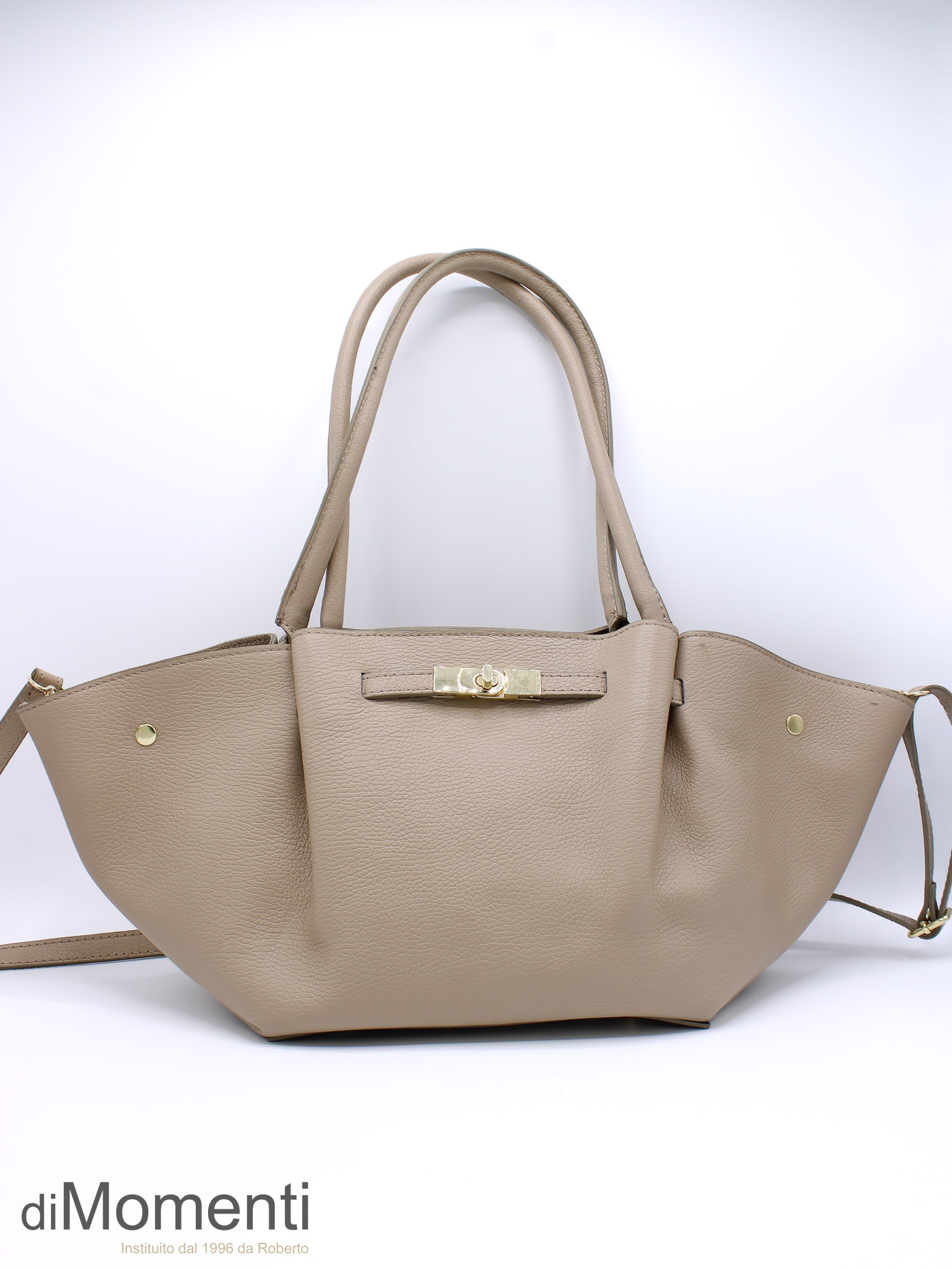 Ontdek deze high-end leren shopper in een trendy “boot” model. De tas is hoogwaardig afgewerkt met goudkleurige details en een iconische sier-draaisluiting. Dankzij de lange hengsels en de extra schouderriem draag je deze volledig gevoerde must-have altijd comfortabel. Verkrijgbaar in de meest fashionable kleuren van dit seizoen!
