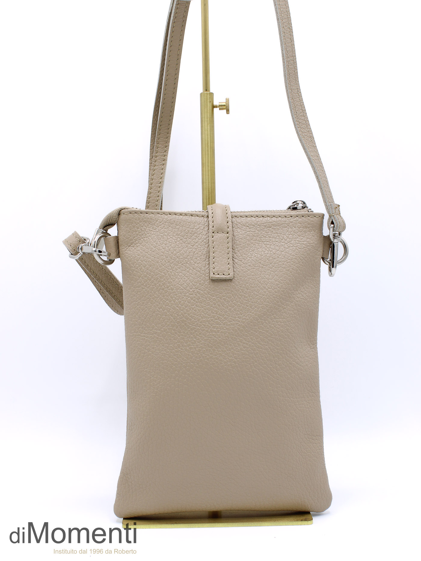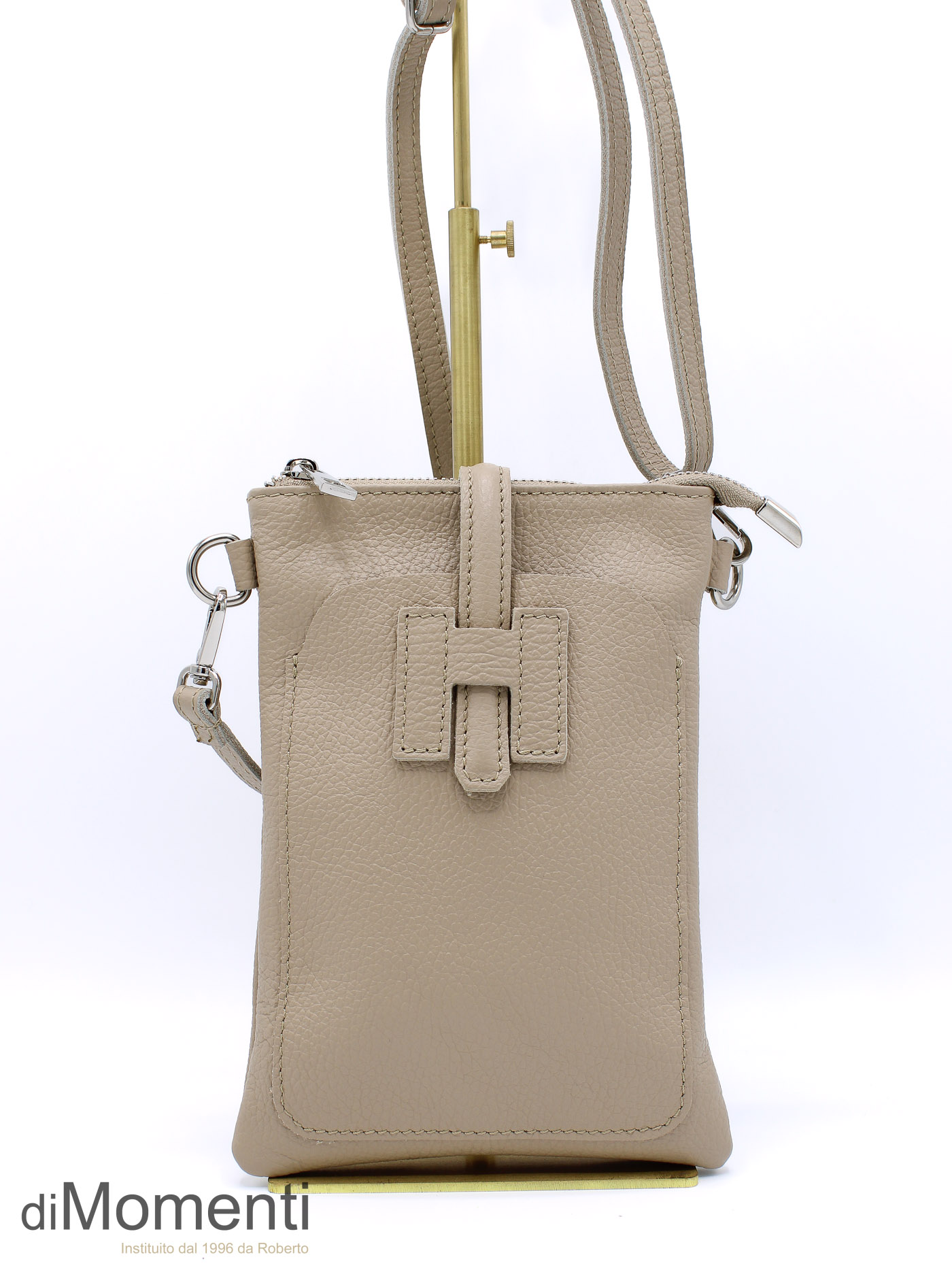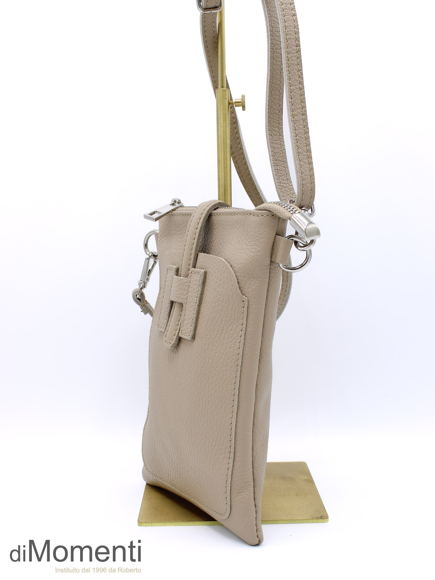 Stijlvol en praktisch! Dit ruime telefoontasje van hoogwaardig echt leer is de ideale metgezel voor je telefoon, sleutels en portemonnee. Veilig afsluitbaar met rits, geheel gevoerd en afgewerkt met zilverkleurige details. Dankzij de verstelbare schouderriem en tijdloze basiskleuren is dit tasje dé perfecte match voor elke outfit.