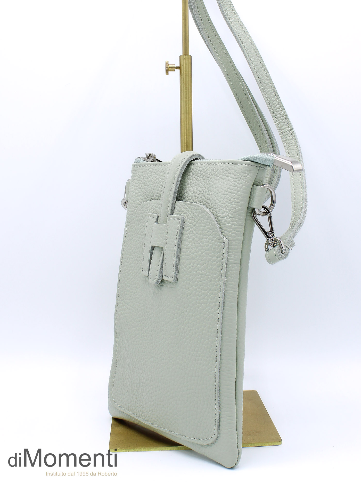 Stijlvol en praktisch! Dit ruime telefoontasje van hoogwaardig echt leer is de ideale metgezel voor je telefoon, sleutels en portemonnee. Veilig afsluitbaar met rits, geheel gevoerd en afgewerkt met zilverkleurige details. Dankzij de verstelbare schouderriem en tijdloze basiskleuren is dit tasje dé perfecte match voor elke outfit.